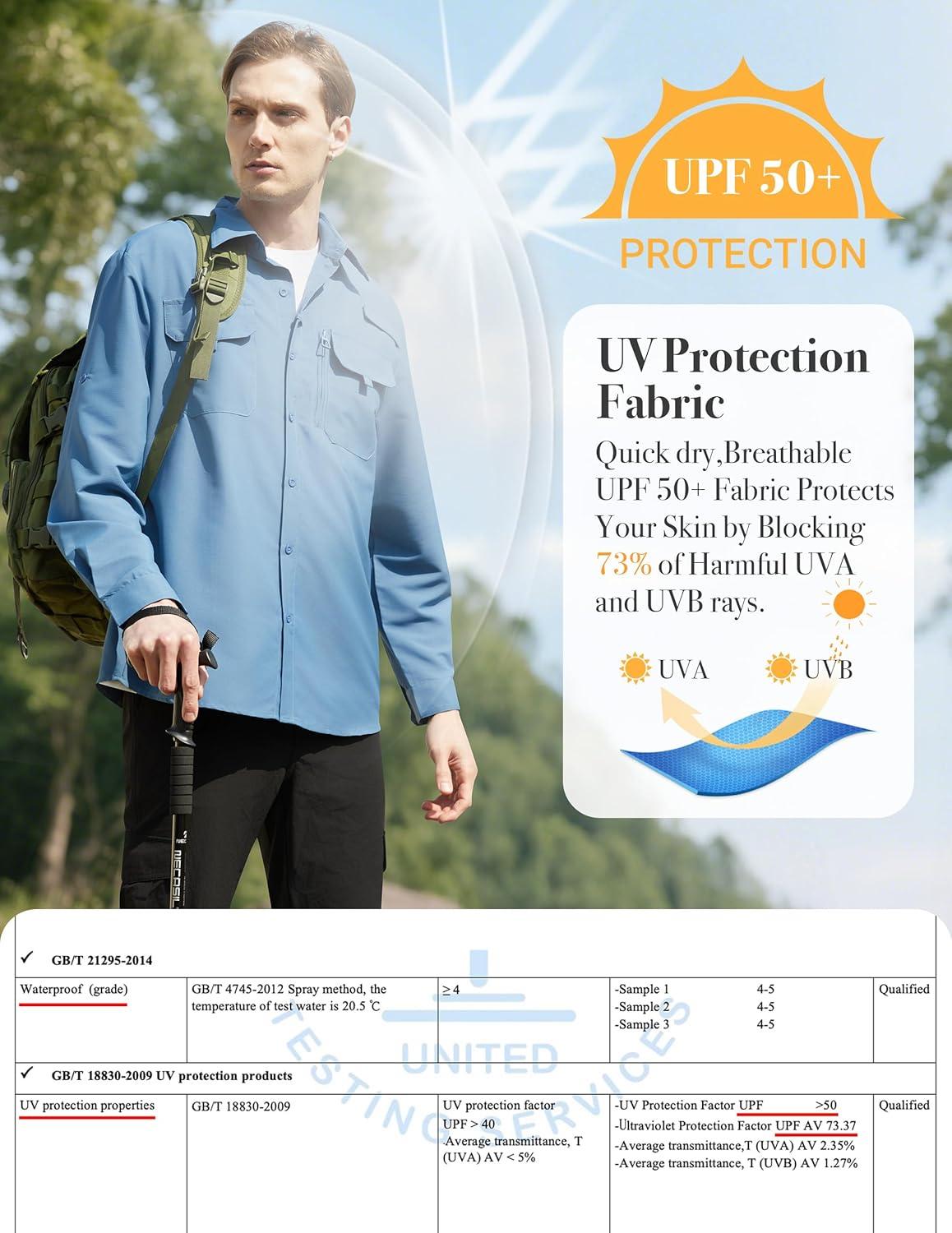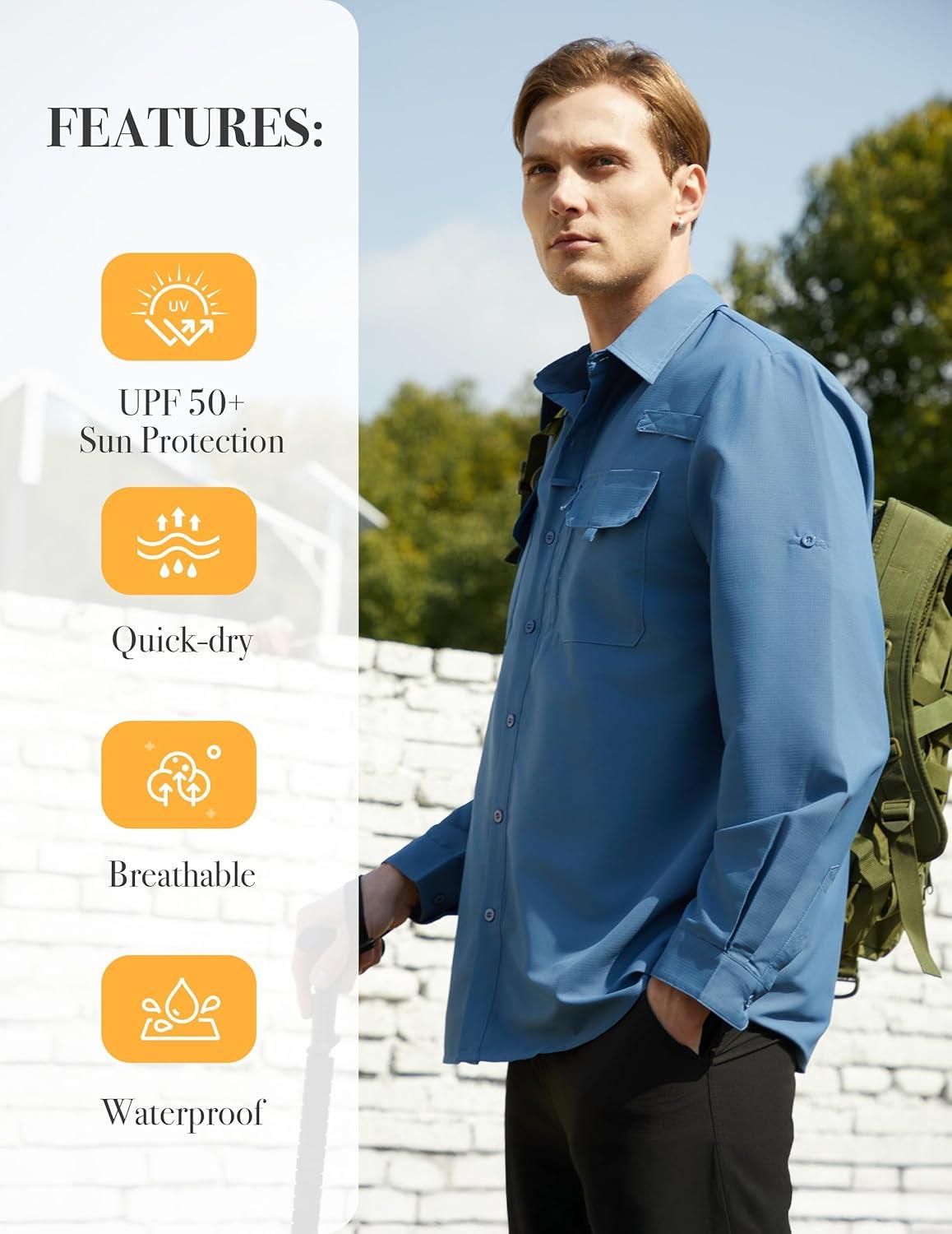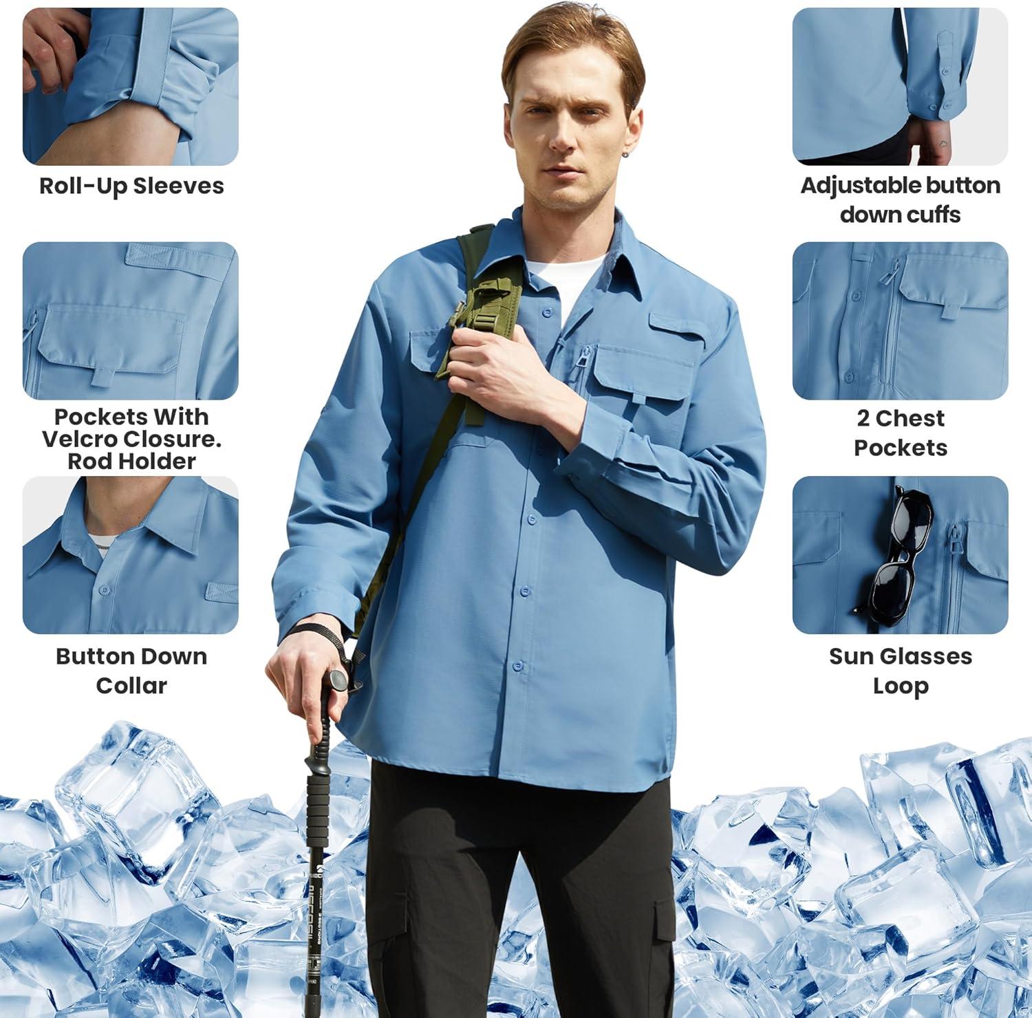 WULFUL Men's Sun Protection Fishing Shirts UPF 50+ UV Lightweight Quick Dry Cooling Button Down Shirts for Work Hiking Safari(Blue)