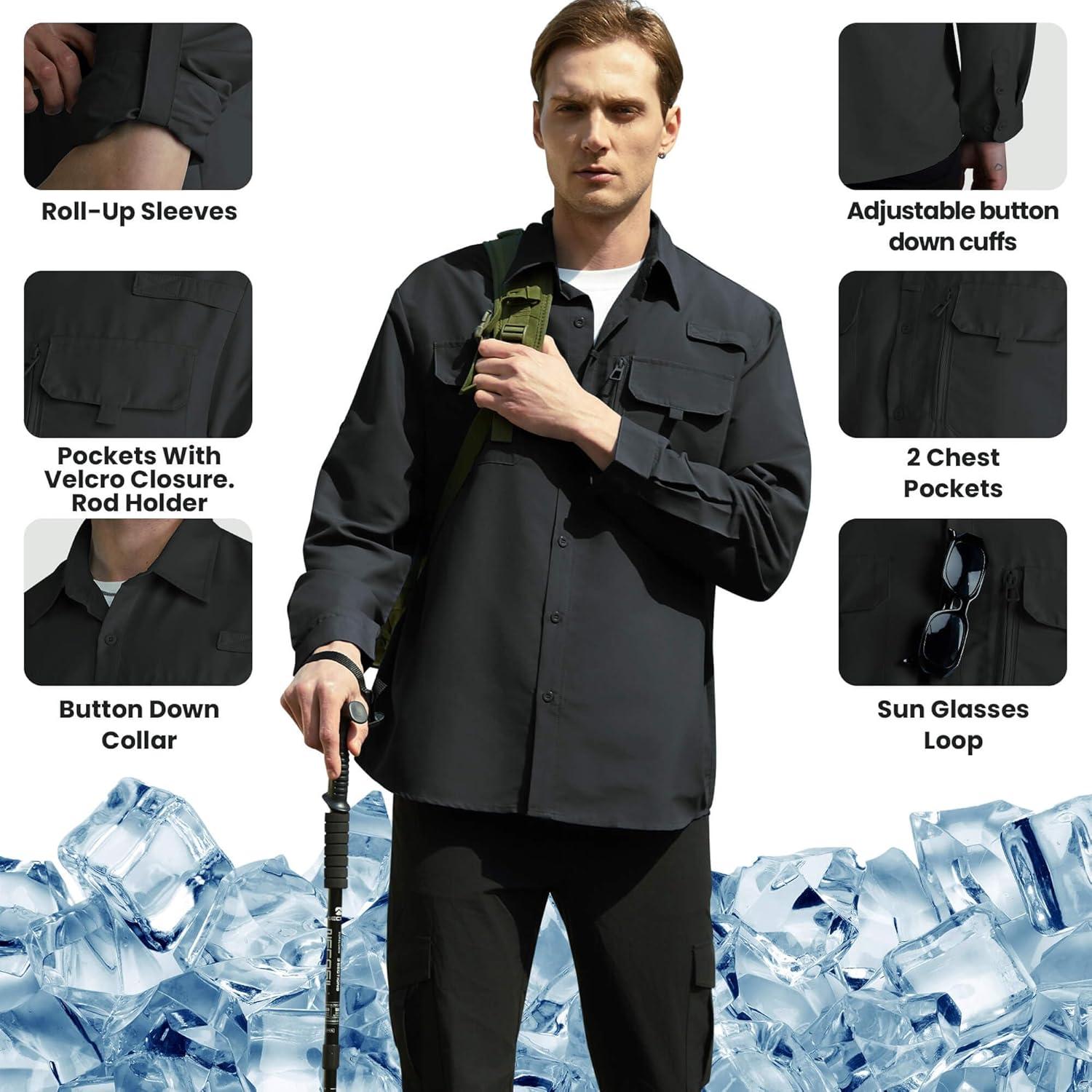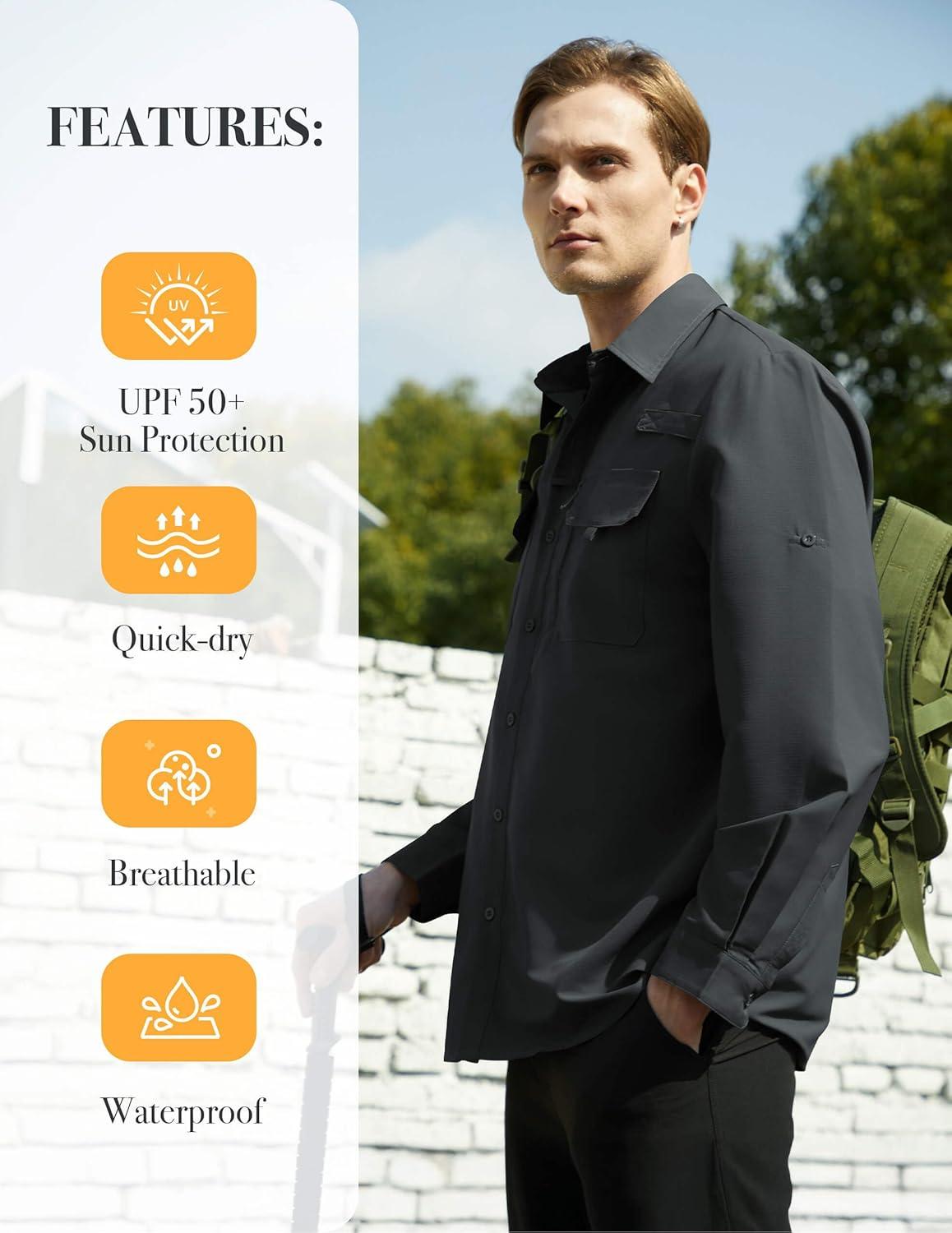WULFUL Men's Sun Protection Fishing Shirts UPF 50+ UV Lightweight Quick Dry Cooling Button Down Shirts for Work Hiking Safari(Shadow Grey)