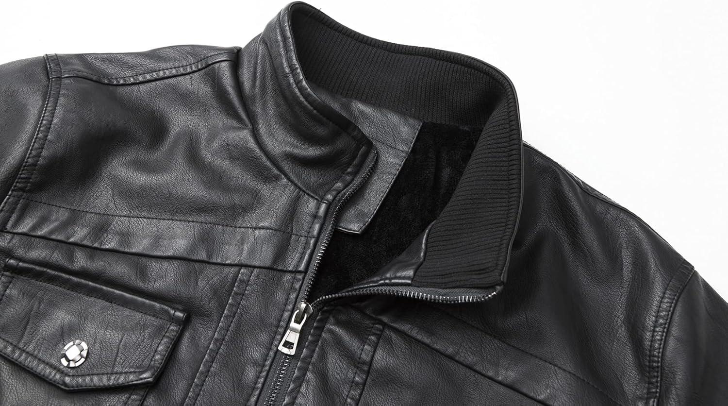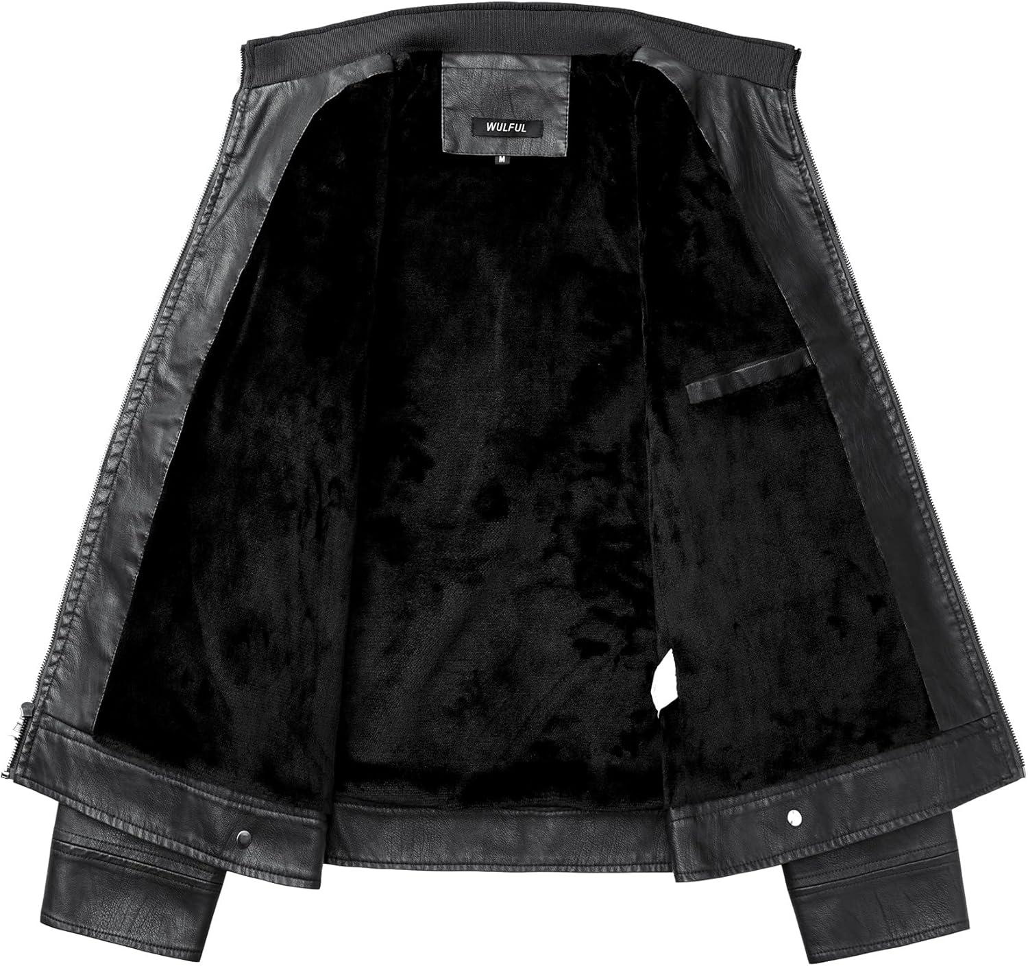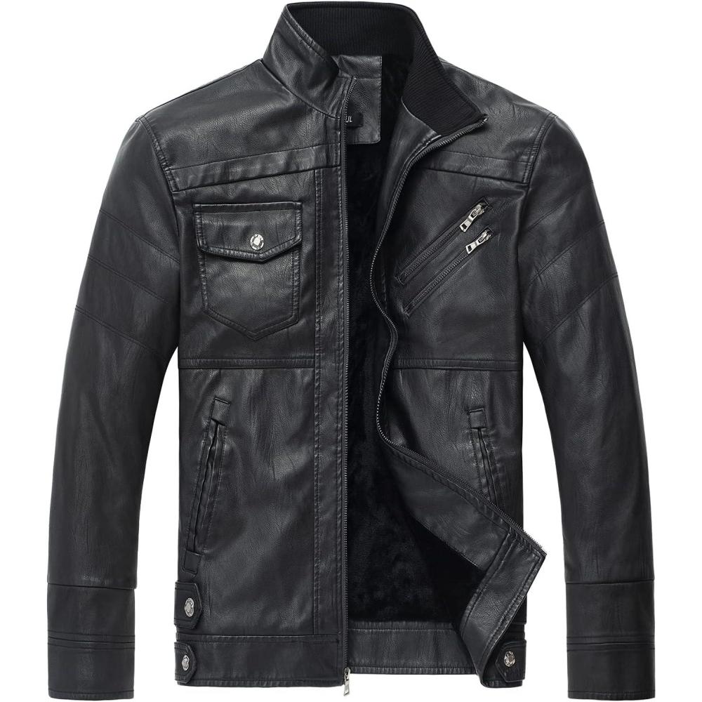 WULFUL Men’s Vintage Stand Collar Leather Jacket Motorcycle PU Jacket and Coat(Black(8833))