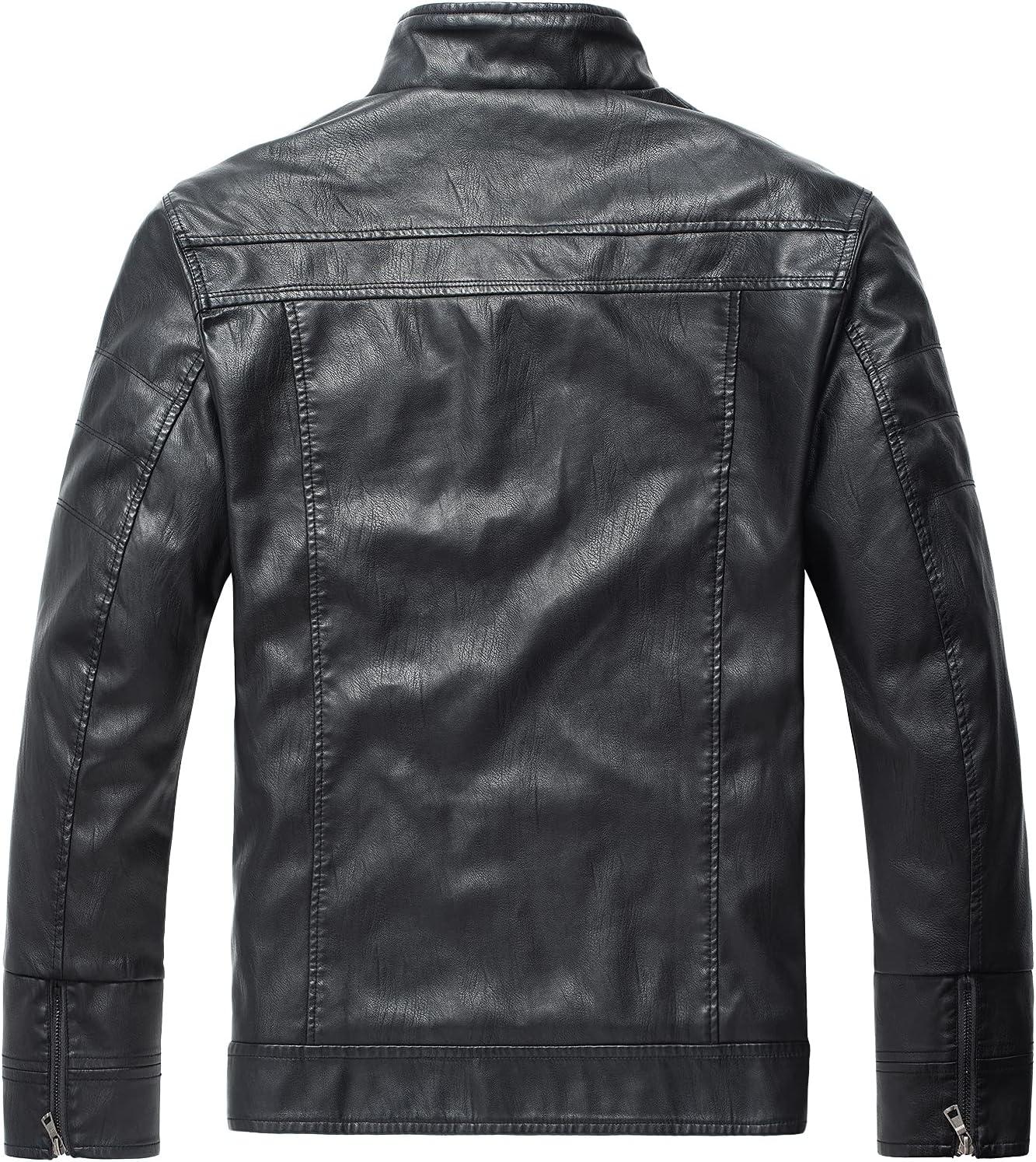 WULFUL Men's Vintage Stand Collar Leather Jacket Motorcycle PU Jacket and Coat(Black(8833))
