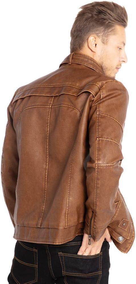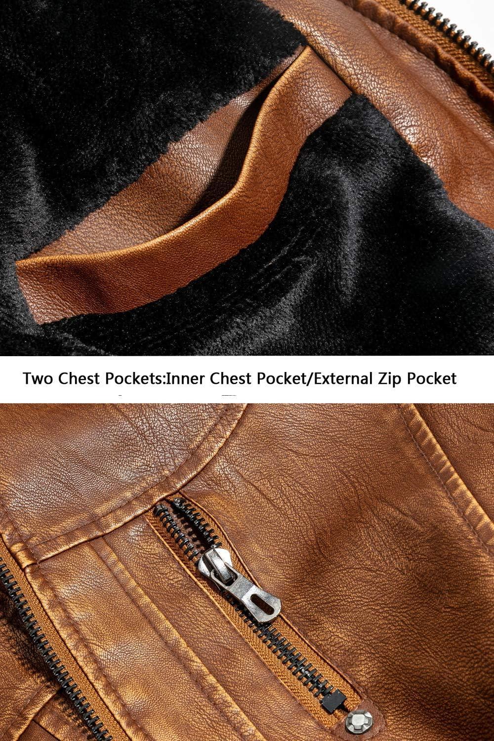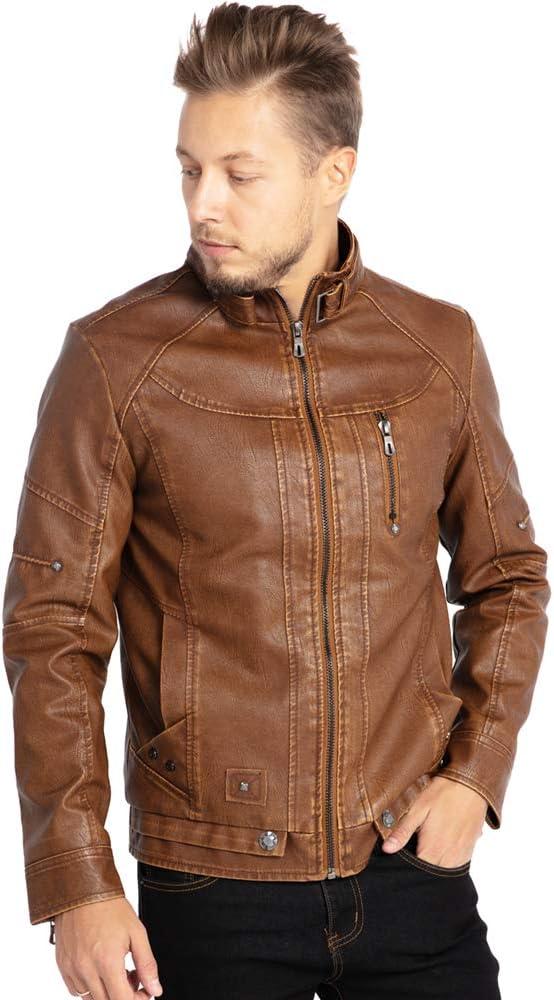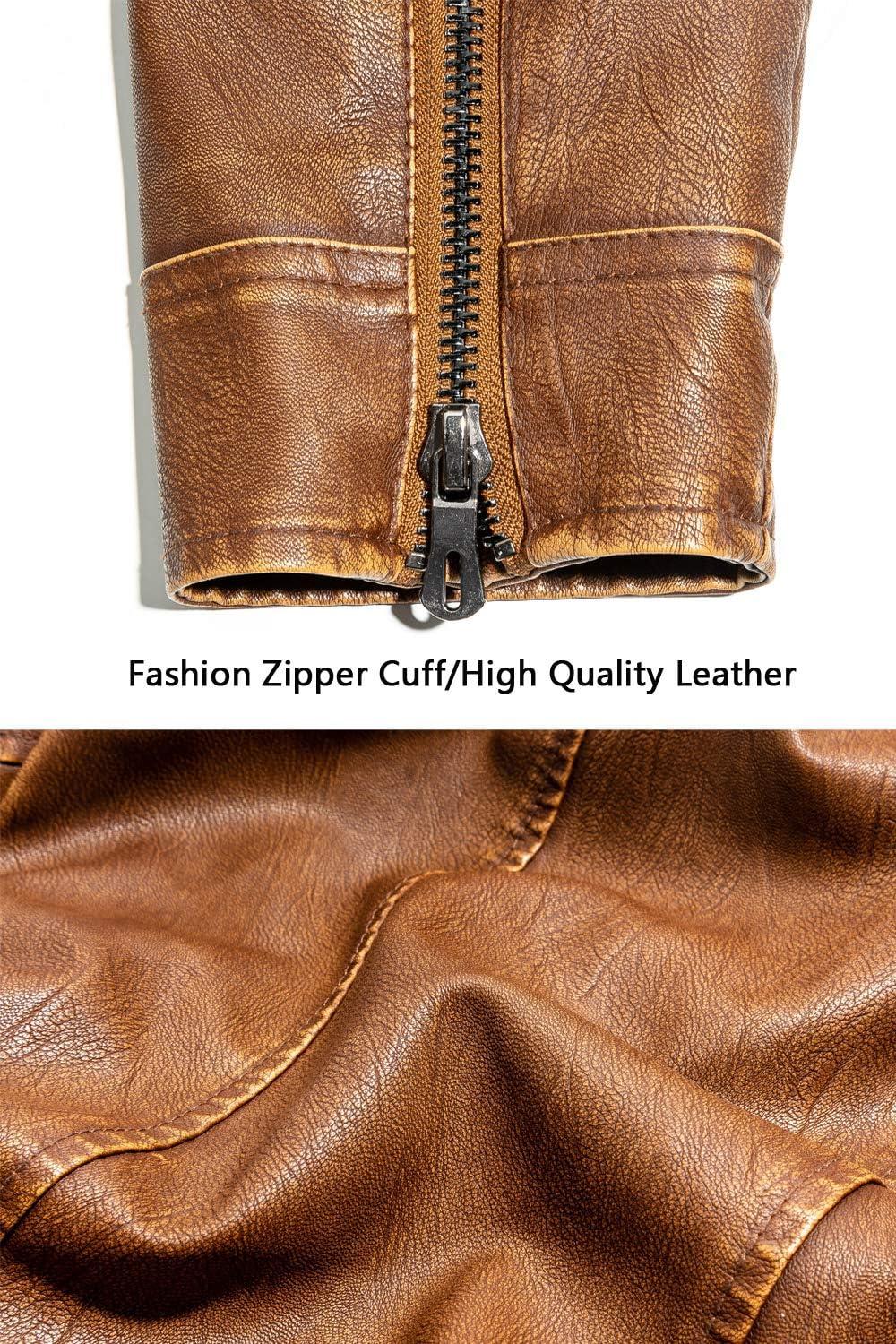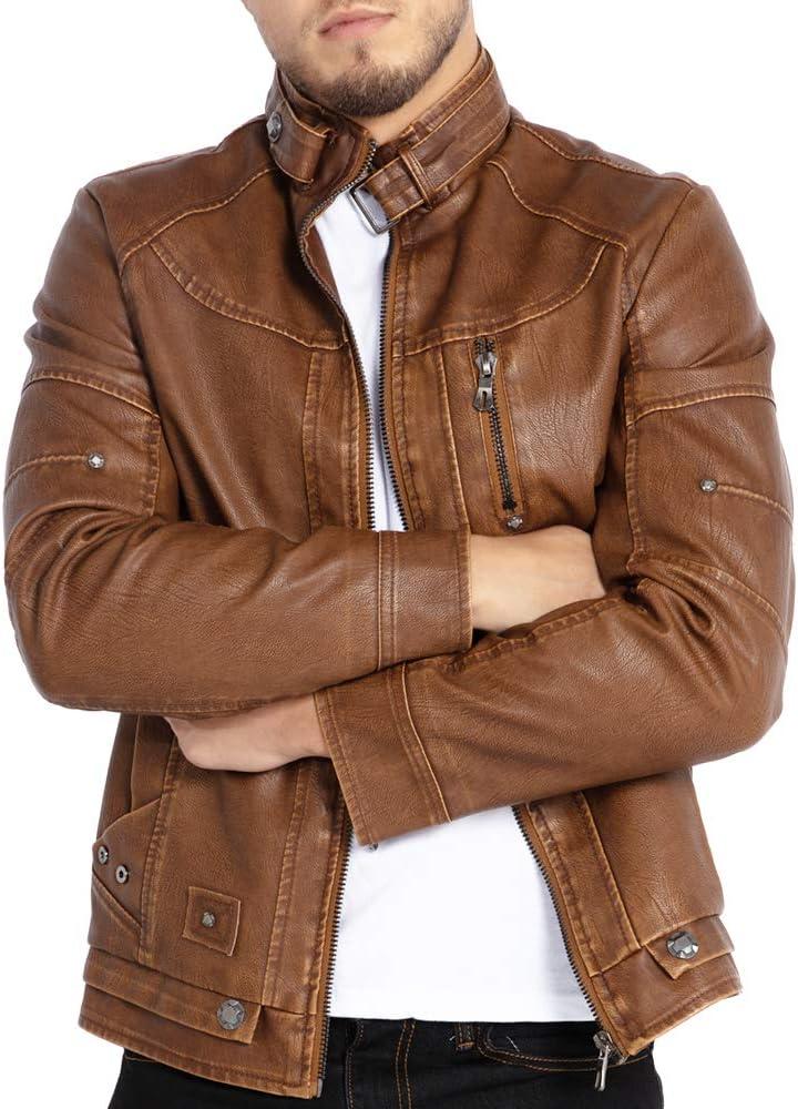 WULFUL Men's Vintage Stand Collar Leather Jacket Motorcycle PU Jacket and Coat(Khaki 2)