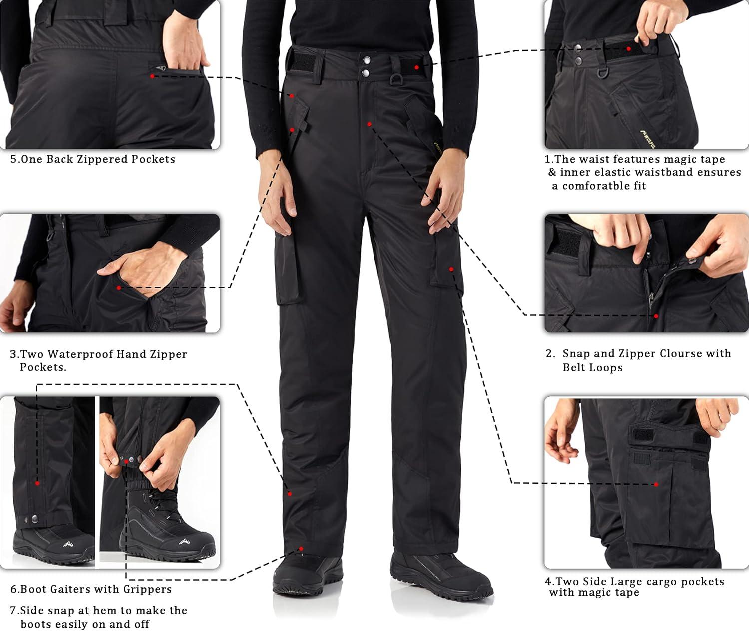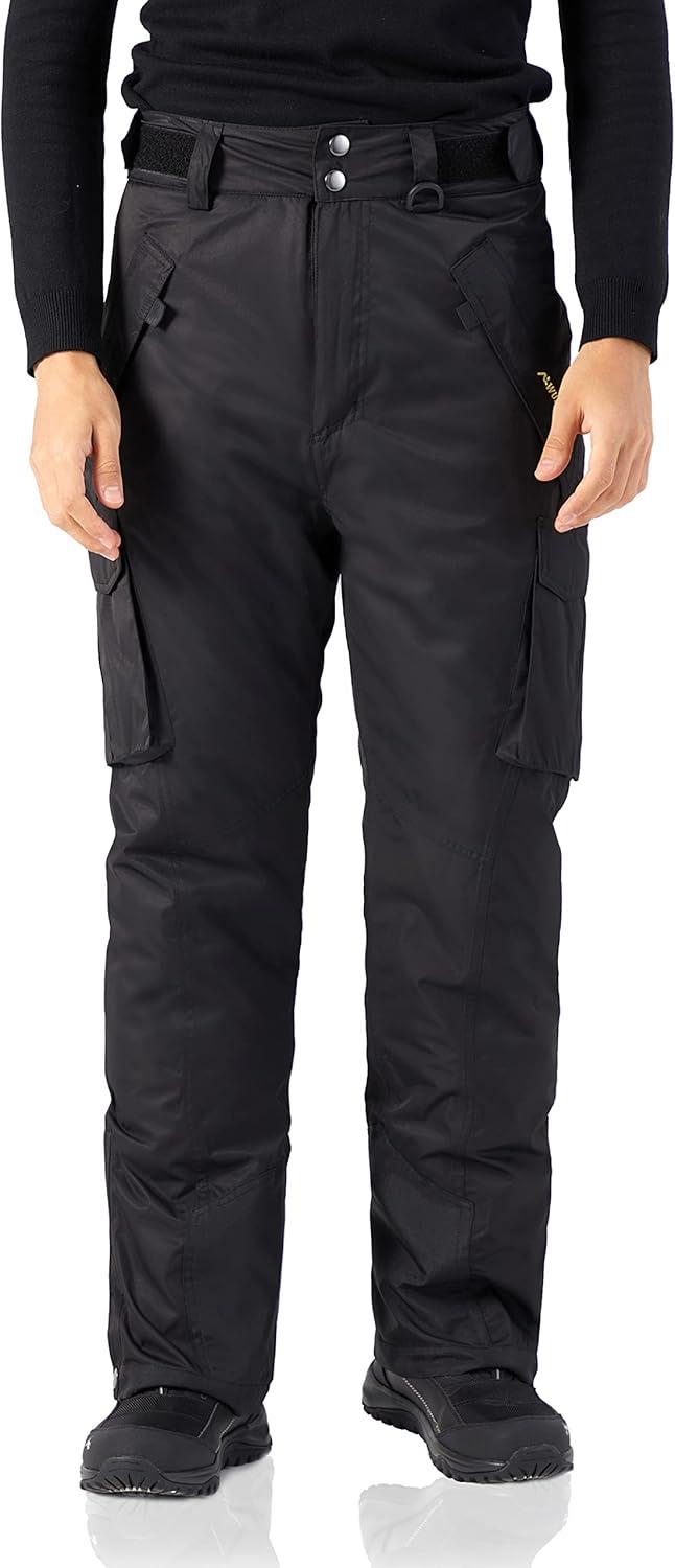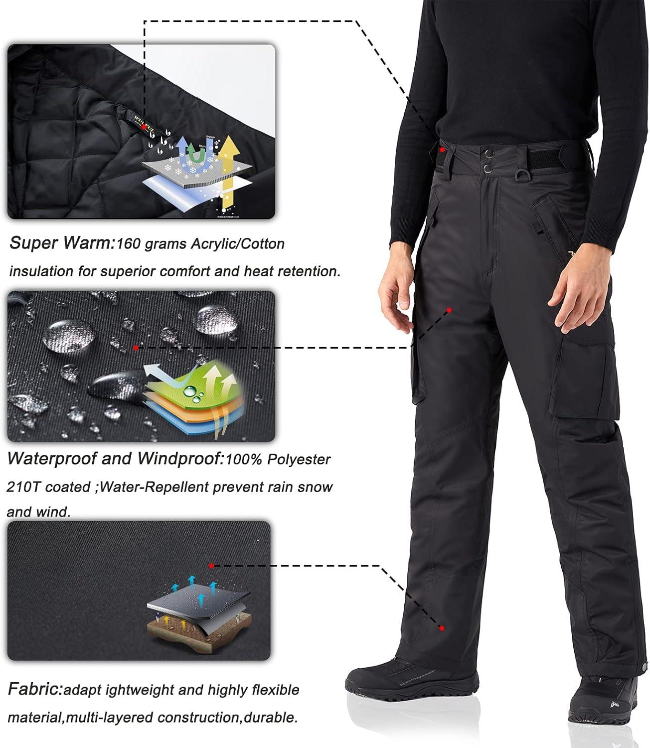 WULFUL Men’s Waterproof Insulated Ski Snow Pants Winter Snowboarding Cargo Pants with Multi-Pockets(Black)