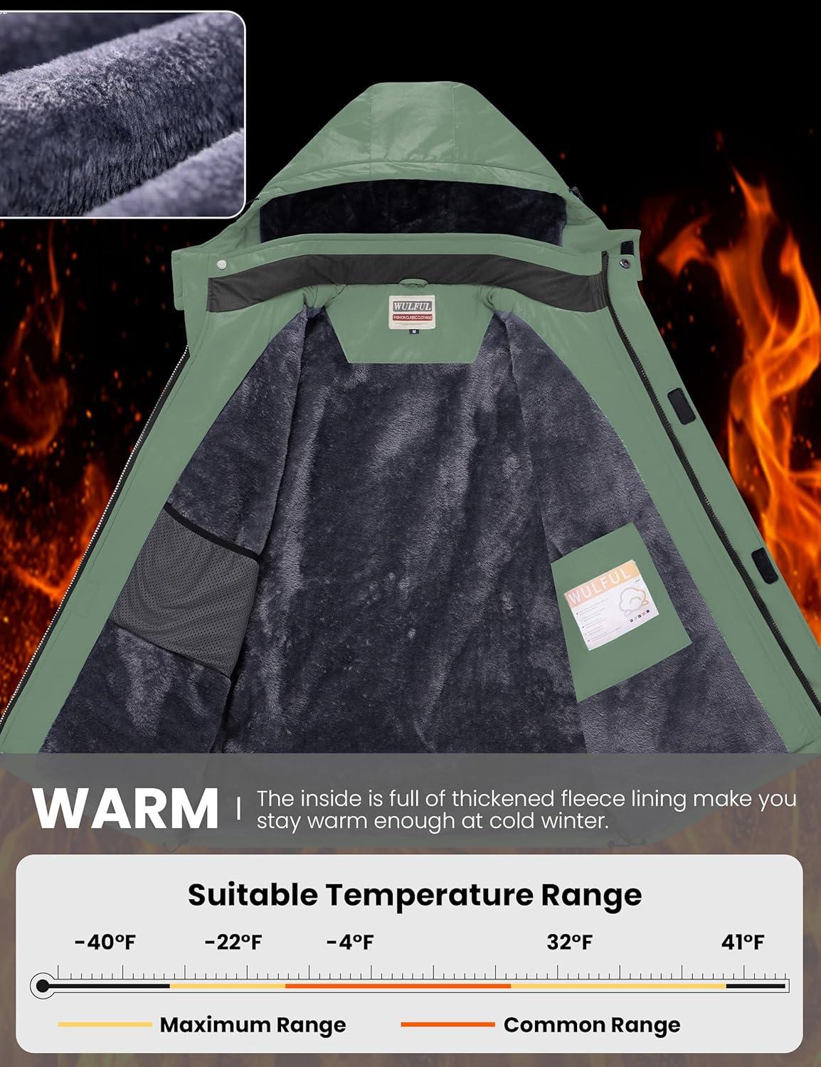 imageWULFUL Mens Waterproof Ski Jacket Warm Winter Coats Windproof Winter Jackets for Men Fleece Lined Windbreaker with HoodArmy Green