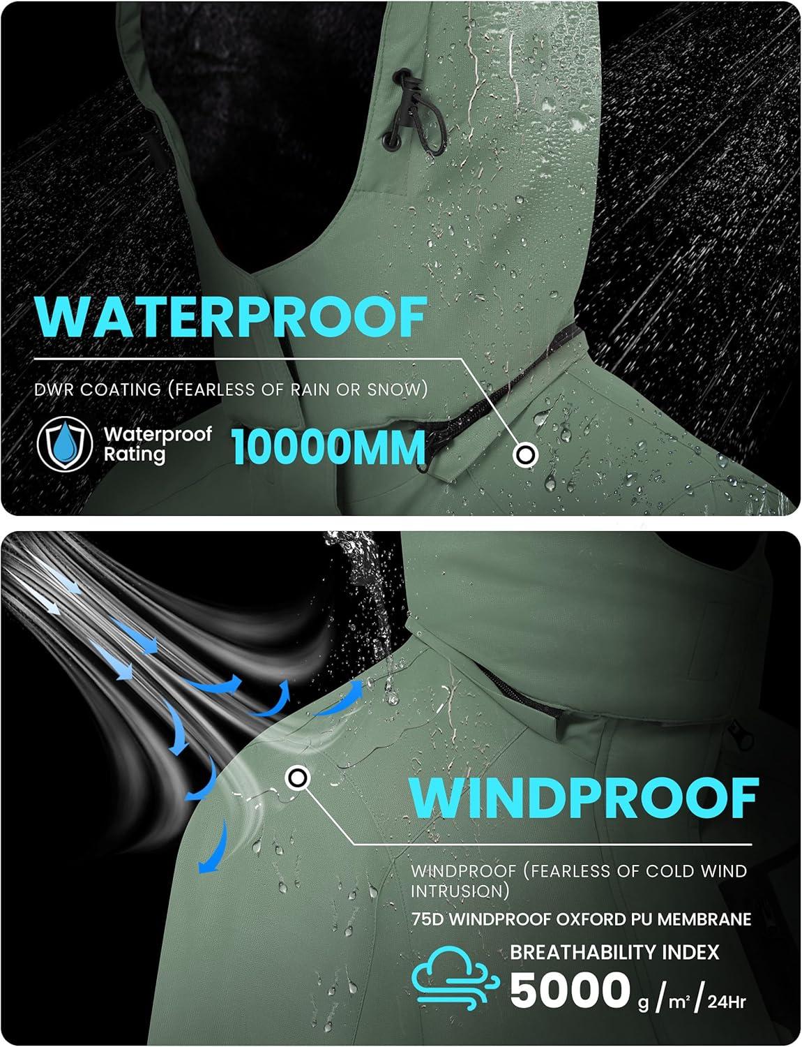 WULFUL Men’s Waterproof Ski Jacket Warm Winter Coats Windproof Winter Jackets for Men Fleece Lined Windbreaker with Hood(Army Green)