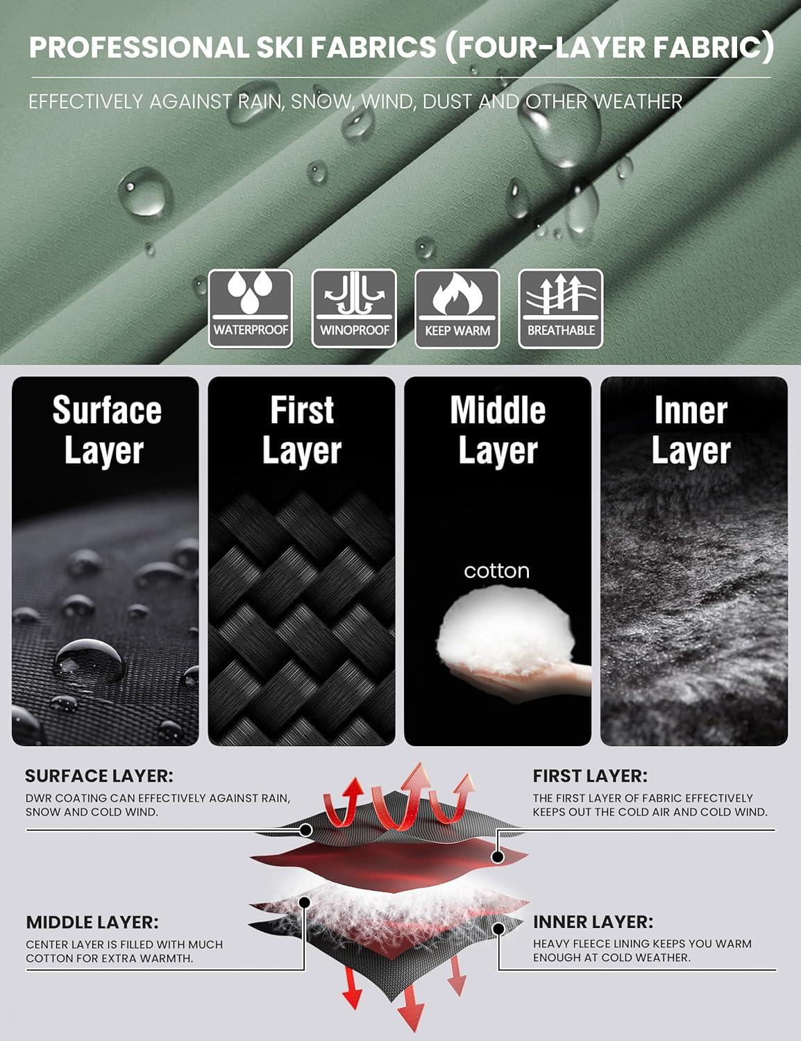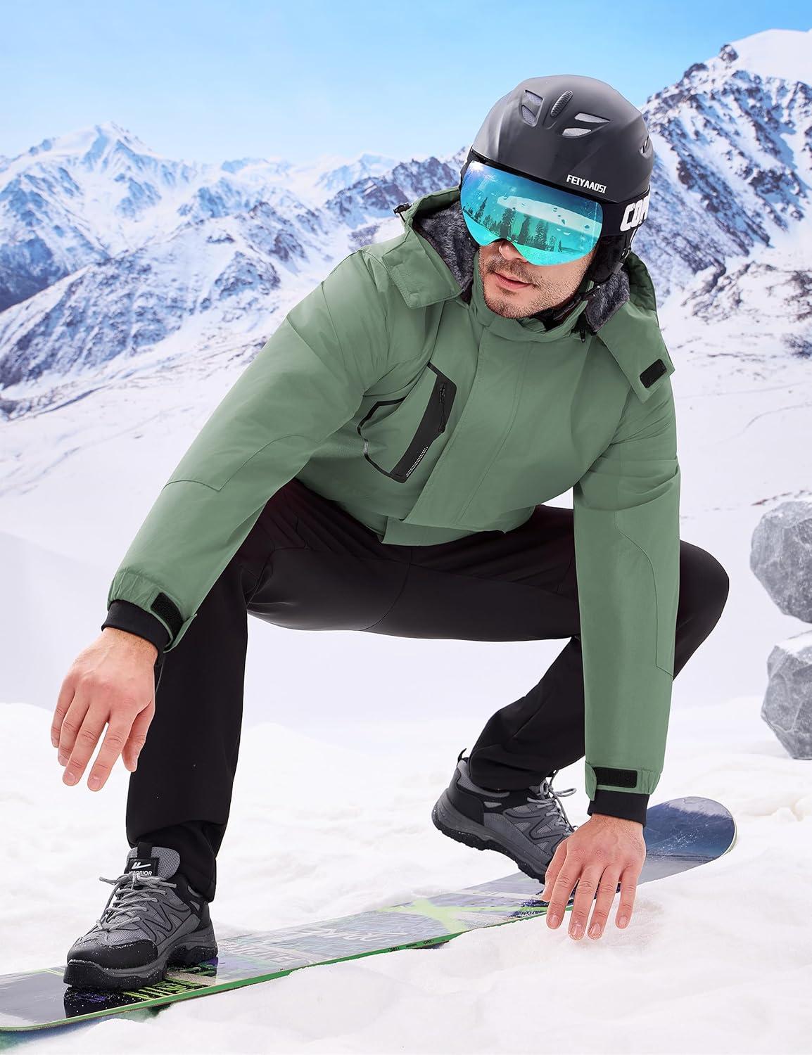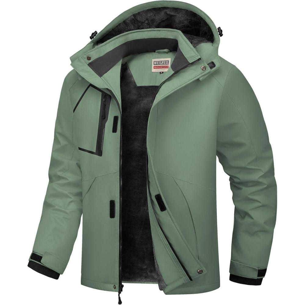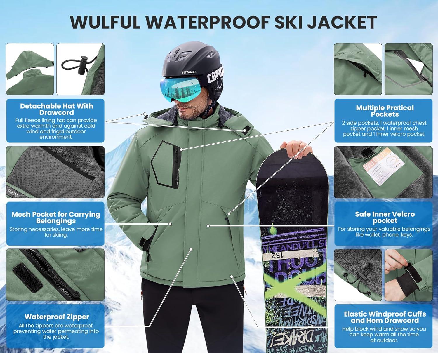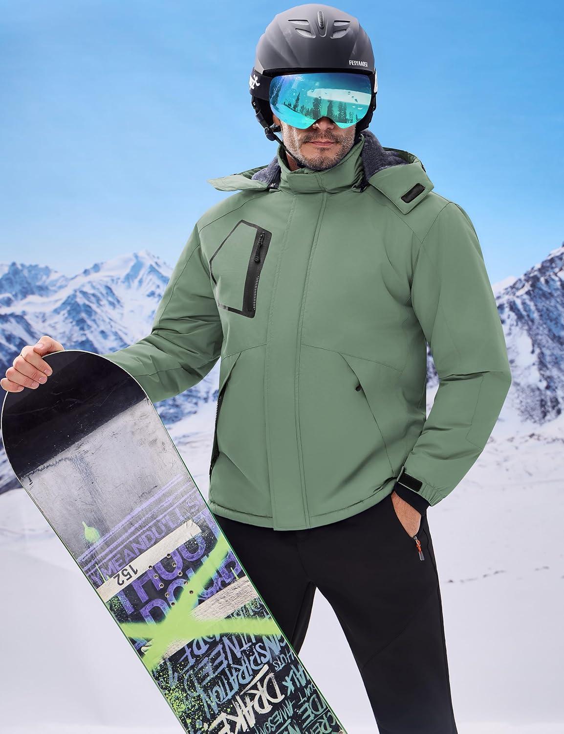 WULFUL Men's Waterproof Ski Jacket Warm Winter Coats Windproof Winter Jackets for Men Fleece Lined Windbreaker with Hood(Army Green)
