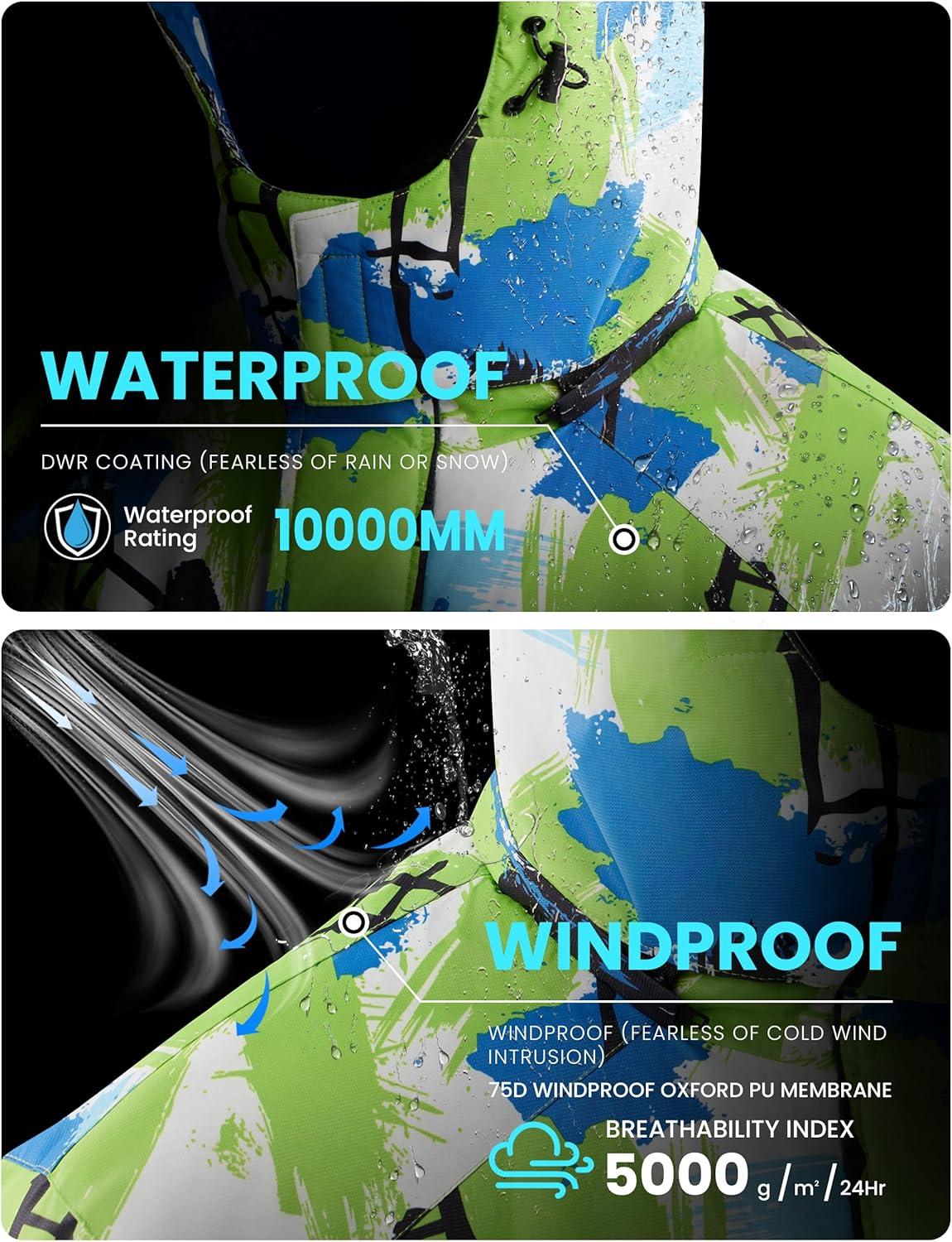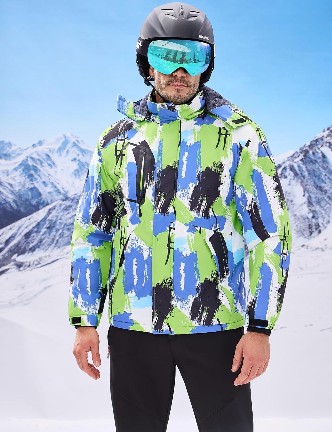 WULFUL Men’s Waterproof Ski Jacket Warm Winter Coats Windproof Winter Jackets for Men Fleece Lined Windbreaker with Hood(Digital Printing-02)