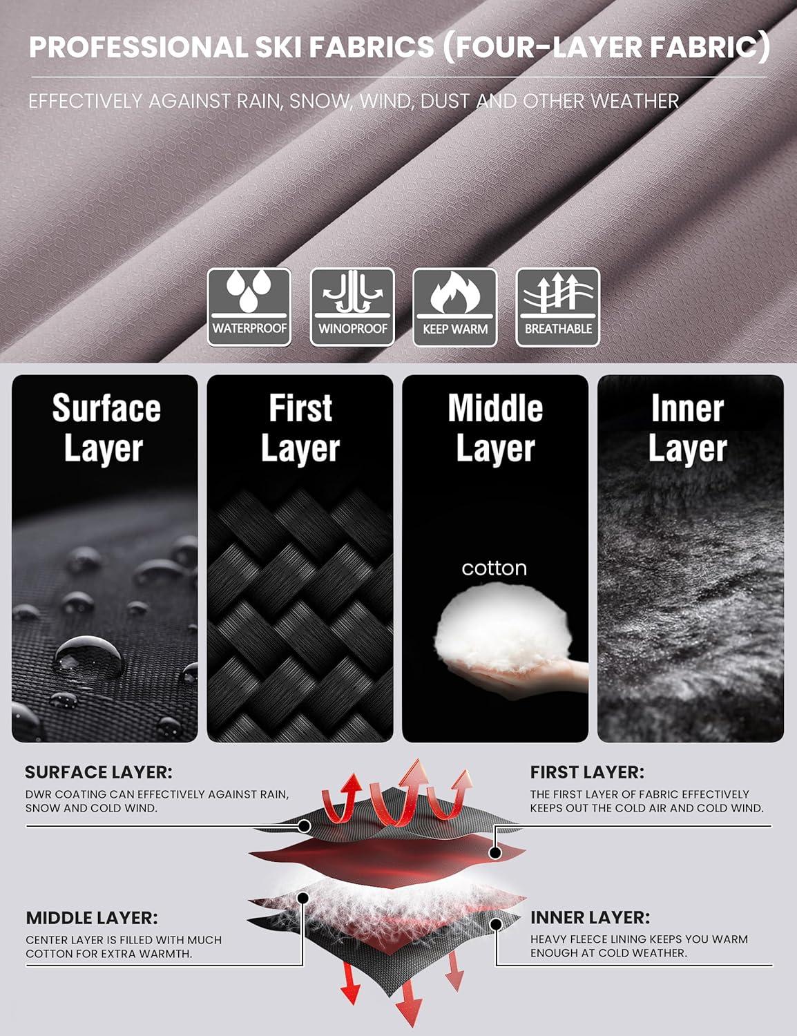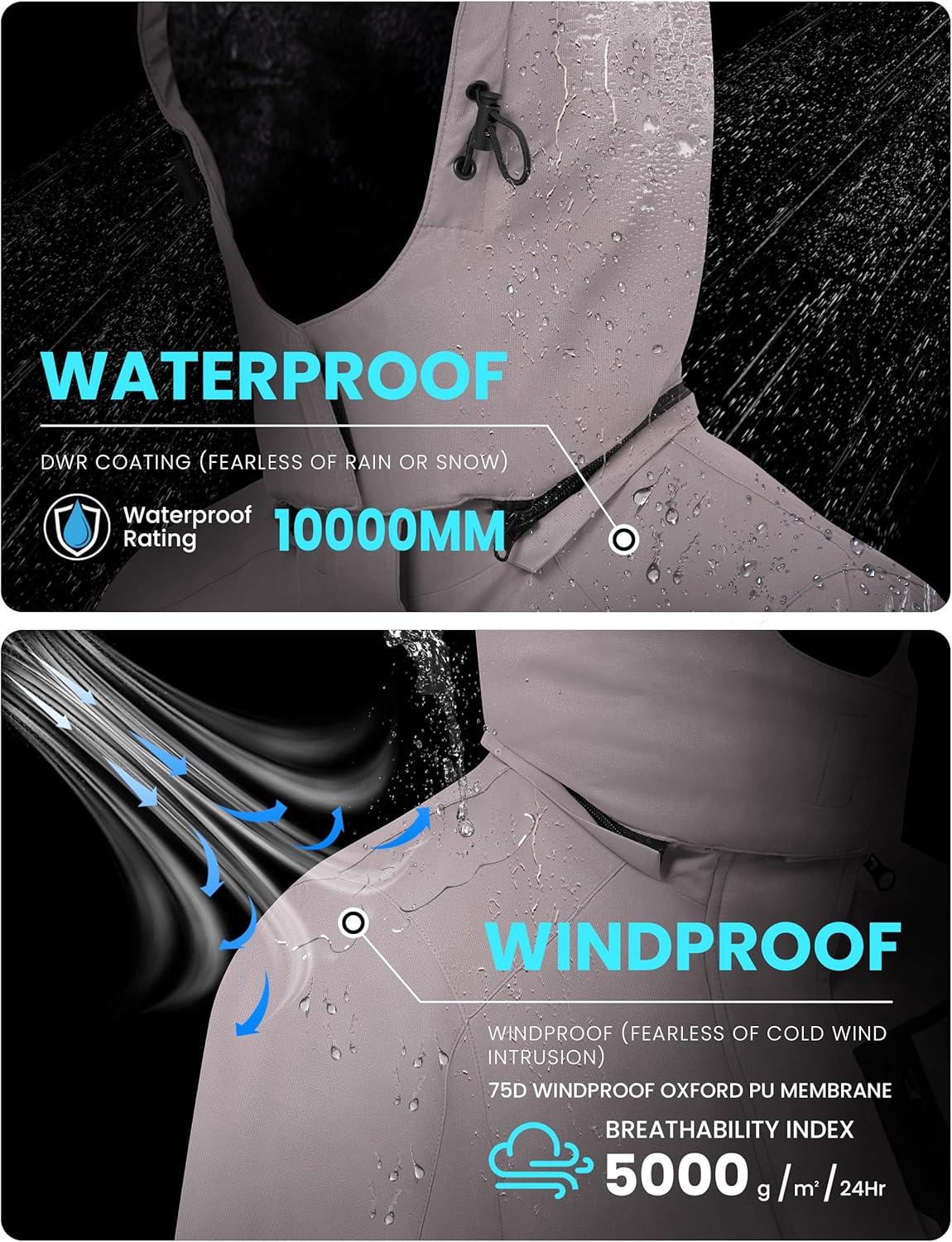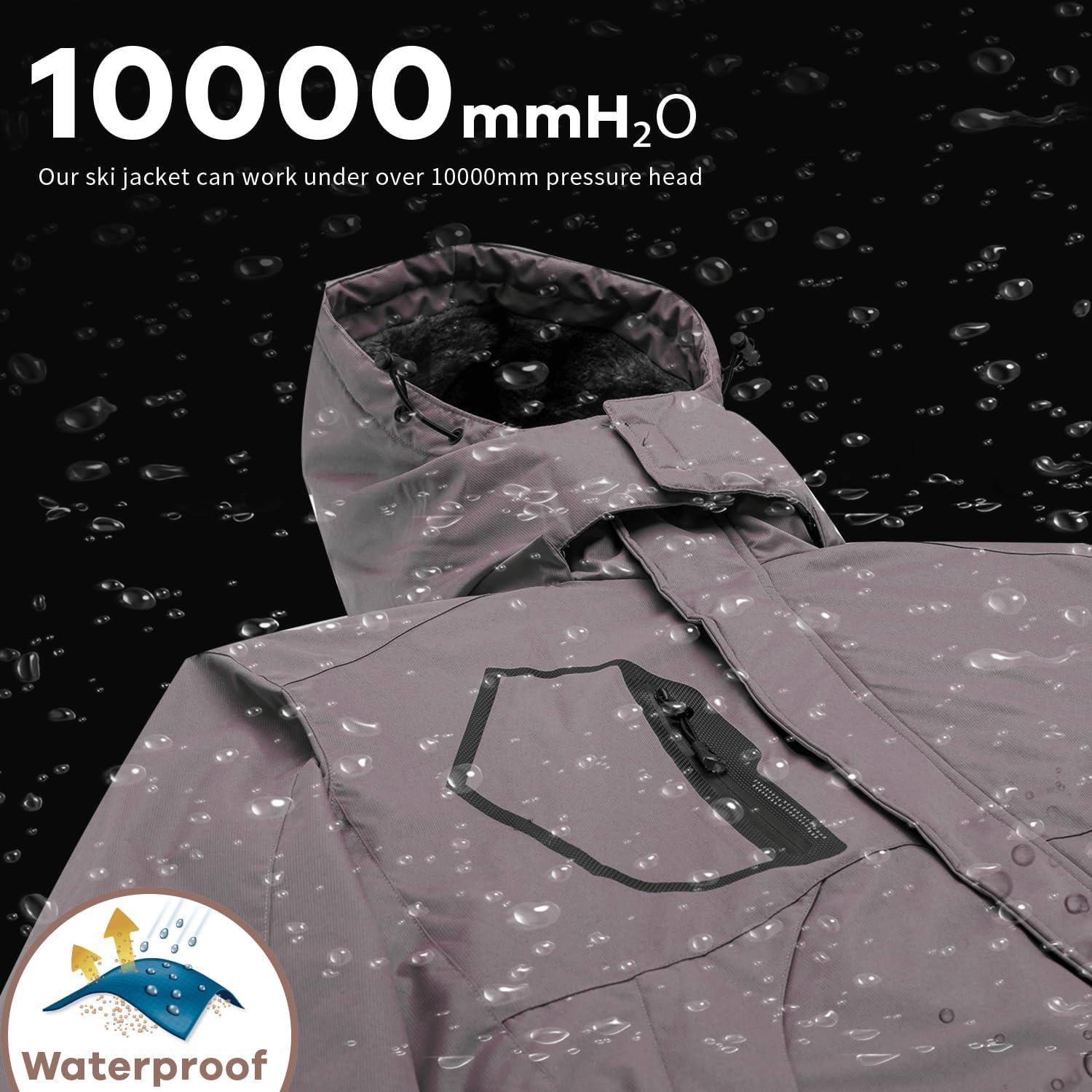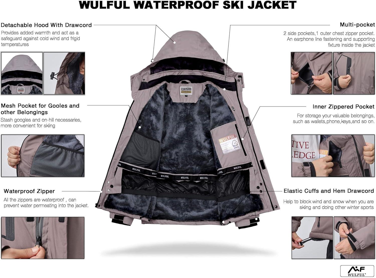 WULFUL Men’s Waterproof Ski Jacket Warm Winter Coats Windproof Winter Jackets for Men Fleece Lined Windbreaker with Hood(Light Brown)