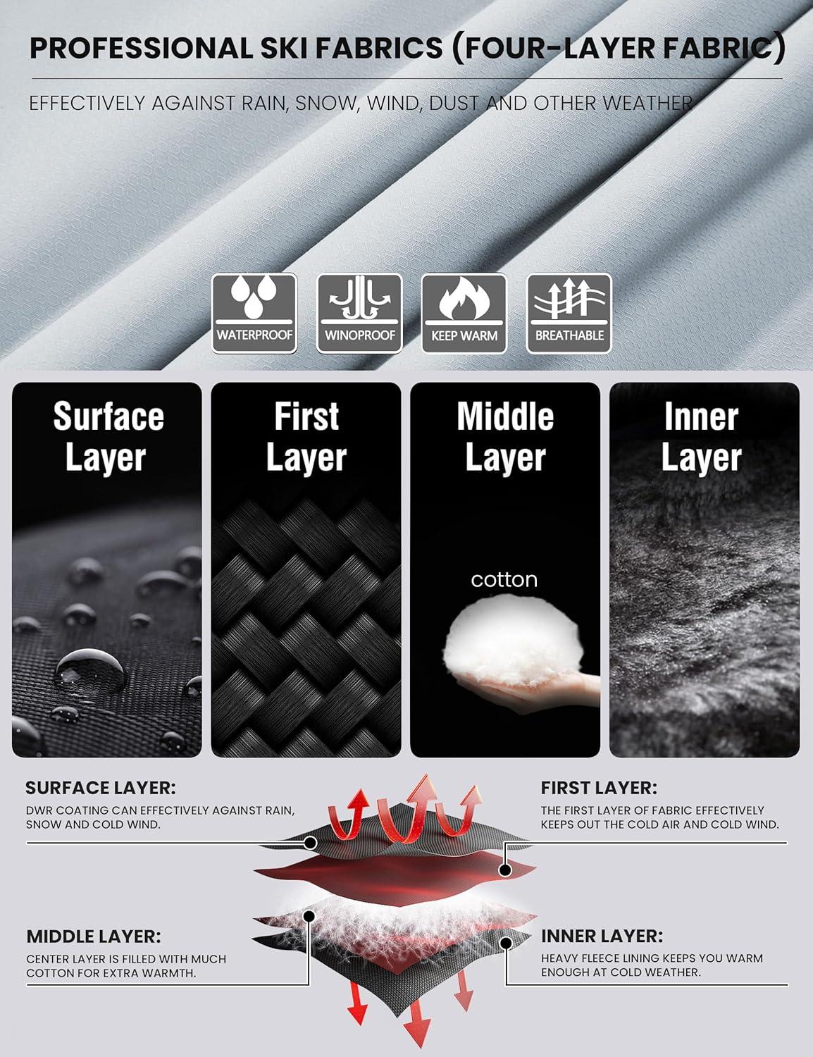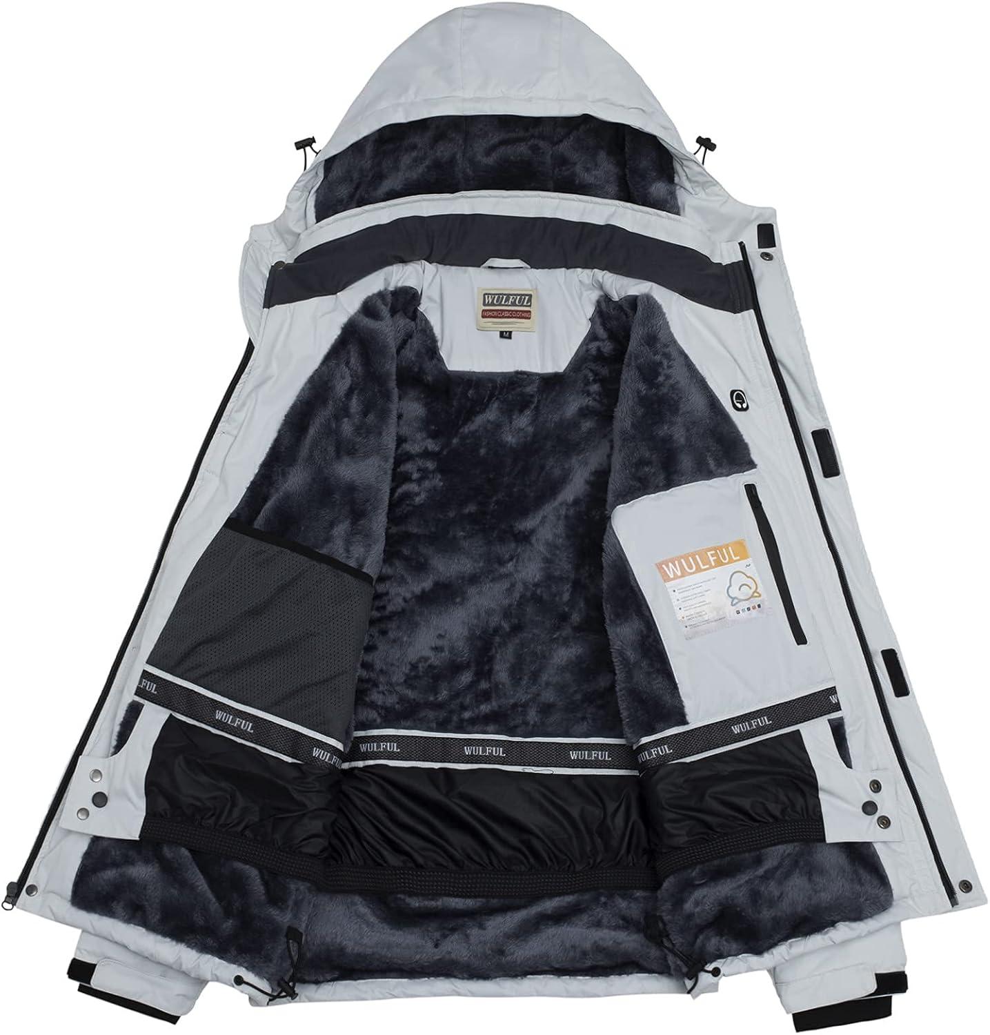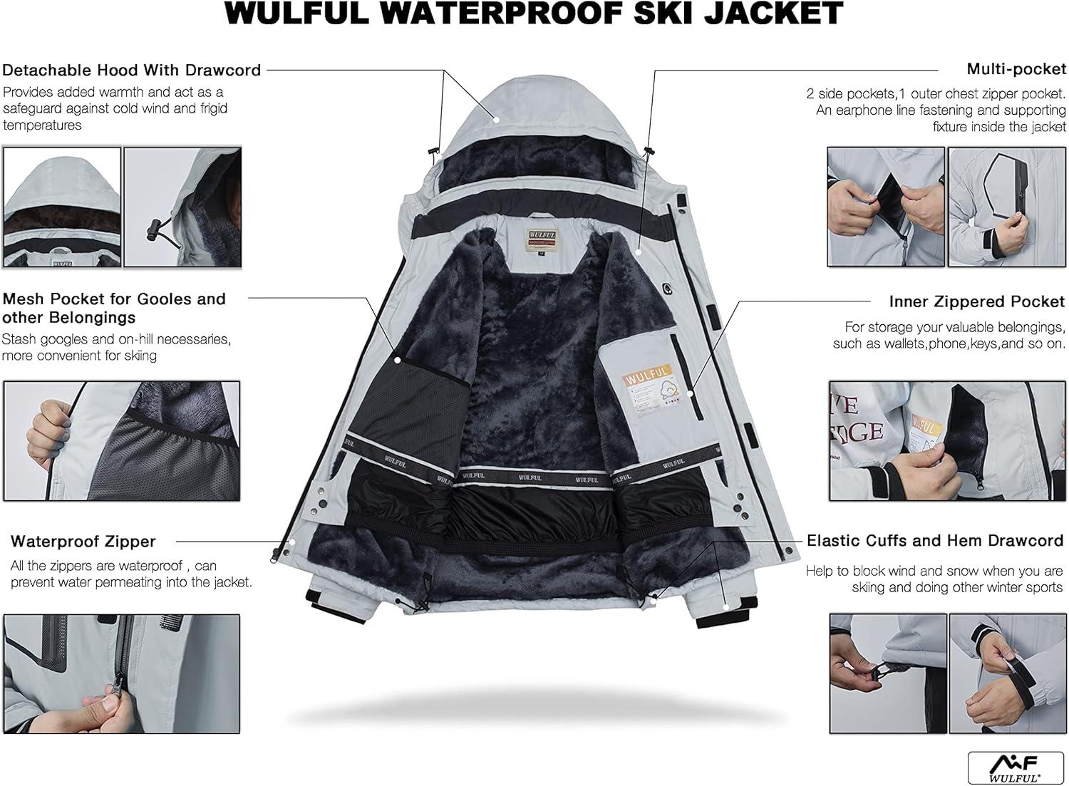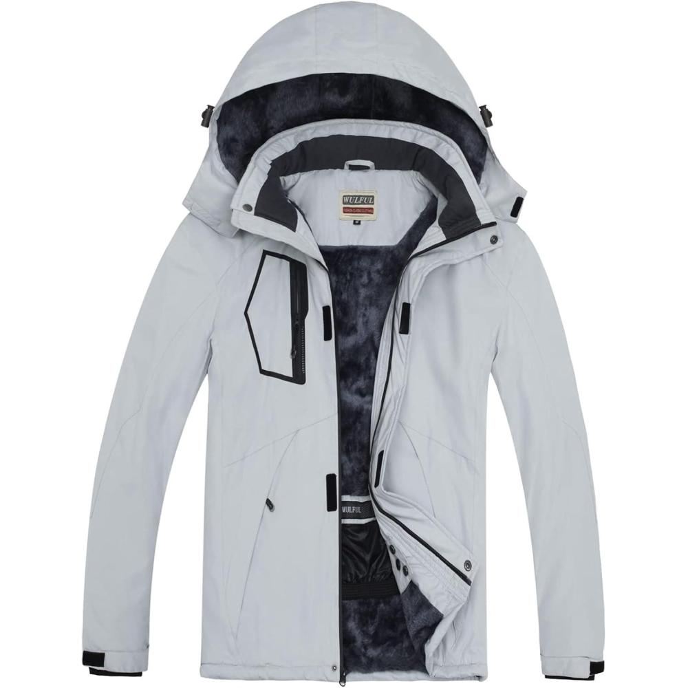 WULFUL Men’s Waterproof Ski Jacket Warm Winter Coats Windproof Winter Jackets for Men Fleece Lined Windbreaker with Hood(Light Grey-new)