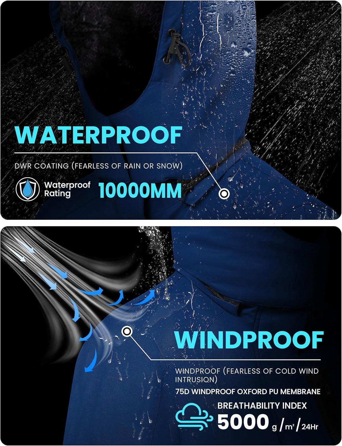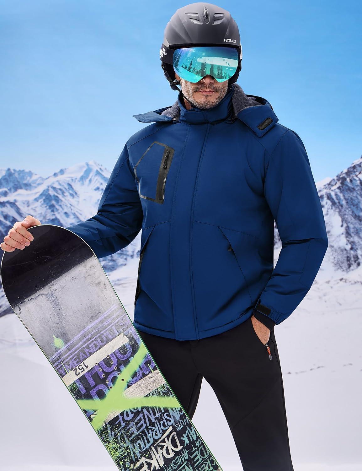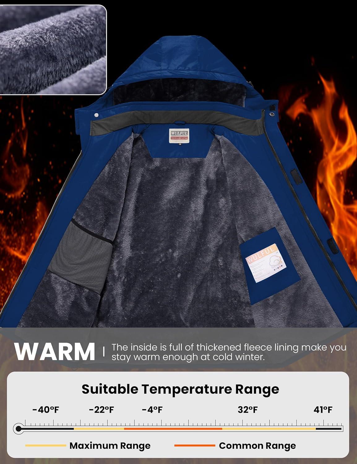 WULFUL Men’s Waterproof Ski Jacket Warm Winter Coats Windproof Winter Jackets for Men Fleece Lined Windbreaker with Hood(Navy Blue-new)