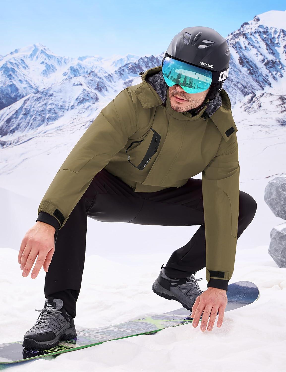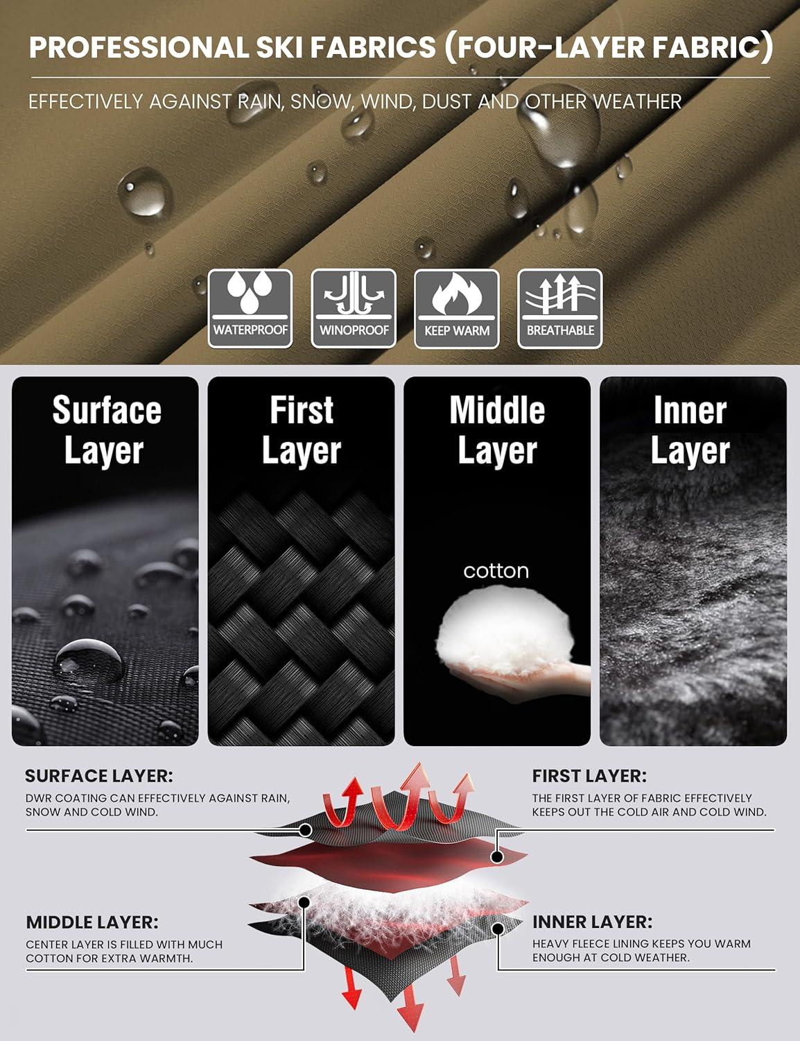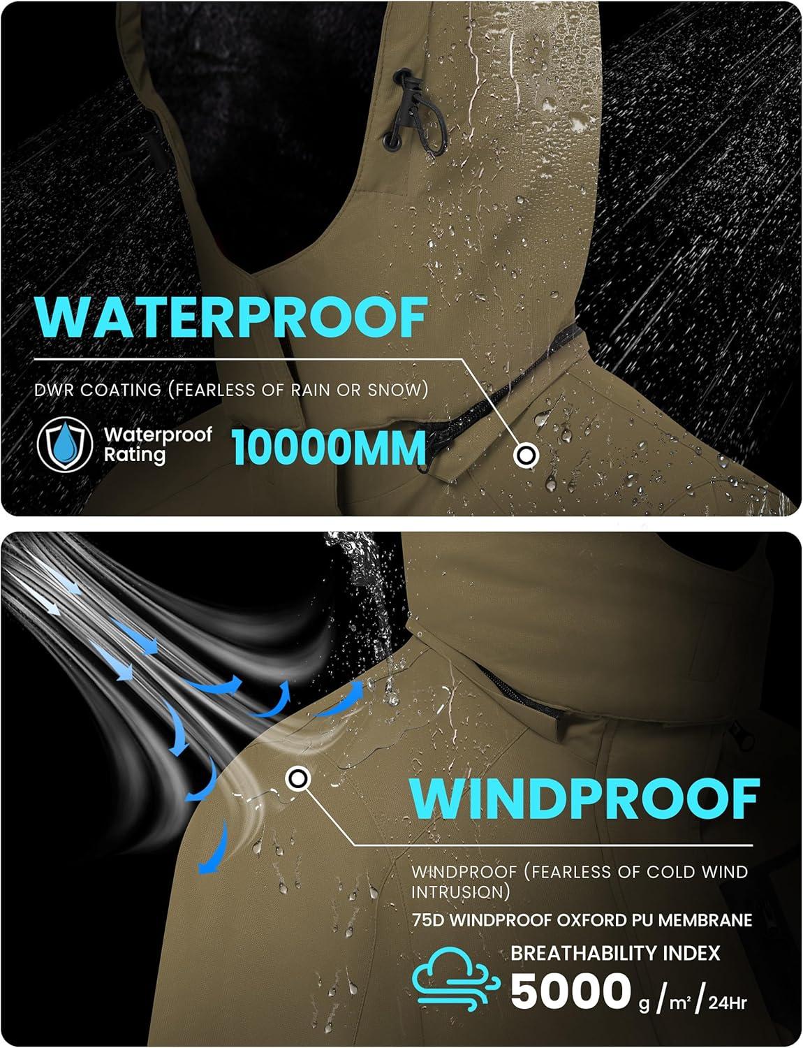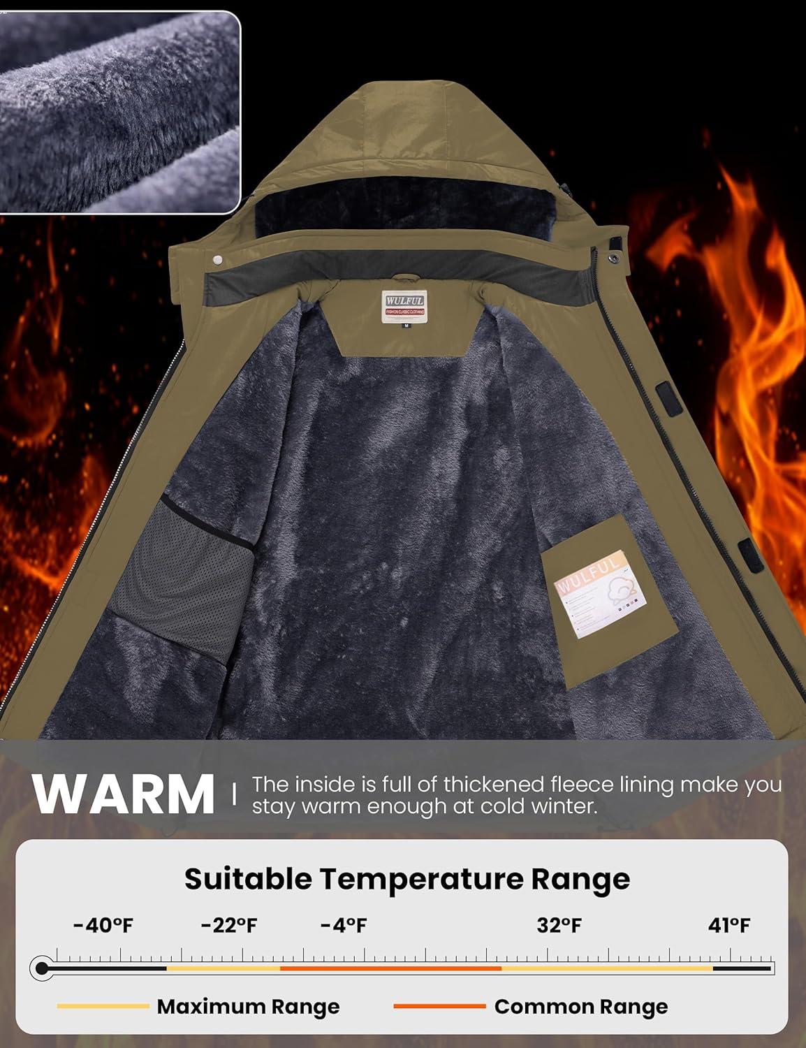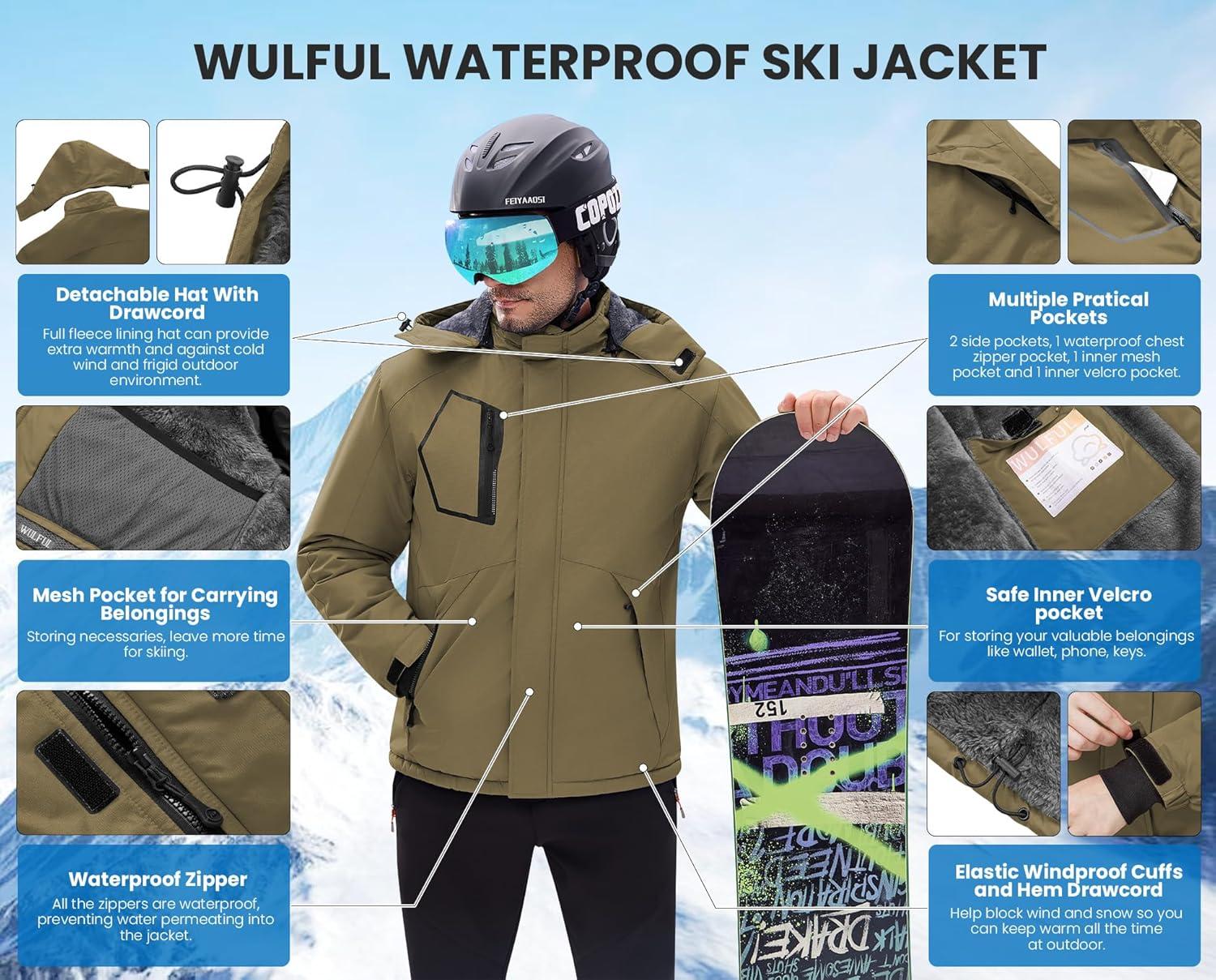 WULFUL Men’s Waterproof Ski Jacket Warm Winter Coats Windproof Winter Jackets for Men Fleece Lined Windbreaker with Hood(Olive Brown)