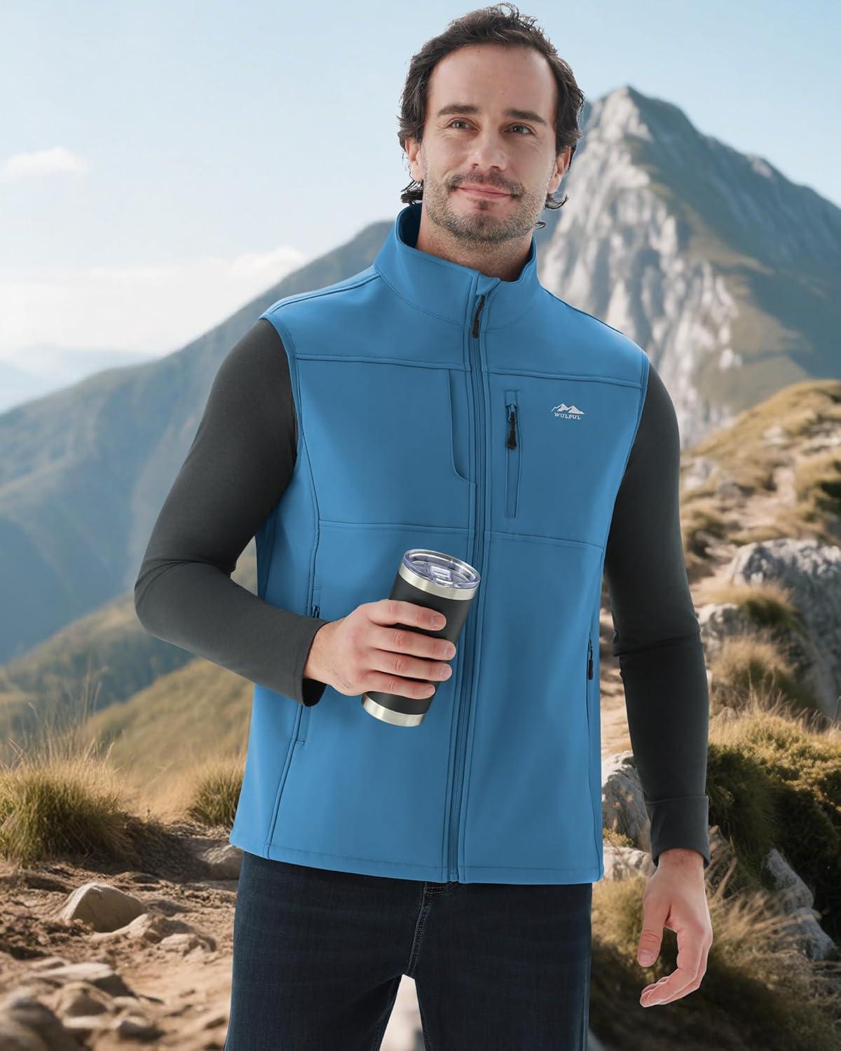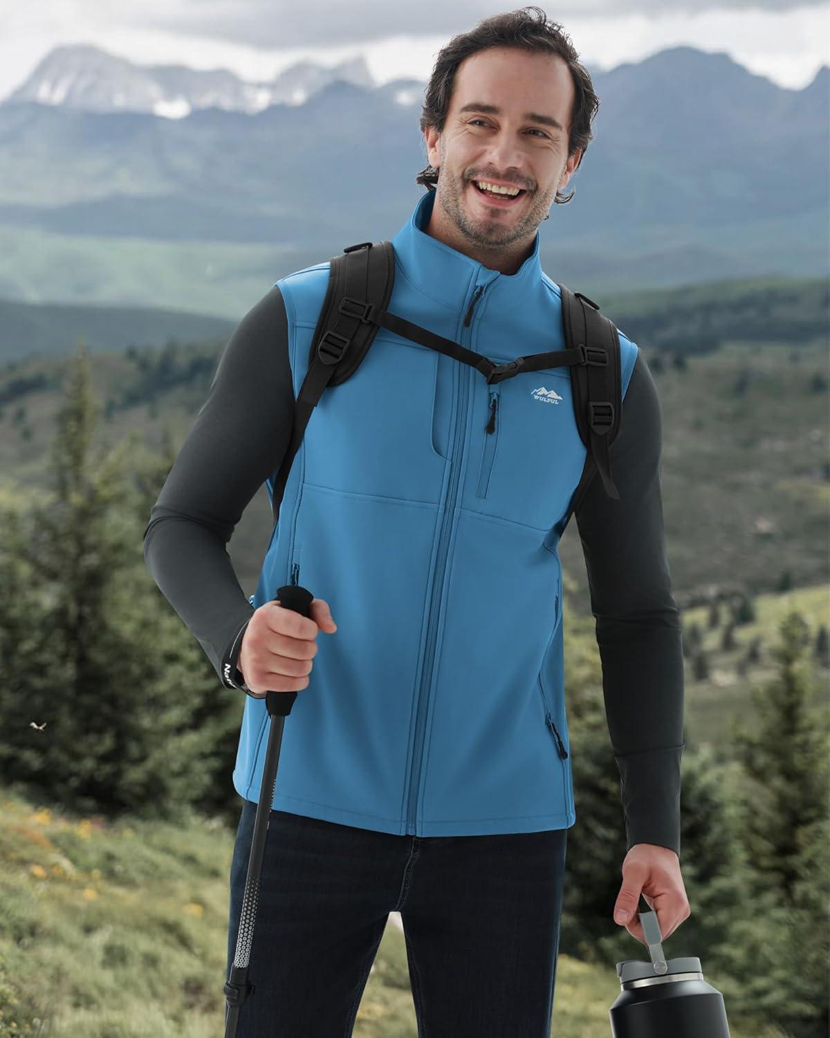 WULFUL Men’s Windproof Lightweight Golf Vest Outerwear with Pockets Softshell Sleeveless Jacket for Running Hiking Sports(Royal Blue)