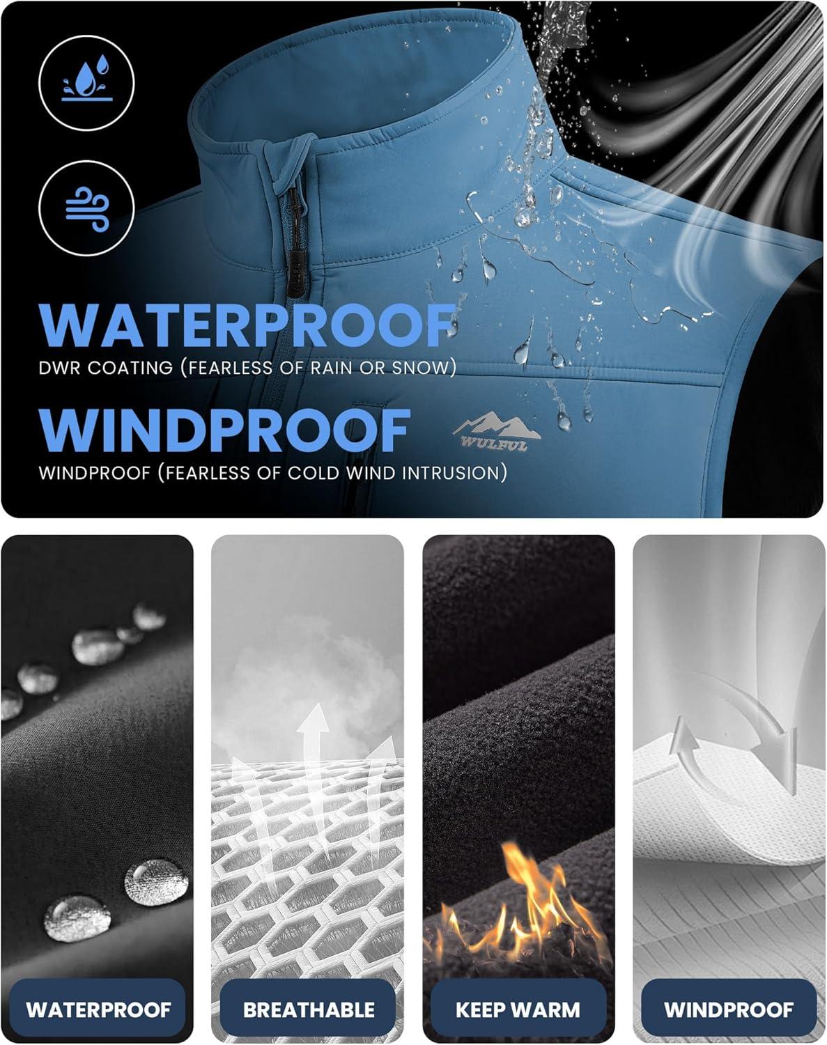 imageWULFUL Mens Windproof Lightweight Golf Vest Outerwear with Pockets Softshell Sleeveless Jacket for Running Hiking SportsRoyal Blue