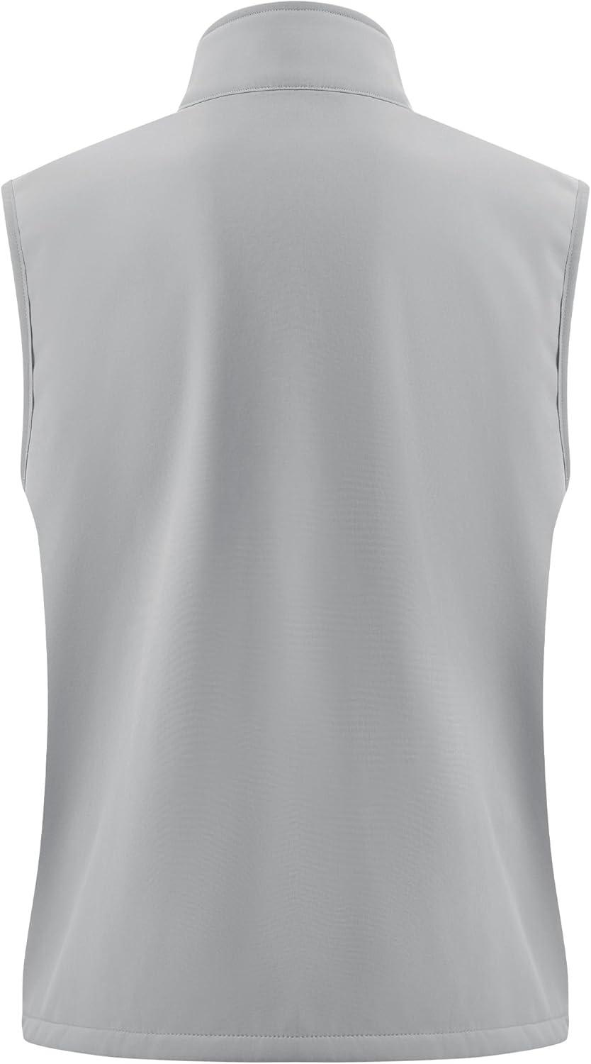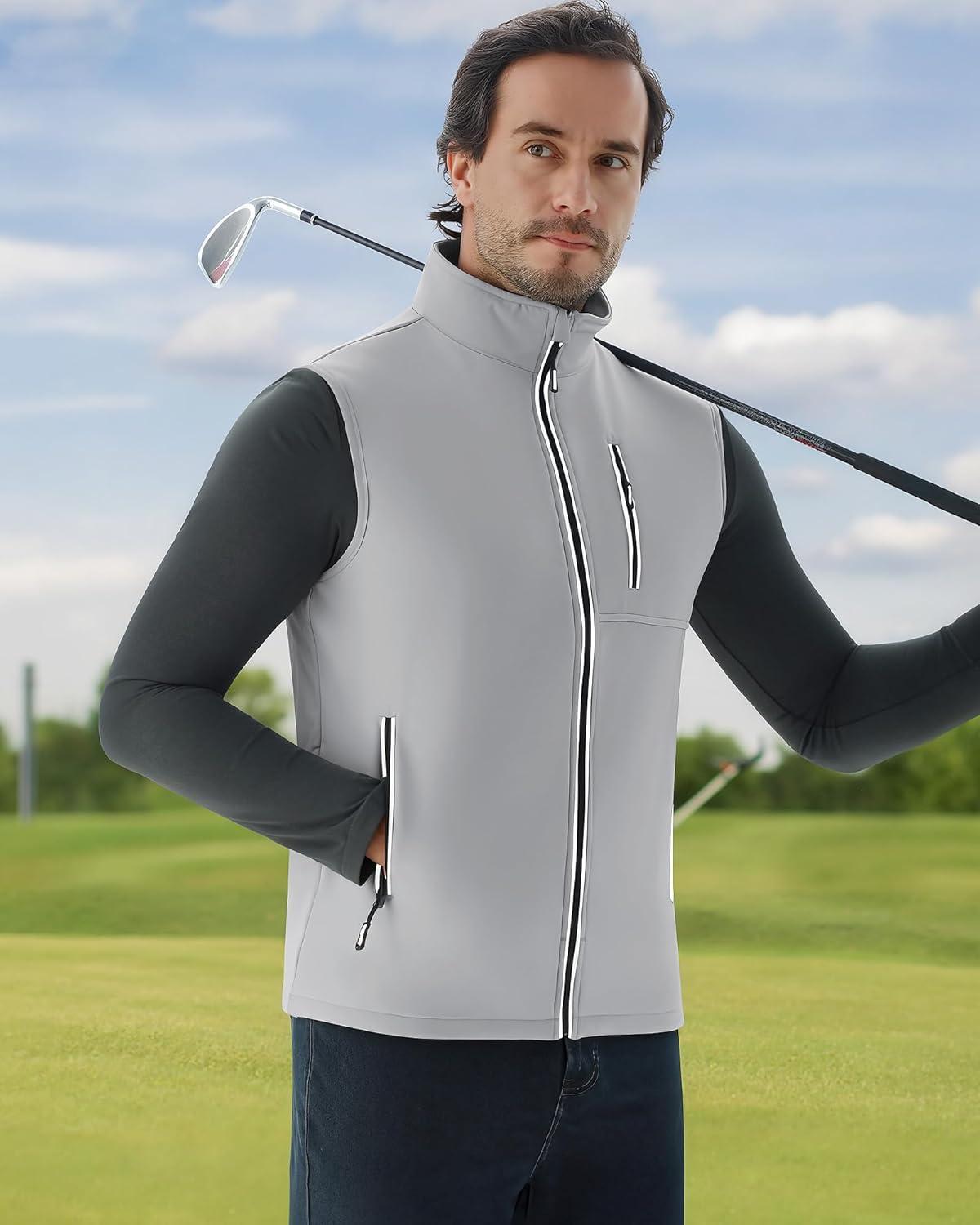WULFUL Men's Windproof Lightweight Golf Vest Outerwear with Pockets, Softshell Sleeveless Jacket for Travel Hiking Running(Light Grey)