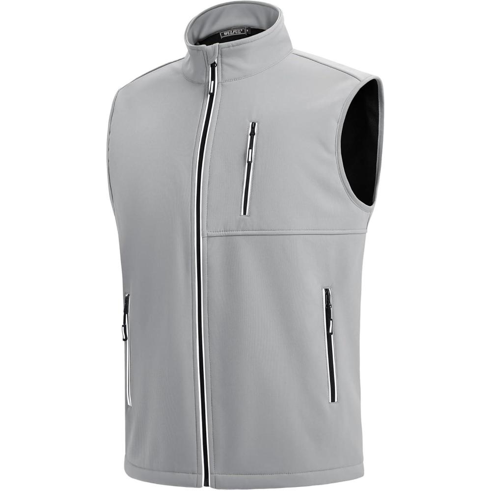 imageWULFUL Mens Windproof Lightweight Golf Vest Outerwear with Pockets Softshell Sleeveless Jacket for Travel Hiking RunningLight Grey