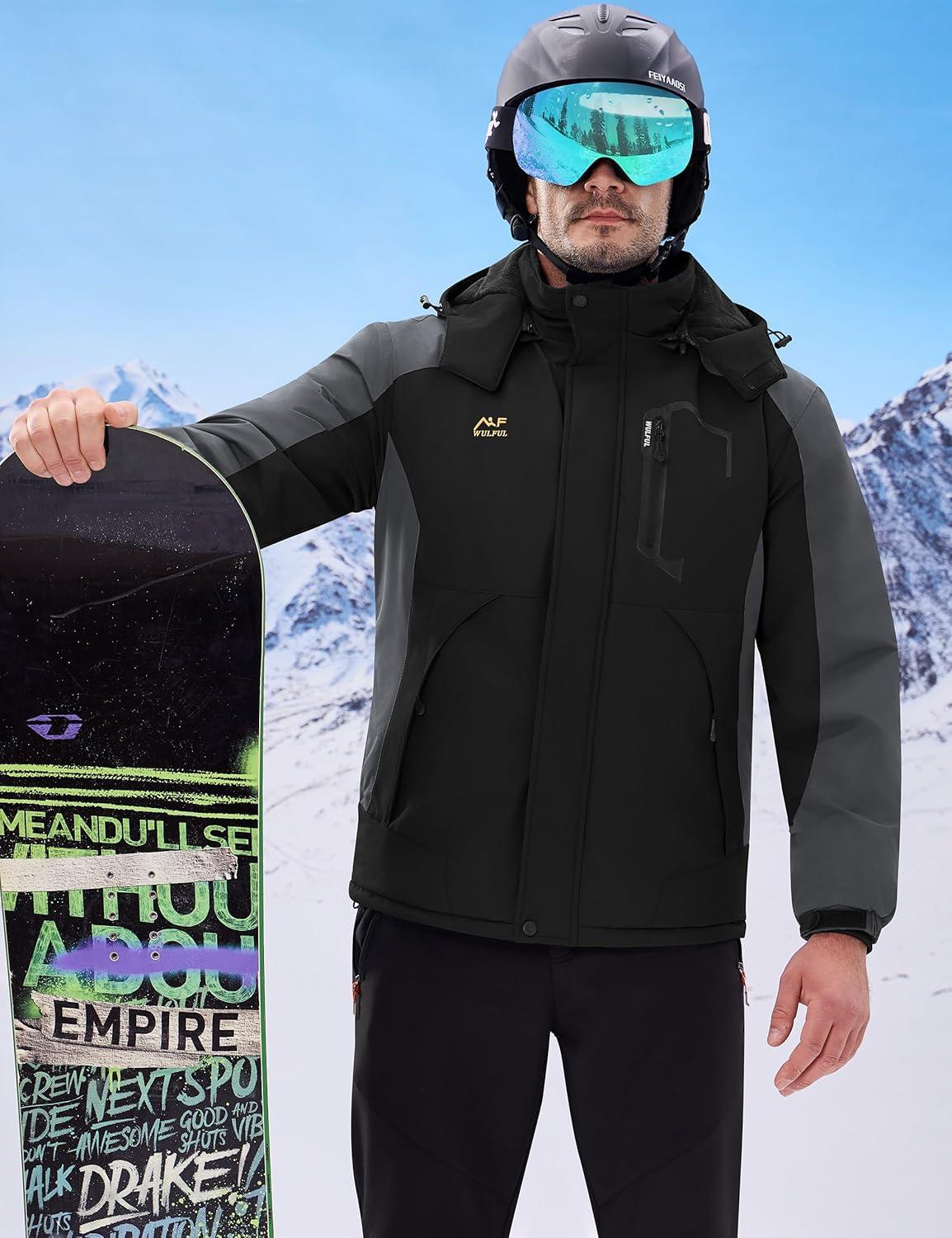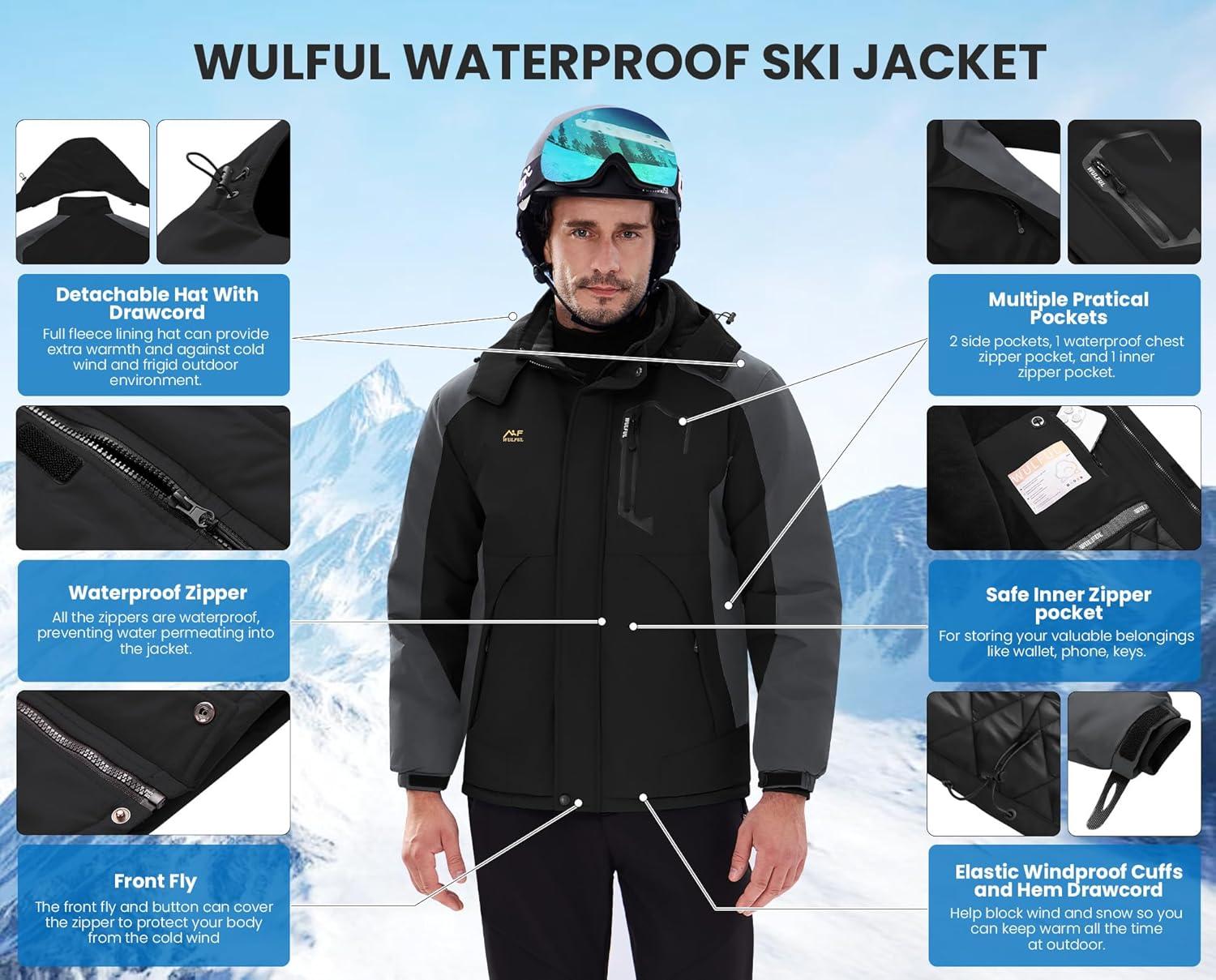 WULFUL Men’s Winter Coats Waterproof Ski Jacket Warm Windproof Winter Windbreaker Jackets for Men with Hood(Dark Grey-0047)