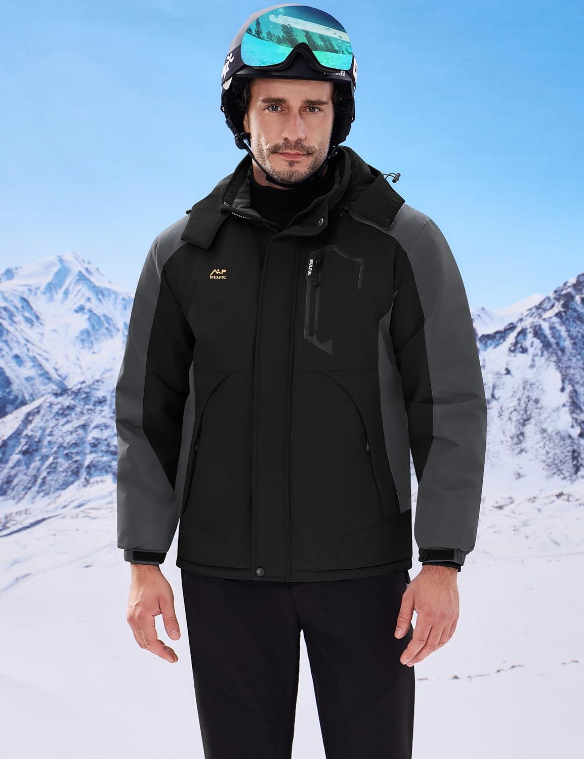 WULFUL Men's Winter Coats Waterproof Ski Jacket Warm Windproof Winter Windbreaker Jackets for Men with Hood(Dark Grey-0047)