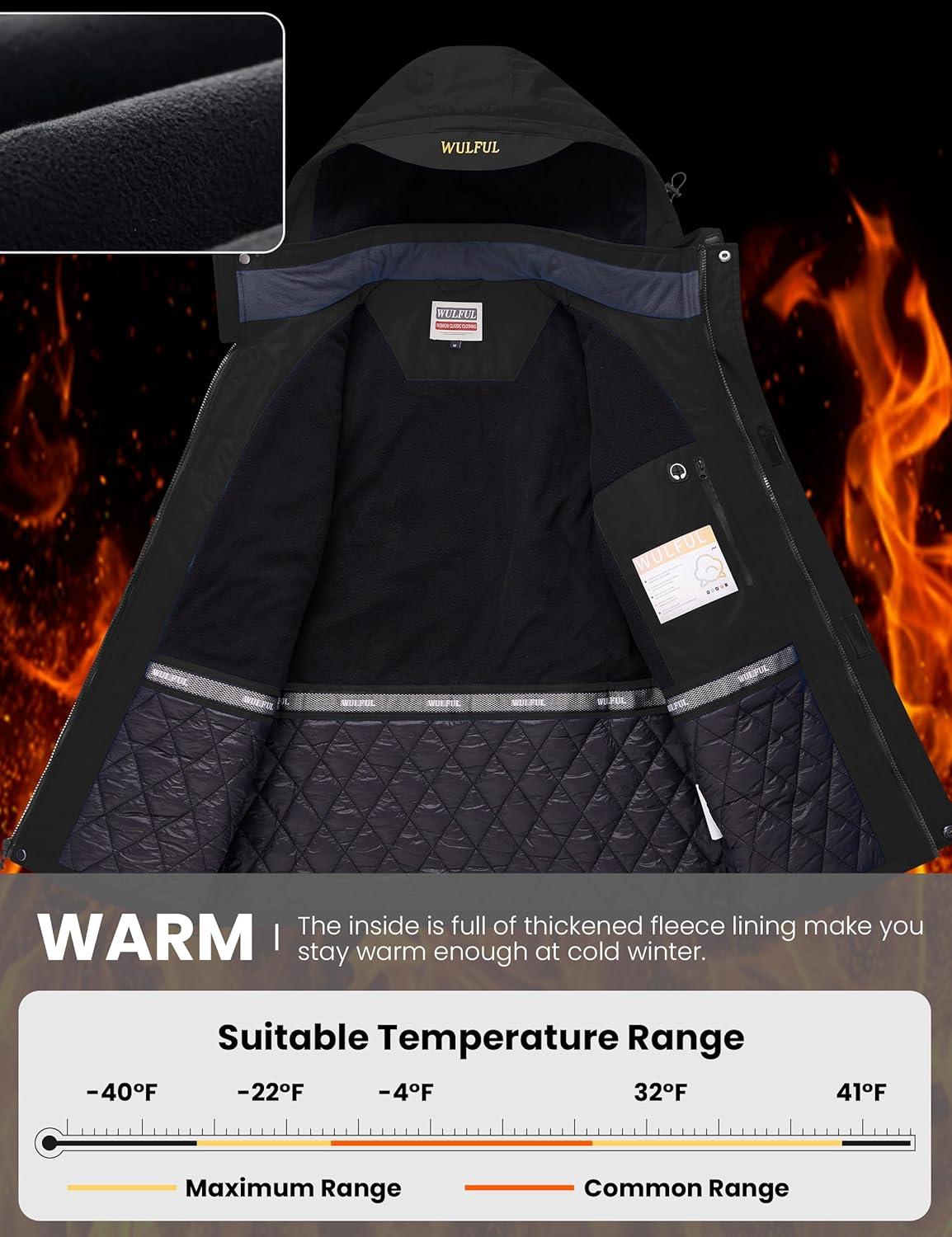 imageWULFUL Mens Winter Coats Waterproof Ski Jacket Warm Windproof Winter Windbreaker Jackets for Men with HoodNavy0047