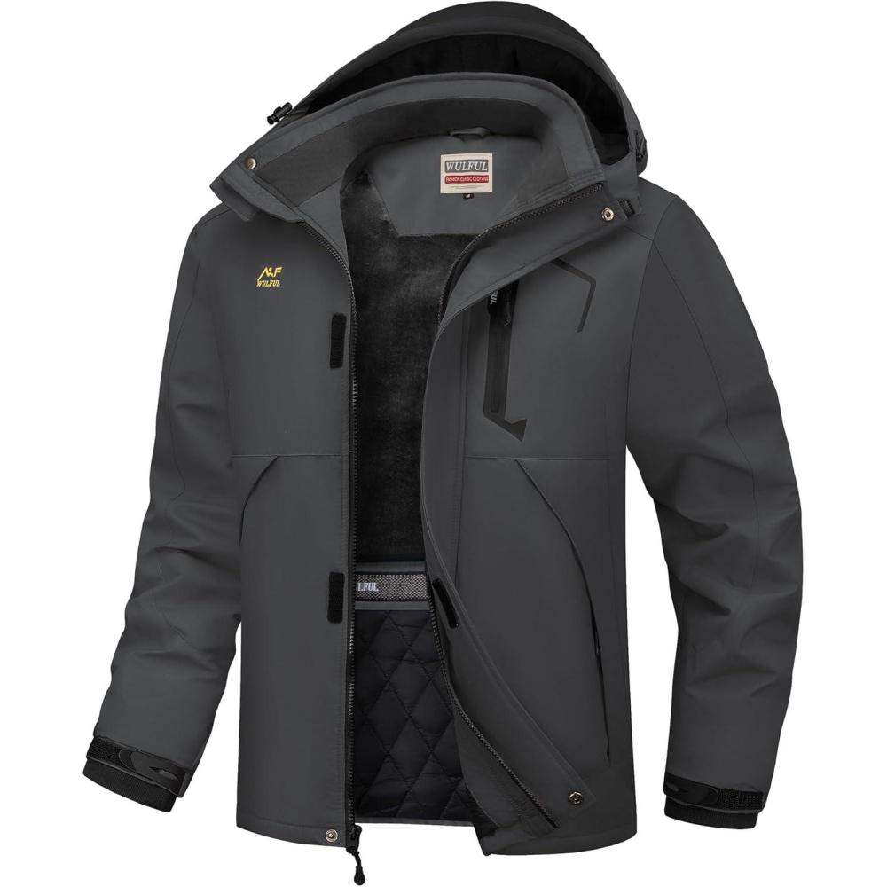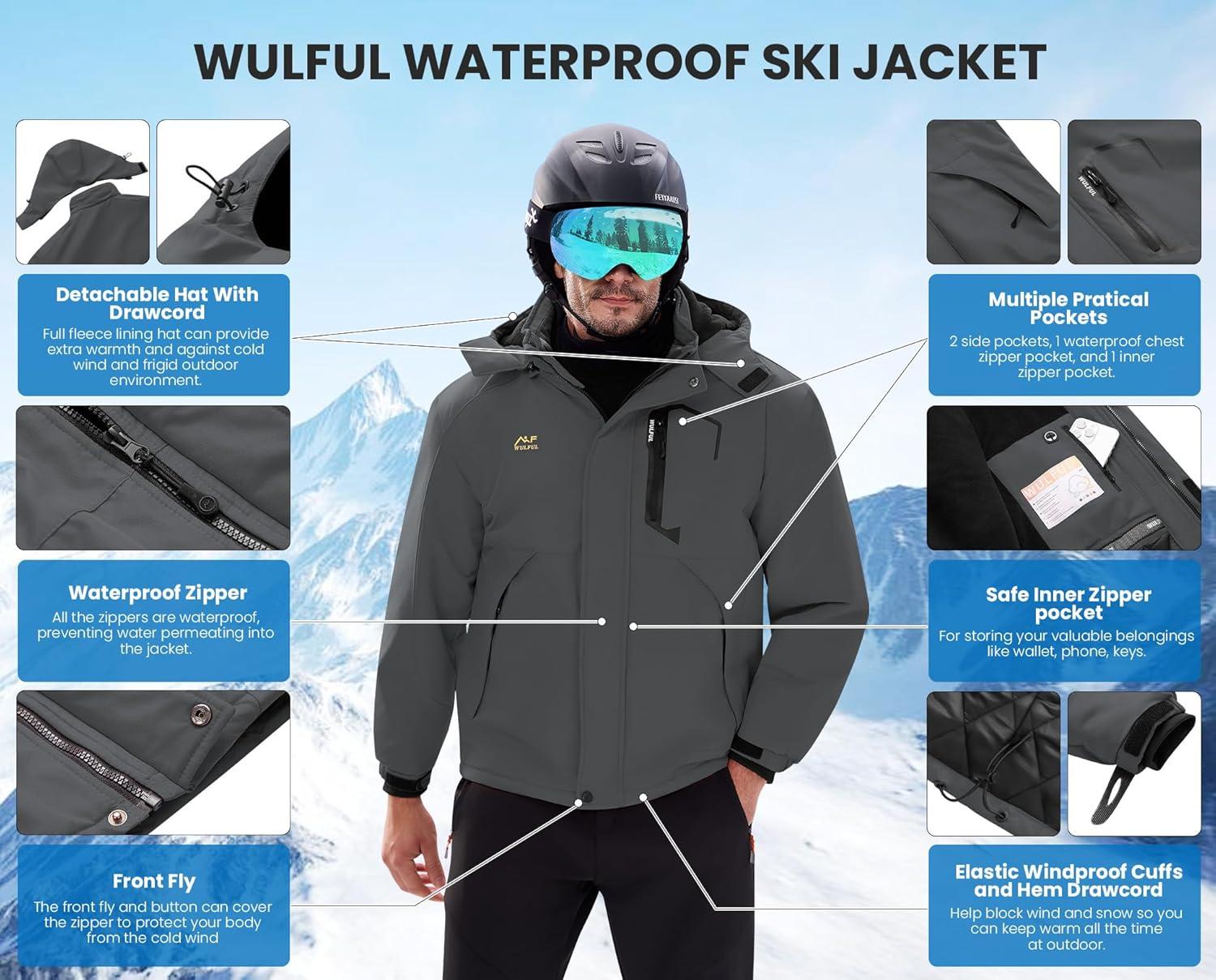 WULFUL Men’s Winter Coats Waterproof Ski Jacket Warm Windproof Winter Windbreaker Jackets for Men with Hood(Solid Dark Grey-0047)