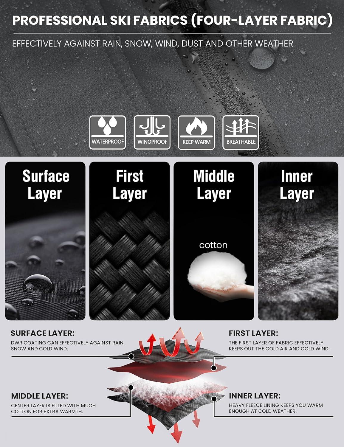 WULFUL Men’s Winter Coats Waterproof Ski Jacket Warm Windproof Winter Windbreaker Jackets for Men with Hood(Red-0047)