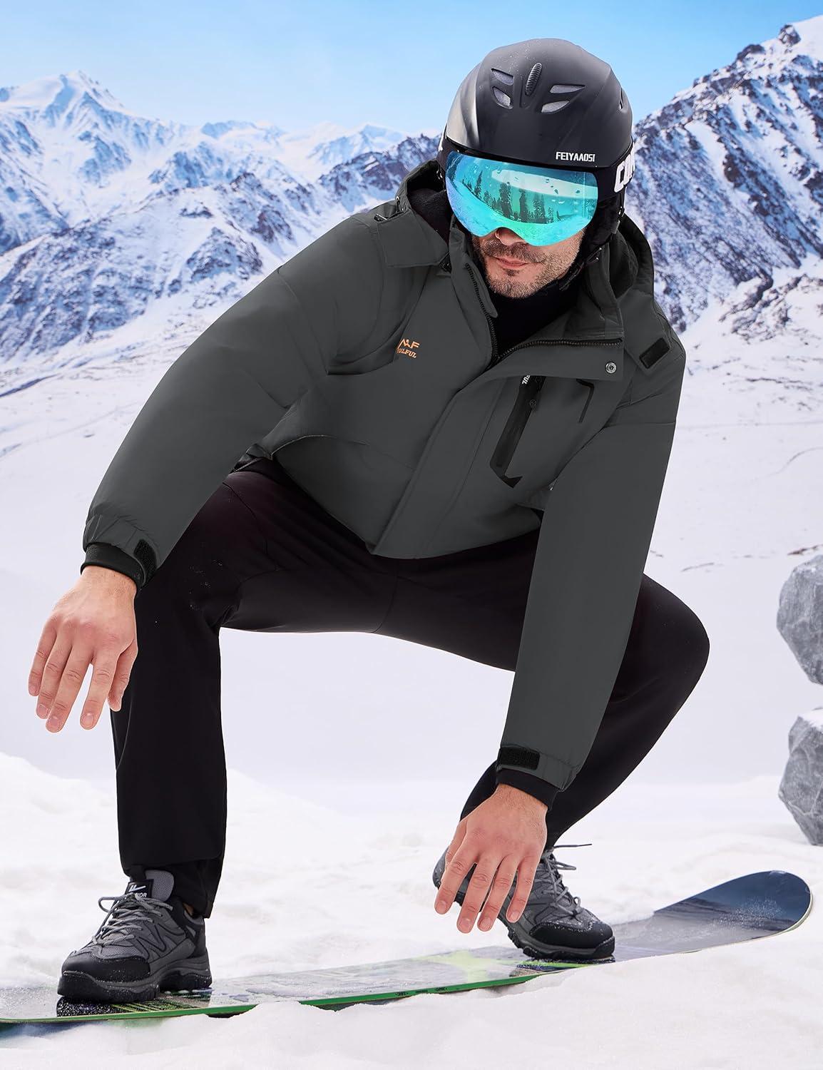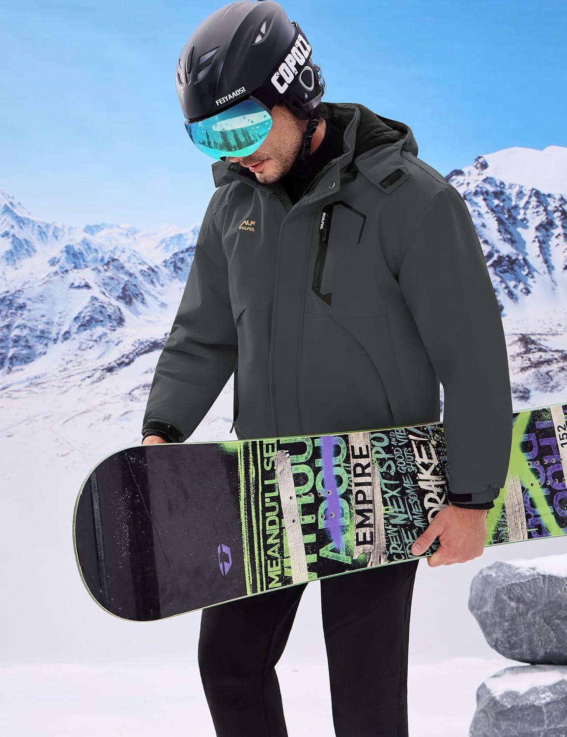 WULFUL Men's Winter Coats Waterproof Ski Jacket Warm Windproof Winter Windbreaker Jackets for Men with Hood(Solid Dark Grey-0047)