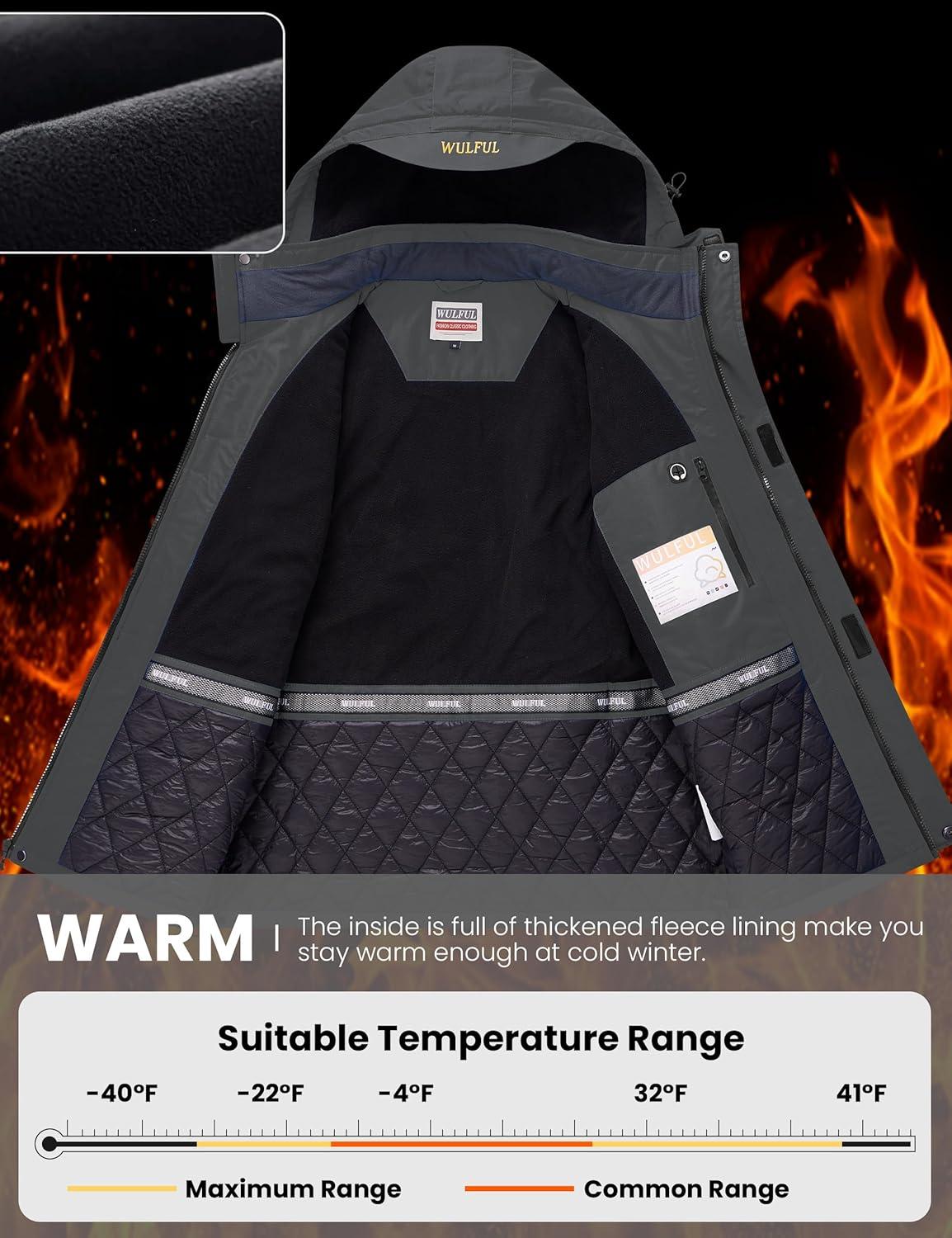 imageWULFUL Mens Winter Coats Waterproof Ski Jacket Warm Windproof Winter Windbreaker Jackets for Men with HoodSolid Dark Grey0047