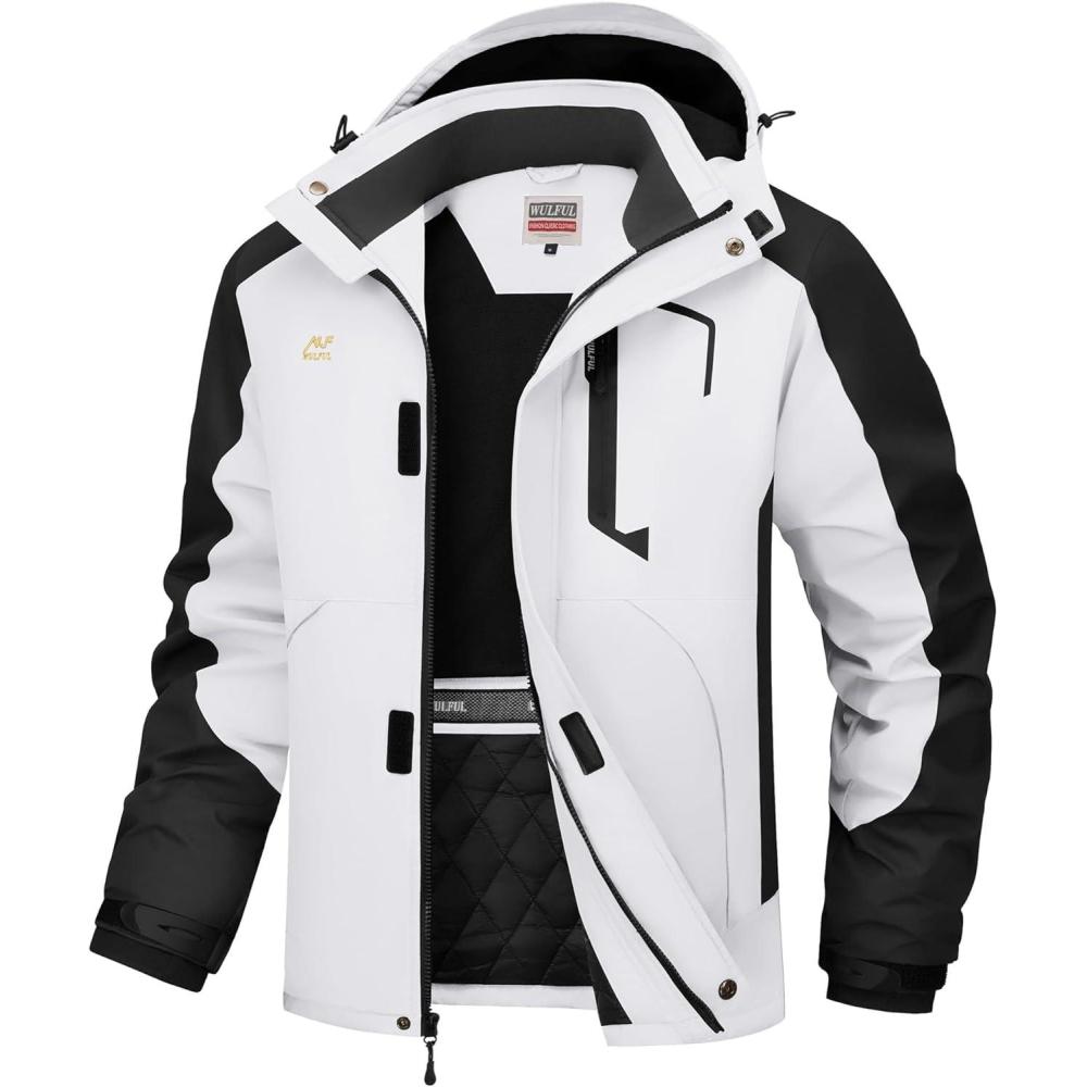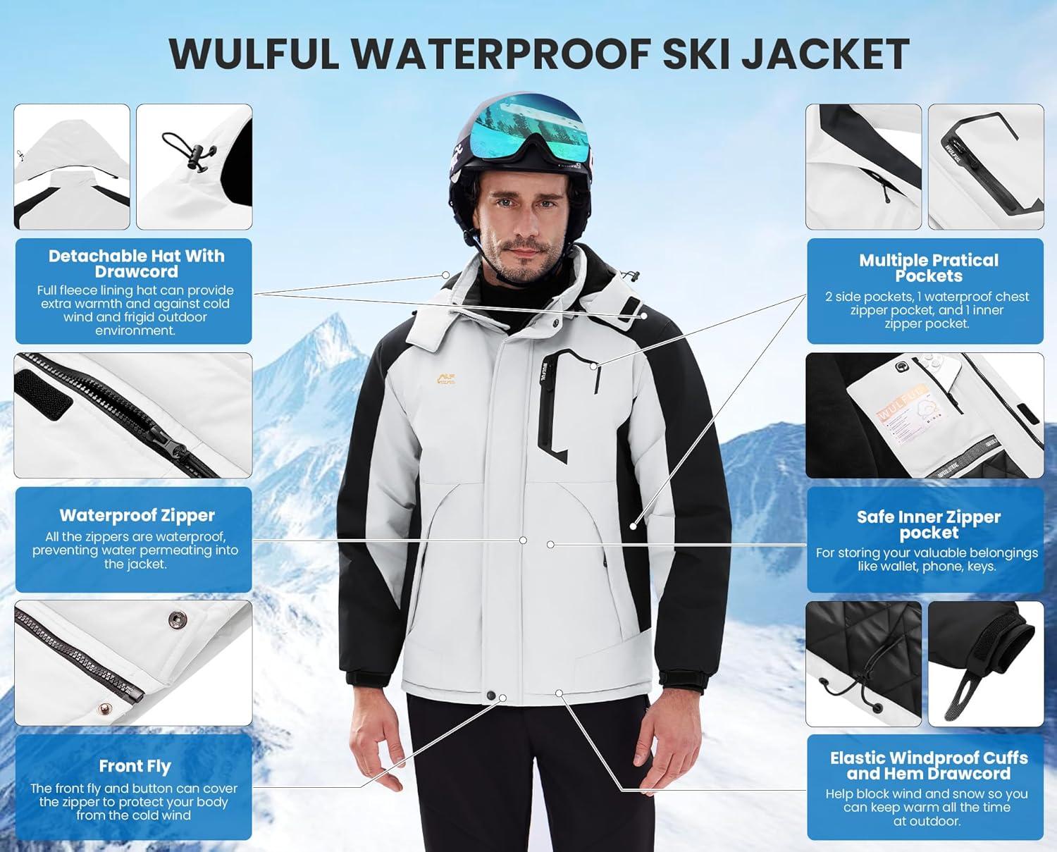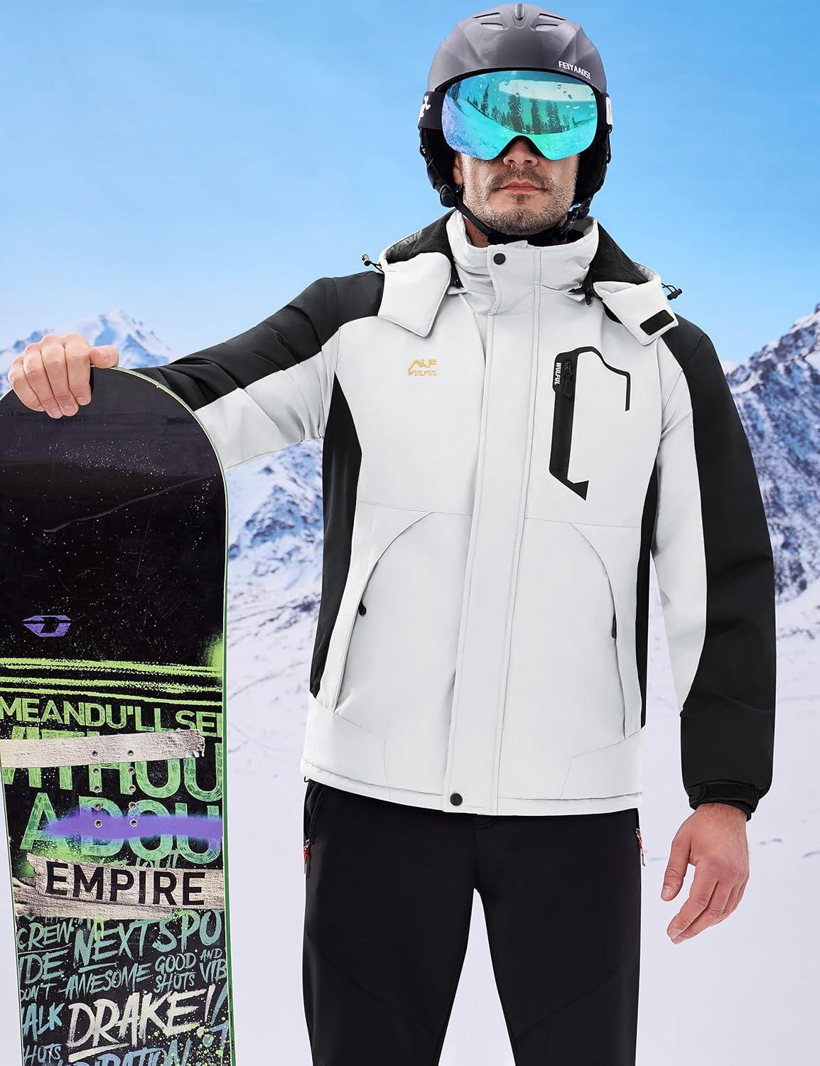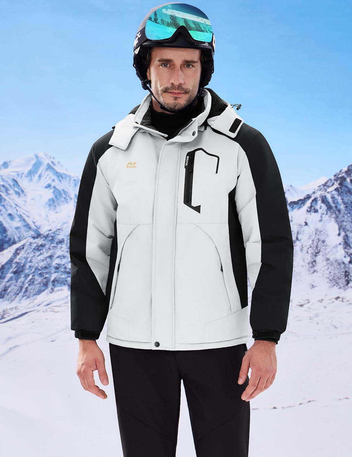 WULFUL Men’s Winter Coats Waterproof Ski Jacket Warm Windproof Winter Windbreaker Jackets for Men with Hood(White-0047)