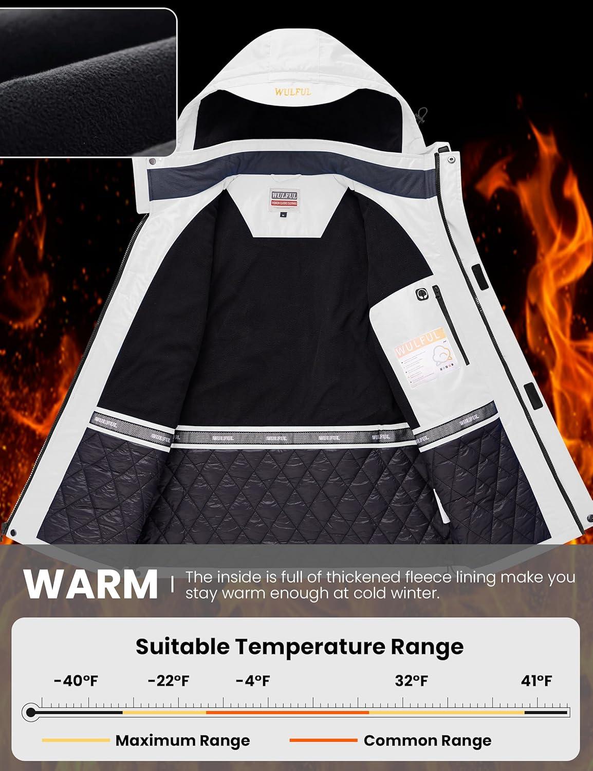 imageWULFUL Mens Winter Coats Waterproof Ski Jacket Warm Windproof Winter Windbreaker Jackets for Men with HoodWhite0047