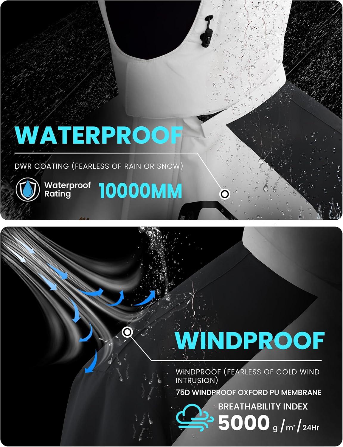WULFUL Men's Winter Coats Waterproof Ski Jacket Warm Windproof Winter Windbreaker Jackets for Men with Hood(White-0047)