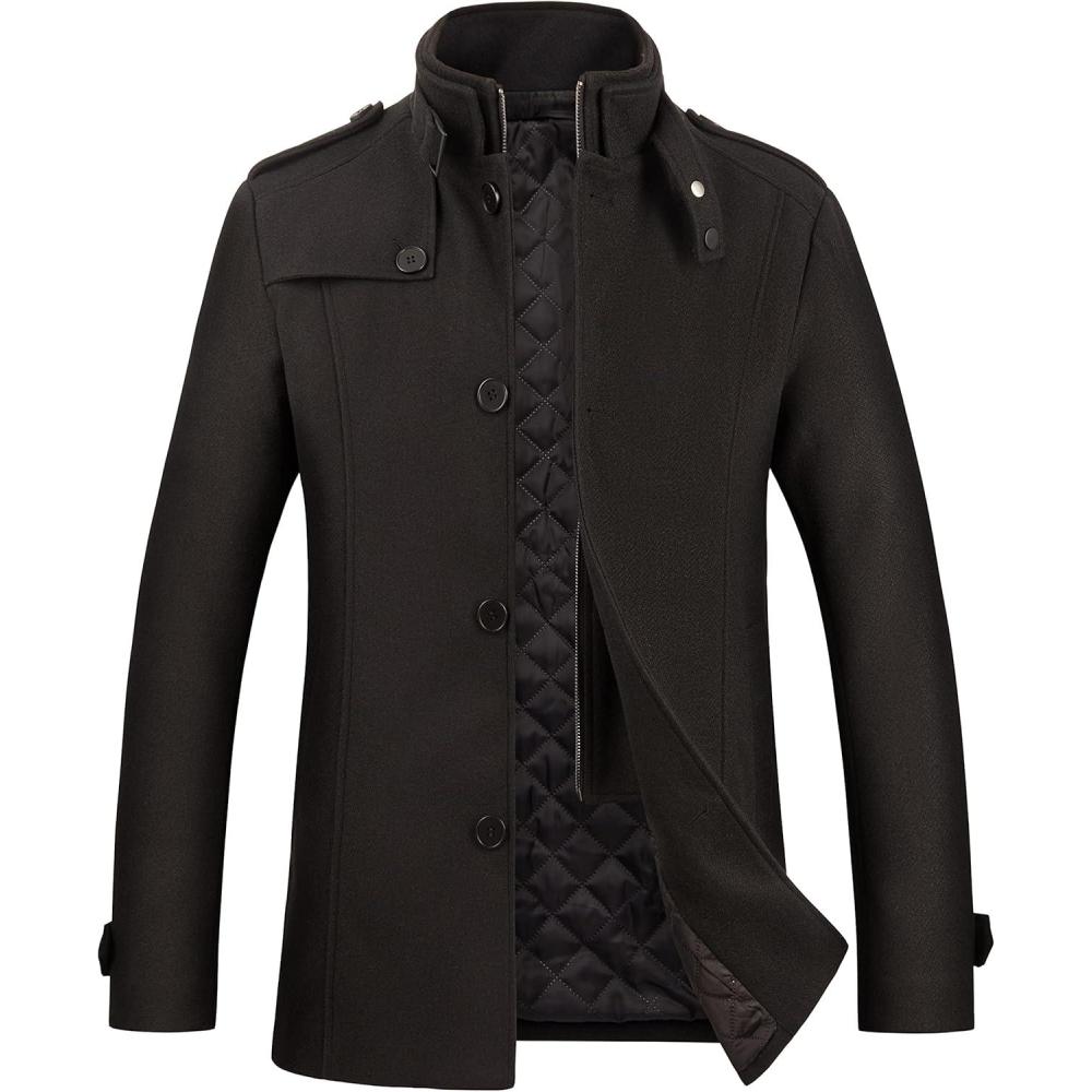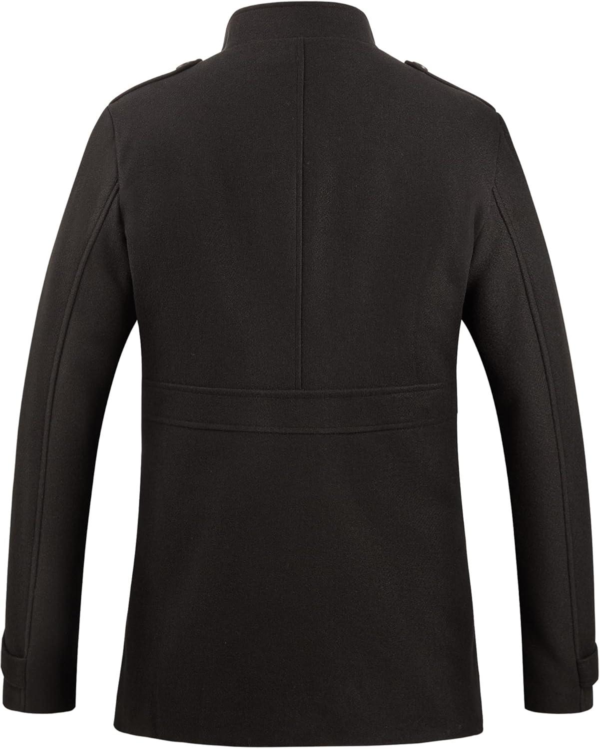 WULFUL Men’s Wool Blend Winter Coat Slim Fit Short Trenchcoat Warm Business Jacket with Detachable Soft Wool Scarf(Black037)