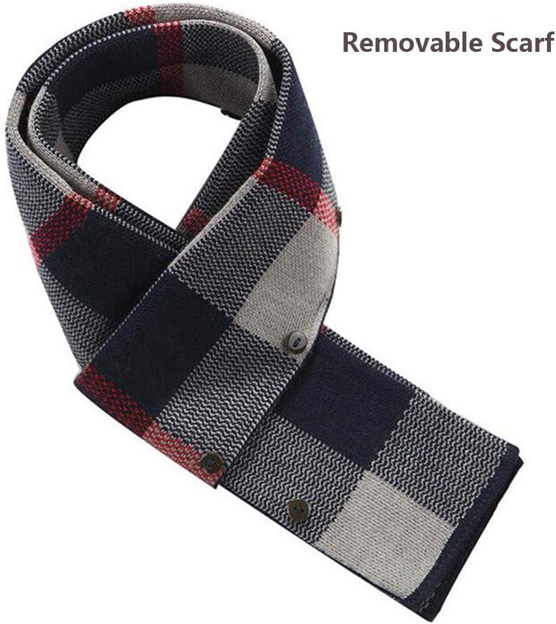 WULFUL Men’s Wool Blend Winter Coat Slim Fit Short Trenchcoat Warm Business Jacket with Detachable Soft Wool Scarf(Black037)