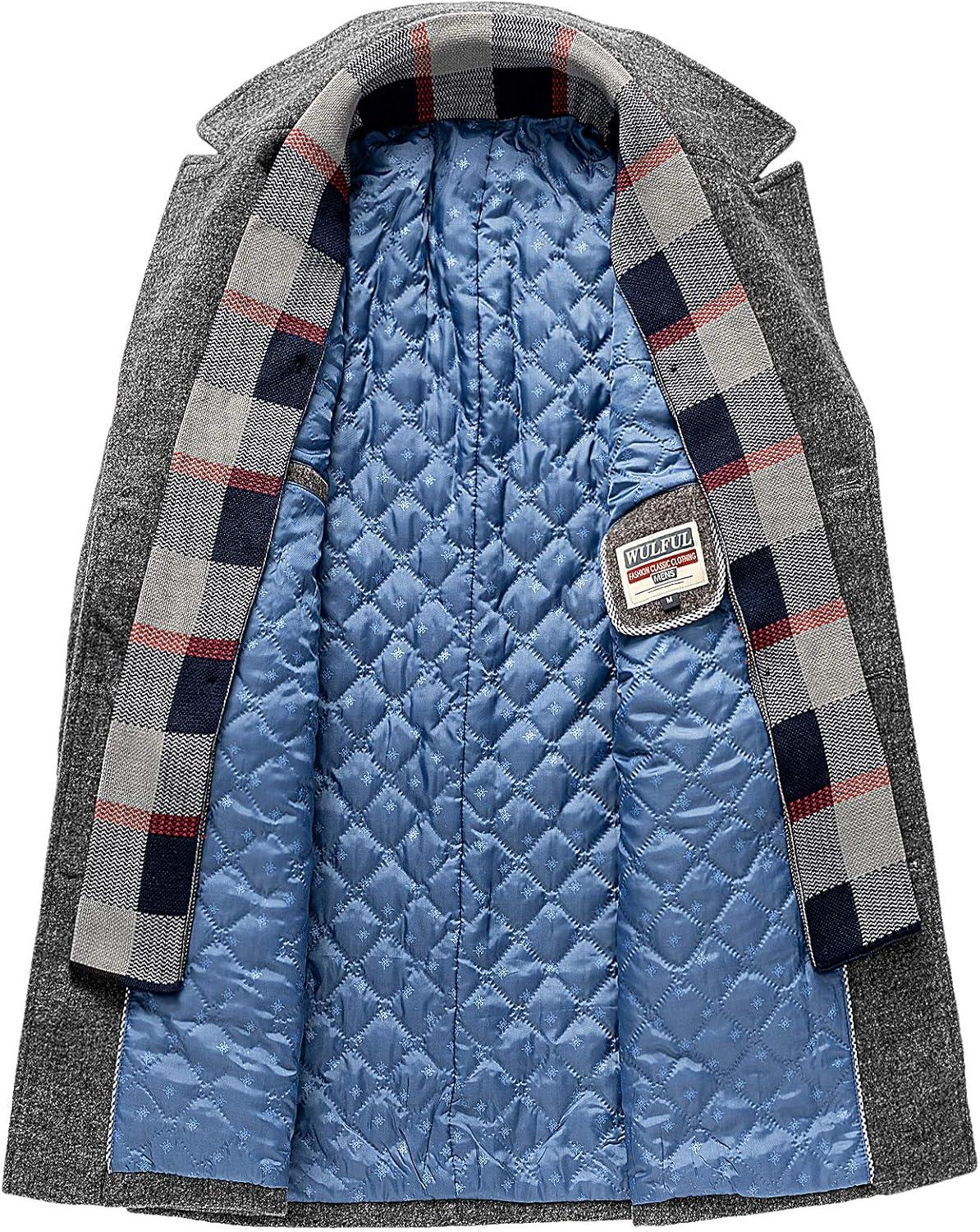 imageWULFUL Mens Wool Blend Winter Coat Slim Fit Short Trenchcoat Warm Business Jacket with Detachable Soft Wool ScarfGrey 02