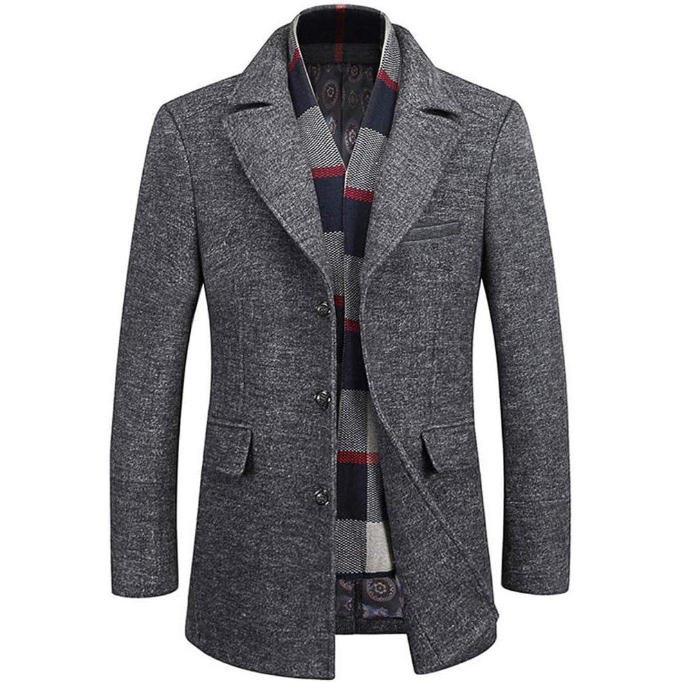 WULFUL Men’s Wool Blend Winter Coat Slim Fit Short Trenchcoat Warm Business Jacket with Detachable Soft Wool Scarf(Grey 01)