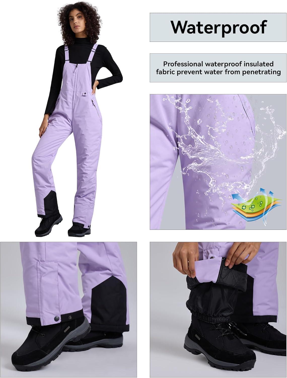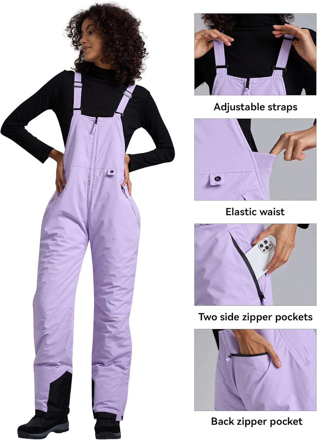 WULFUL Womens Insulated Snow Bibs Waterproof Winter Ski Pants Snowboarding Overalls(Purple)