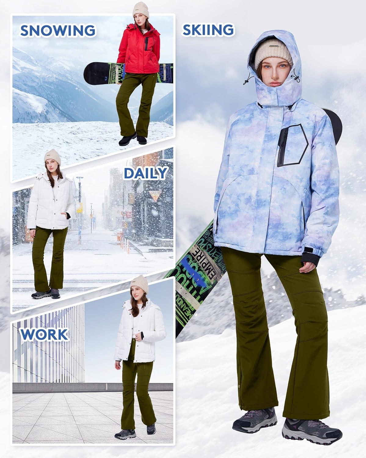 The slight flare bottom with adjustable snaps on the leg opening allows you to adjust the size of the pants to cover various boots or create a stylish flare pant look,not only for snow activities,also perfect for winter daily outfits