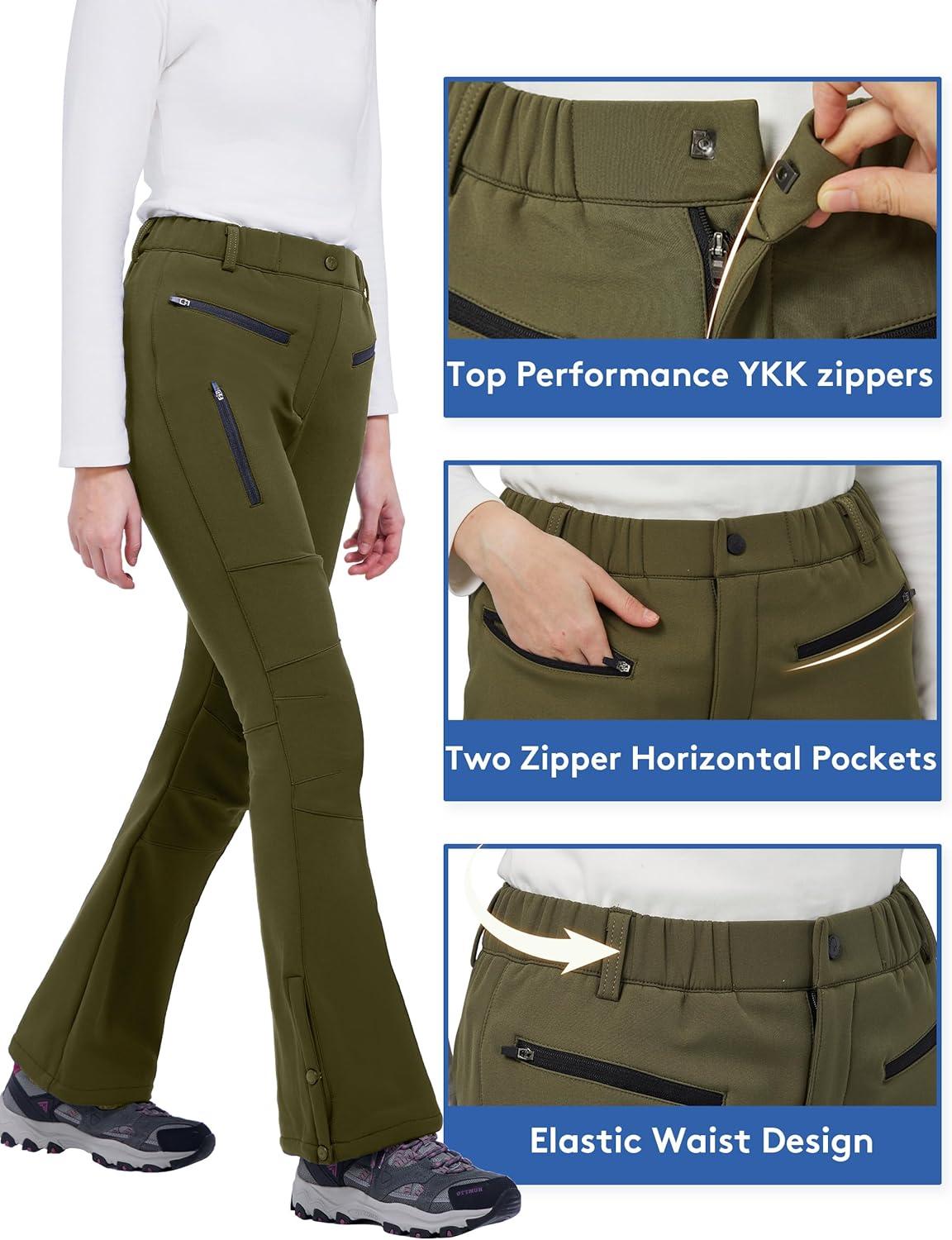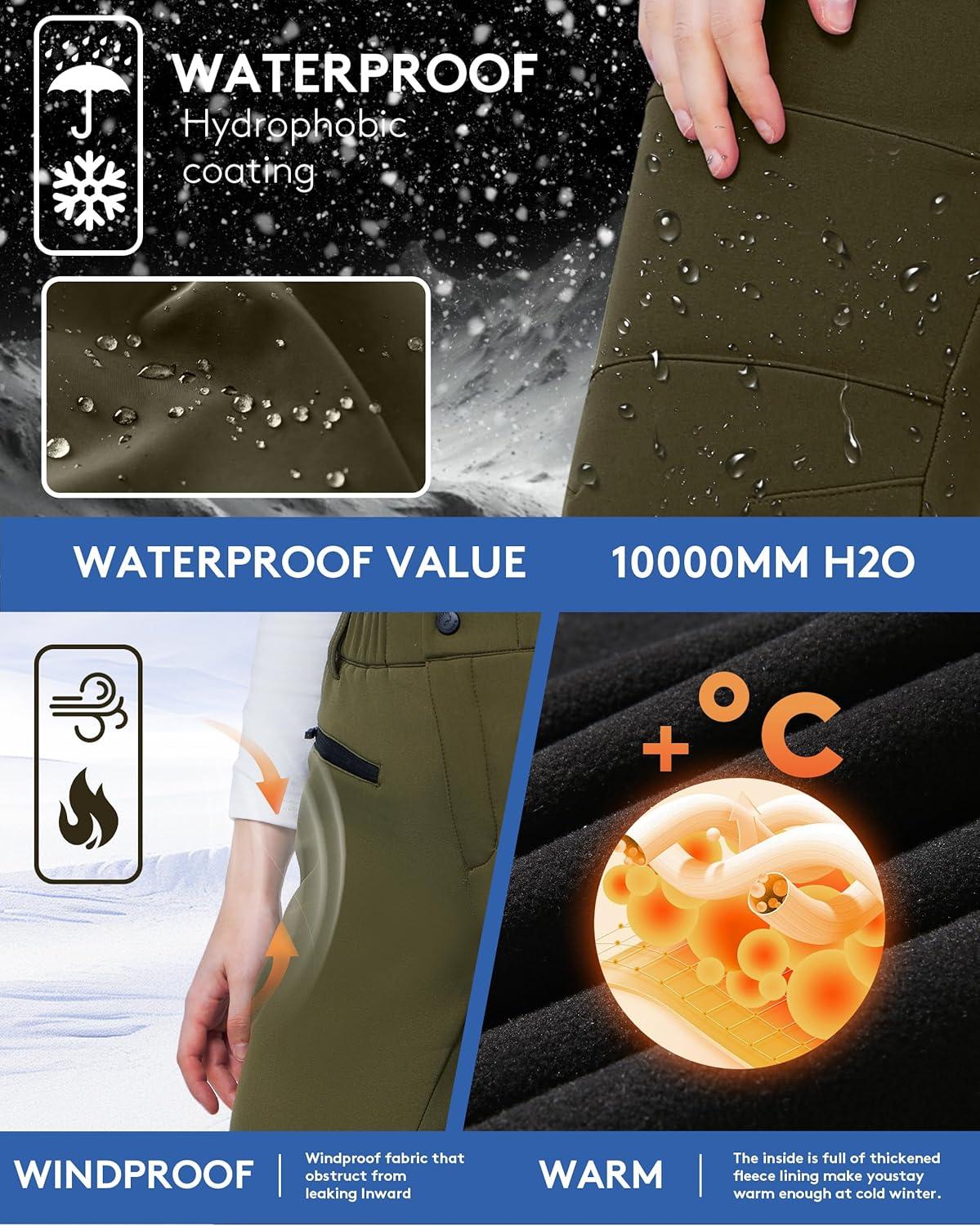 WULFUL Women’s Snow Ski Pants Waterproof Insulated Fleece Lined Winter Softshell Hiking Pants(Army Green)