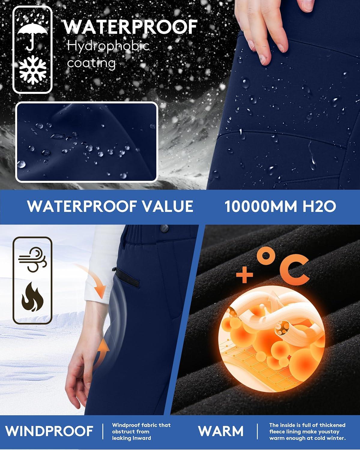 imageWULFUL Womens Snow Ski Pants Waterproof Insulated Fleece Lined Winter Softshell Hiking PantsNavy