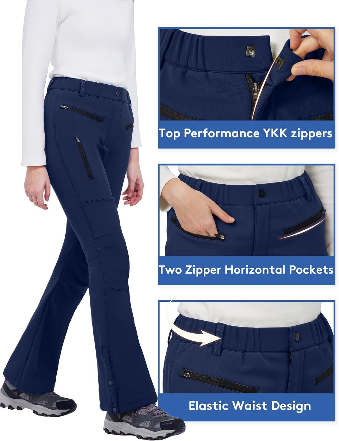 WULFUL Women’s Snow Ski Pants Waterproof Insulated Fleece Lined Winter Softshell Hiking Pants(Navy)