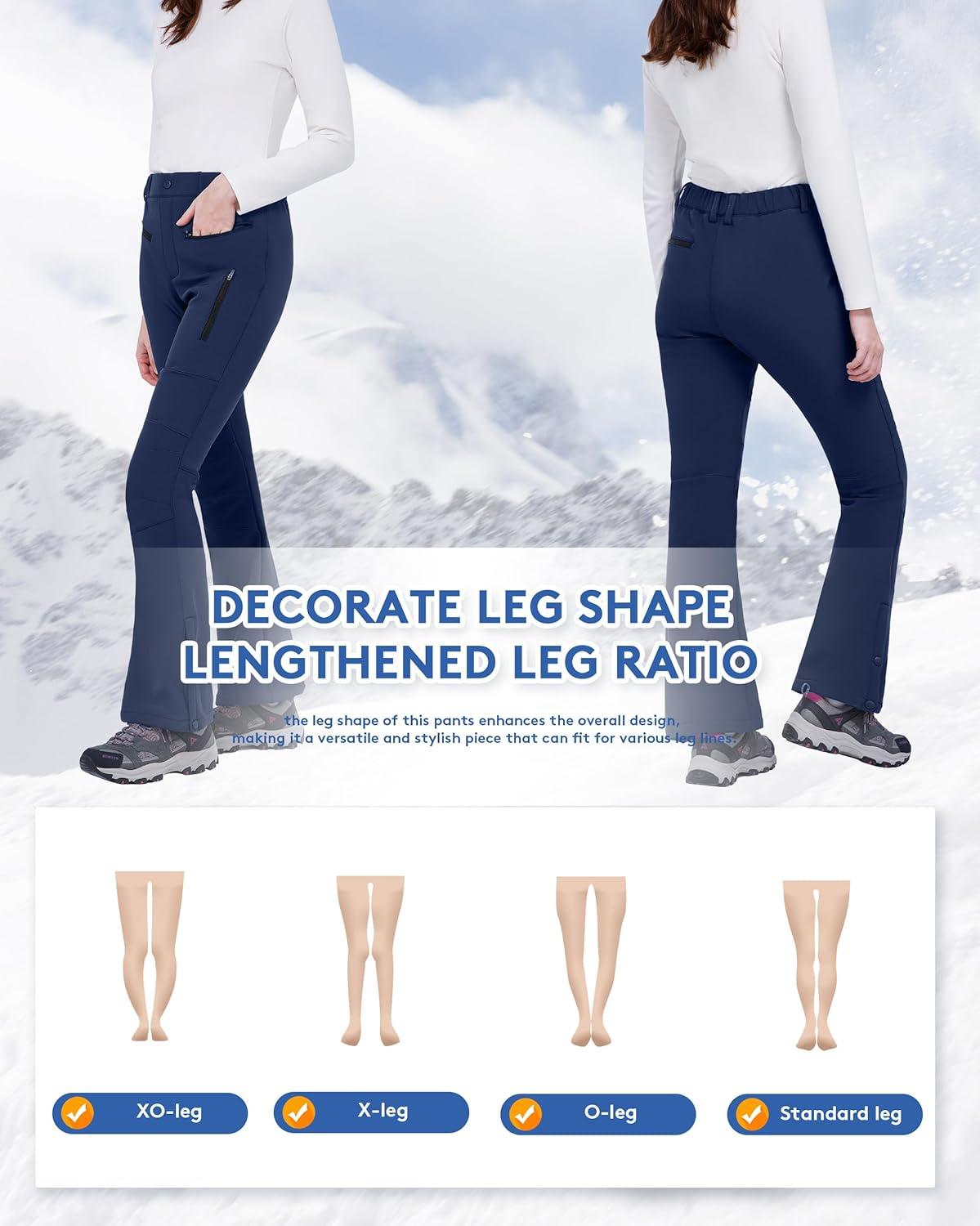 Perfect Tailoring:This winter pants are designed with a slight slim fit that enhances your shape. With 3D tailoring and articulated knees, these pants fit your body well, showing off your figure without restricting movement. The elastic waistband allow for easy adjustment, ensuring a comfortable and flattering fit