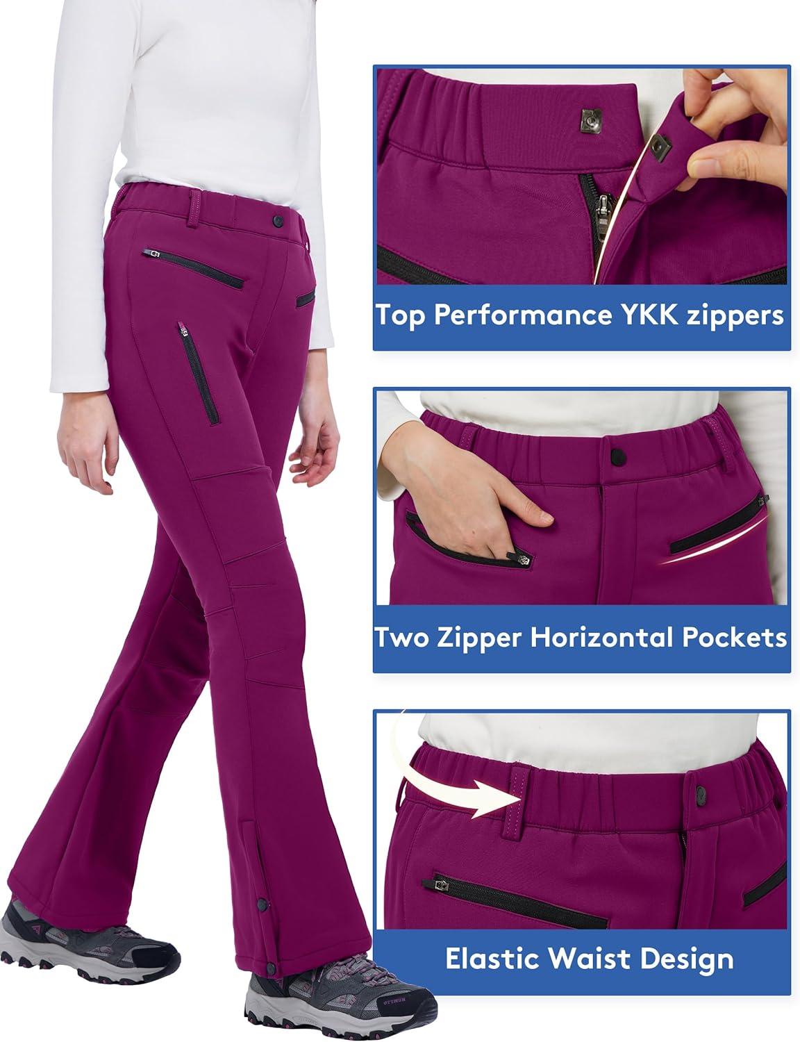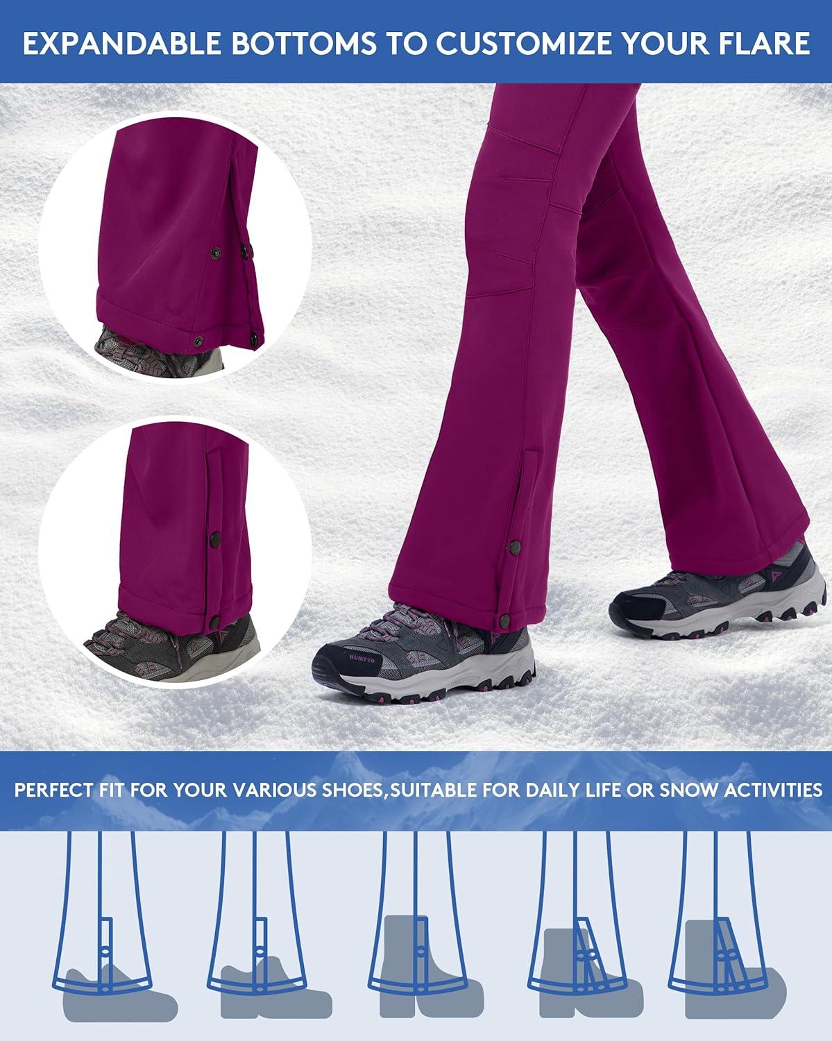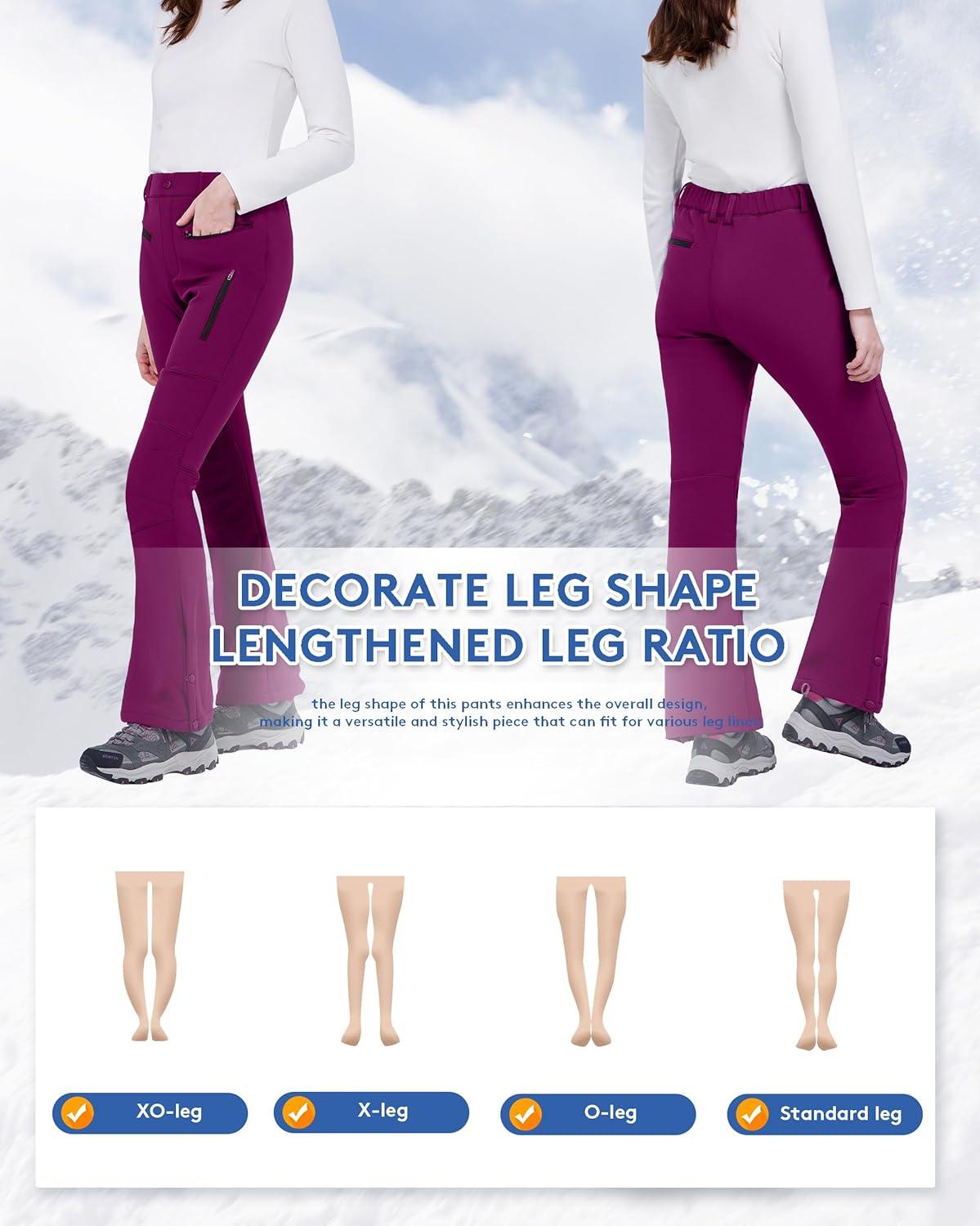 The slight flare bottom with adjustable snaps on the leg opening allows you to adjust the size of the pants to cover various boots or create a stylish flare pant look,not only for snow activities,also perfect for winter daily outfits
