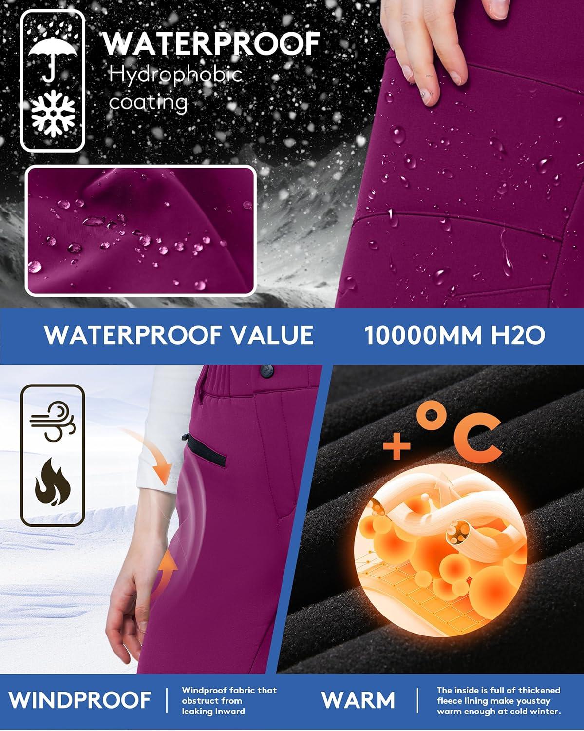 Insulated Fleece Lined:The inner layer of this winter thermal pants are fleece lined,give you warmth,softness and comfort,can lock the heat and stay warm in the cold weather, Perfect for winter snow activities, these pants will keep you cozy and protected