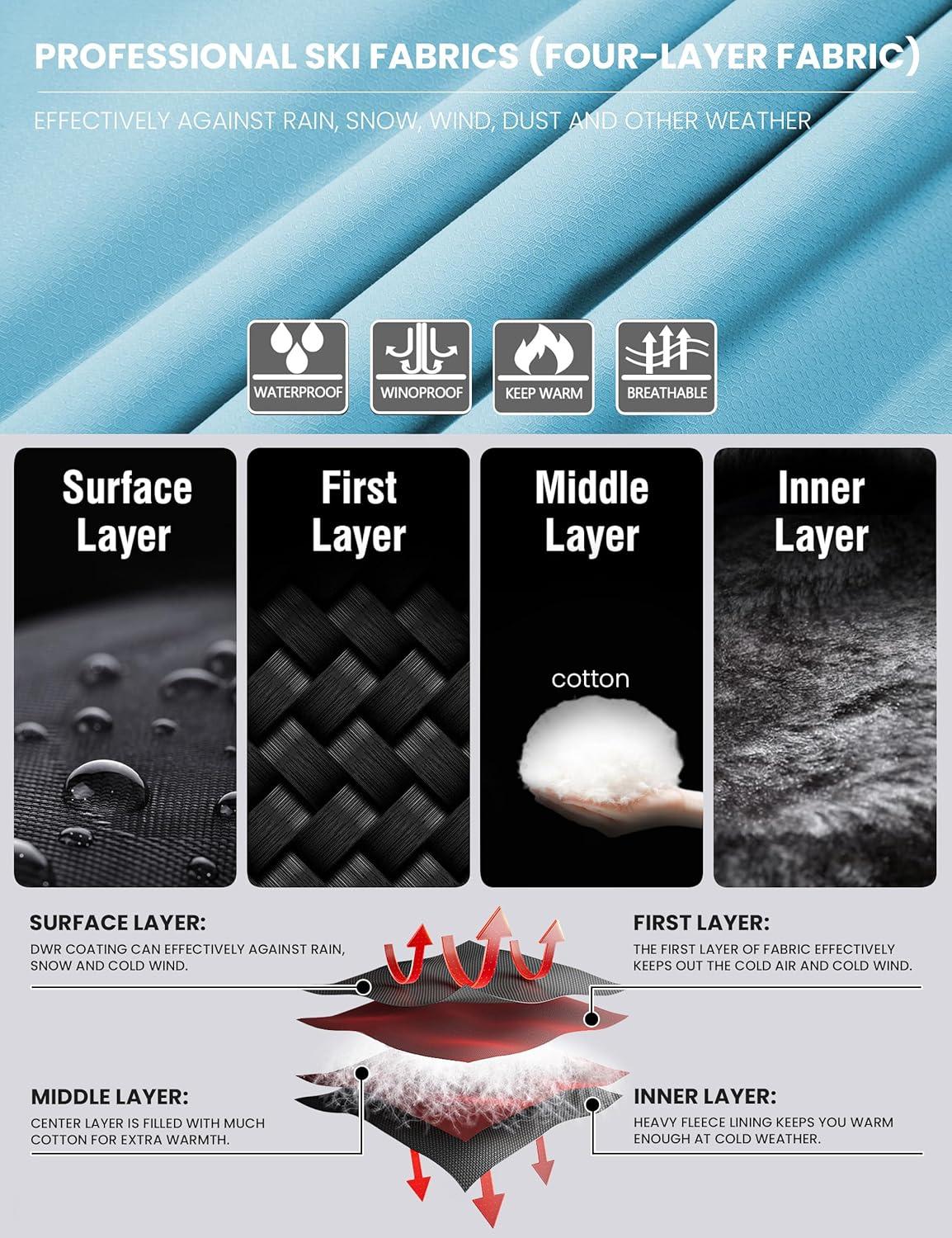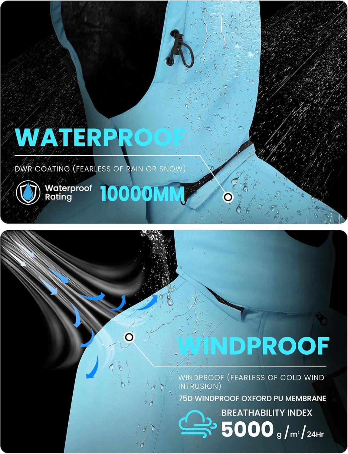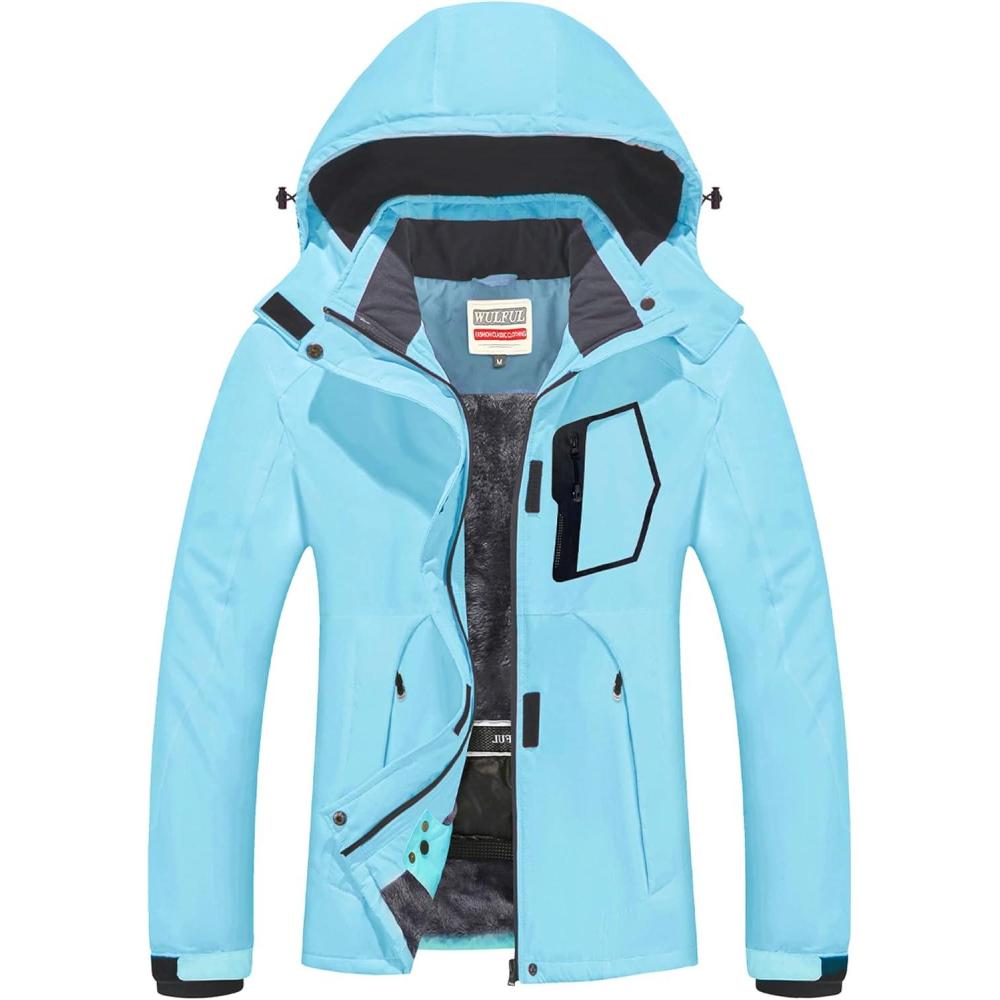 WULFUL Women’s Waterproof Ski Jacket Warm Winter Coats Windproof Winter Jackets for Women Fleece Lined Windbreaker with Hood(Light Blue-new)