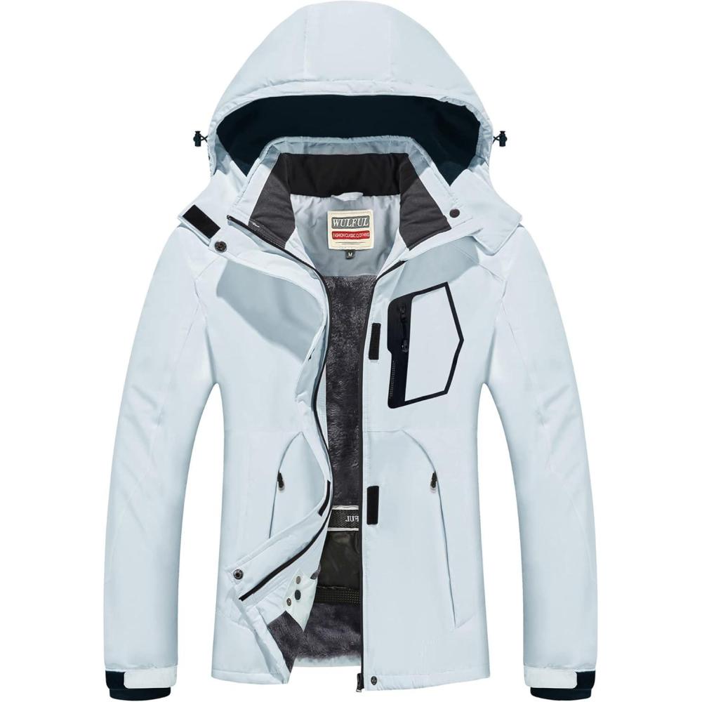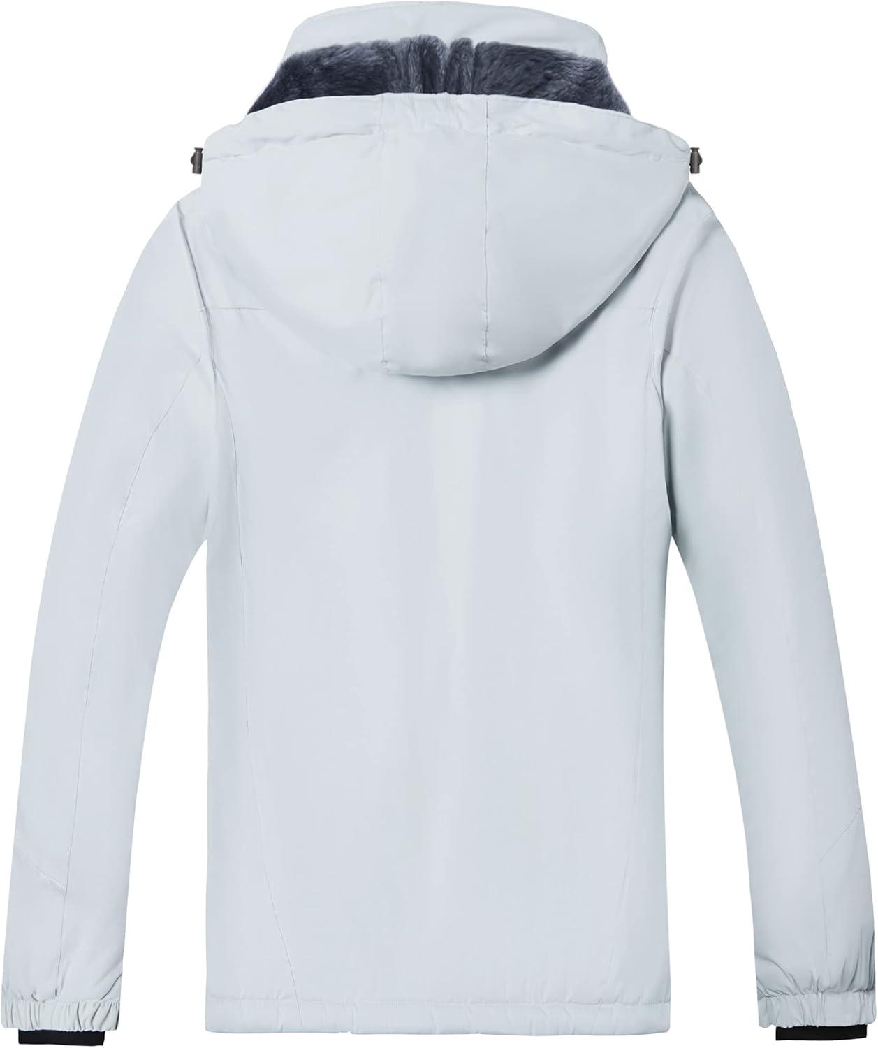 WULFUL Women’s Waterproof Ski Jacket Warm Winter Coats Windproof Winter Jackets for Women Fleece Lined Windbreaker with Hood(Light Grey)