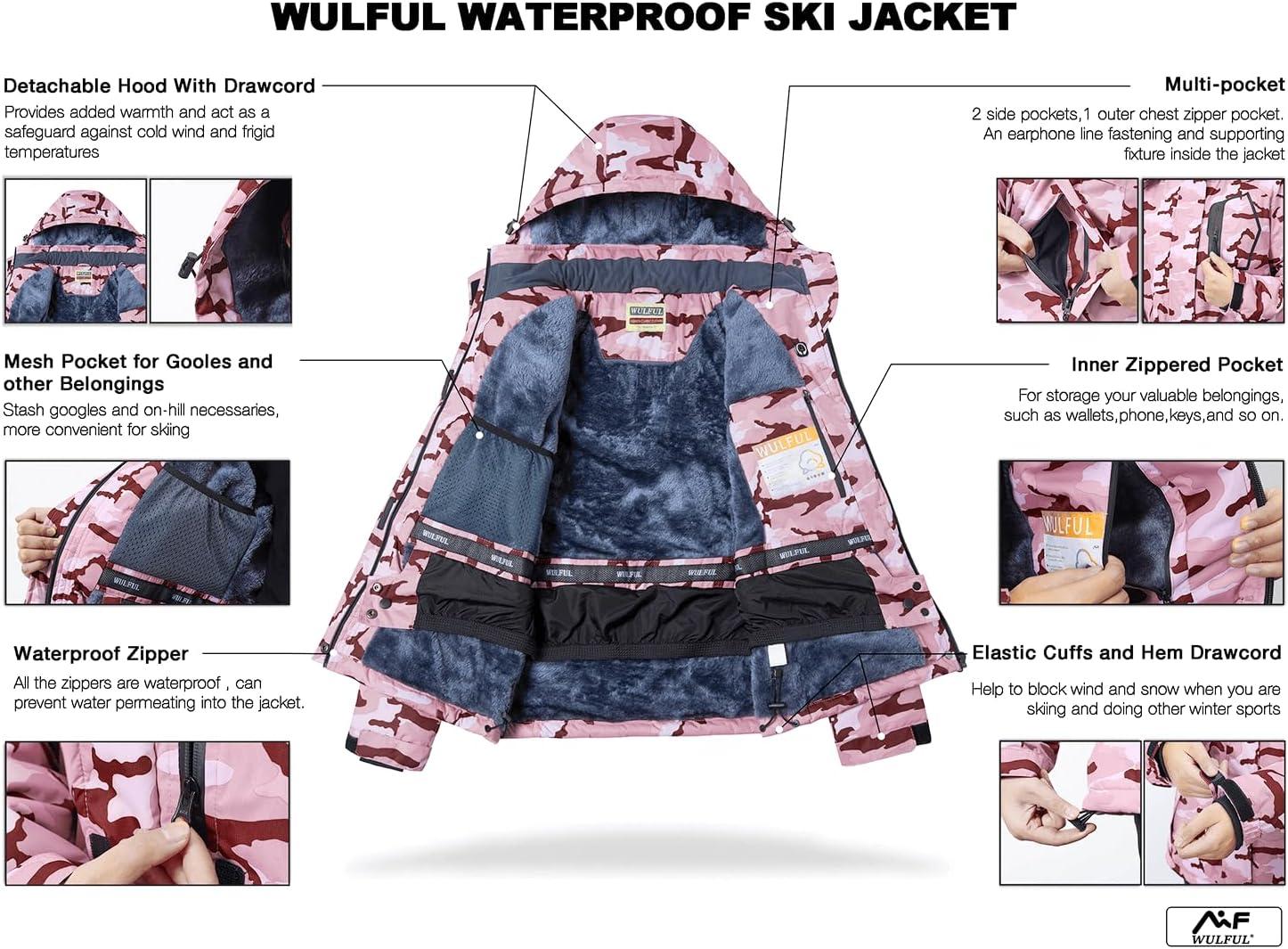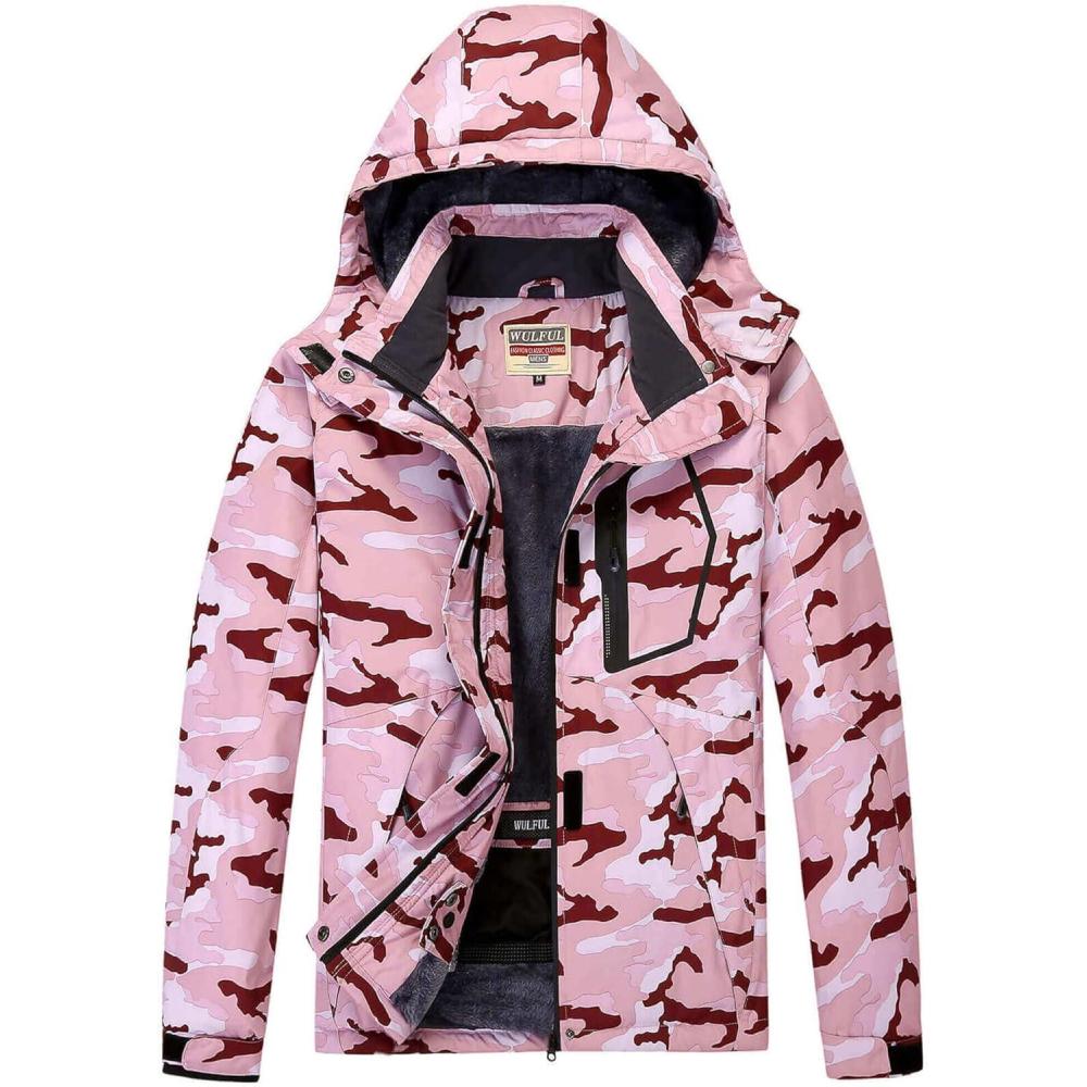 WULFUL Women’s Waterproof Ski Jacket Warm Winter Coats Windproof Winter Jackets for Women Fleece Lined Windbreaker with Hood(Pink Camo)