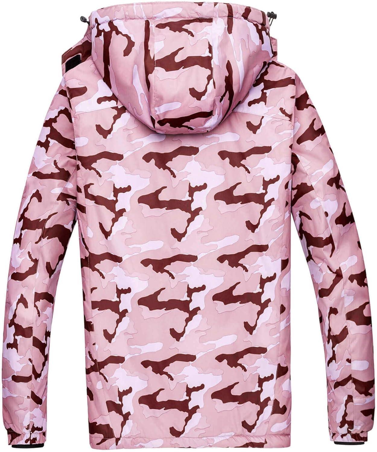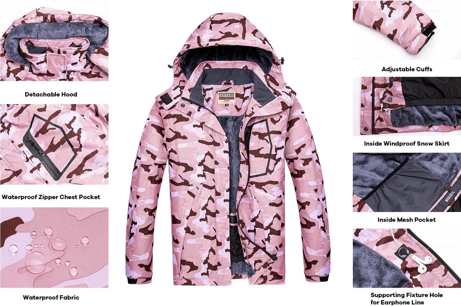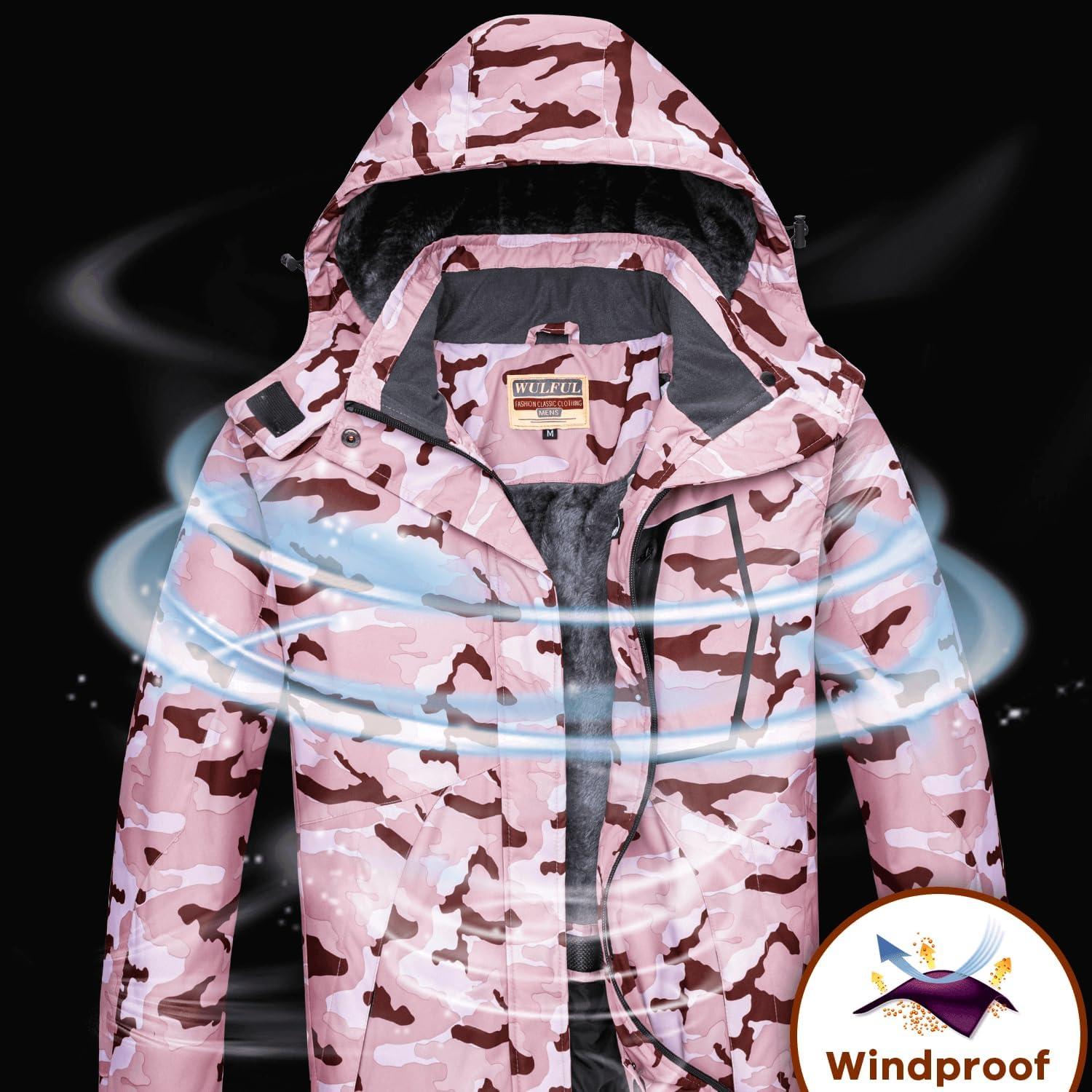 WULFUL Women's Waterproof Ski Jacket Warm Winter Coats Windproof Winter Jackets for Women Fleece Lined Windbreaker with Hood(Pink Camo)