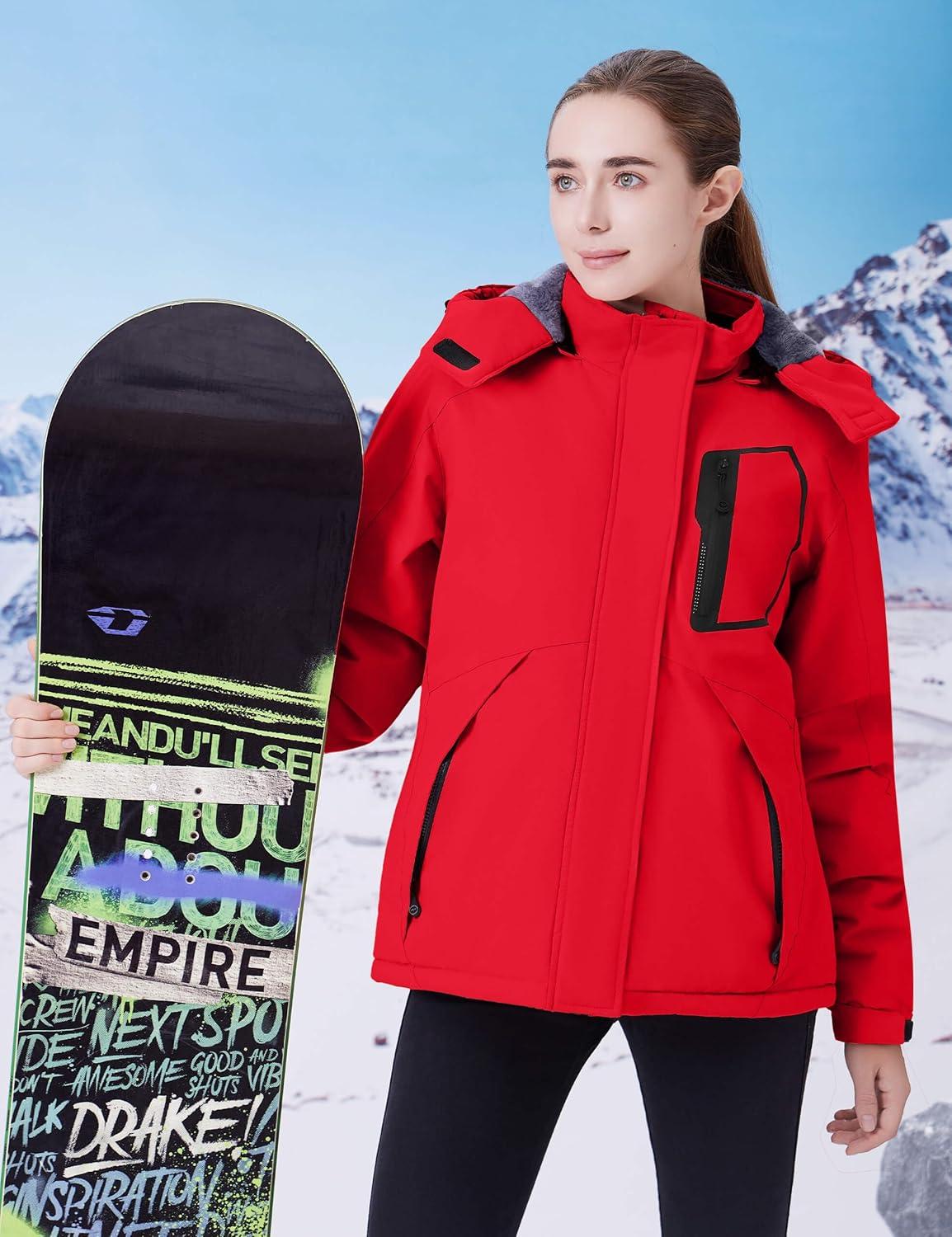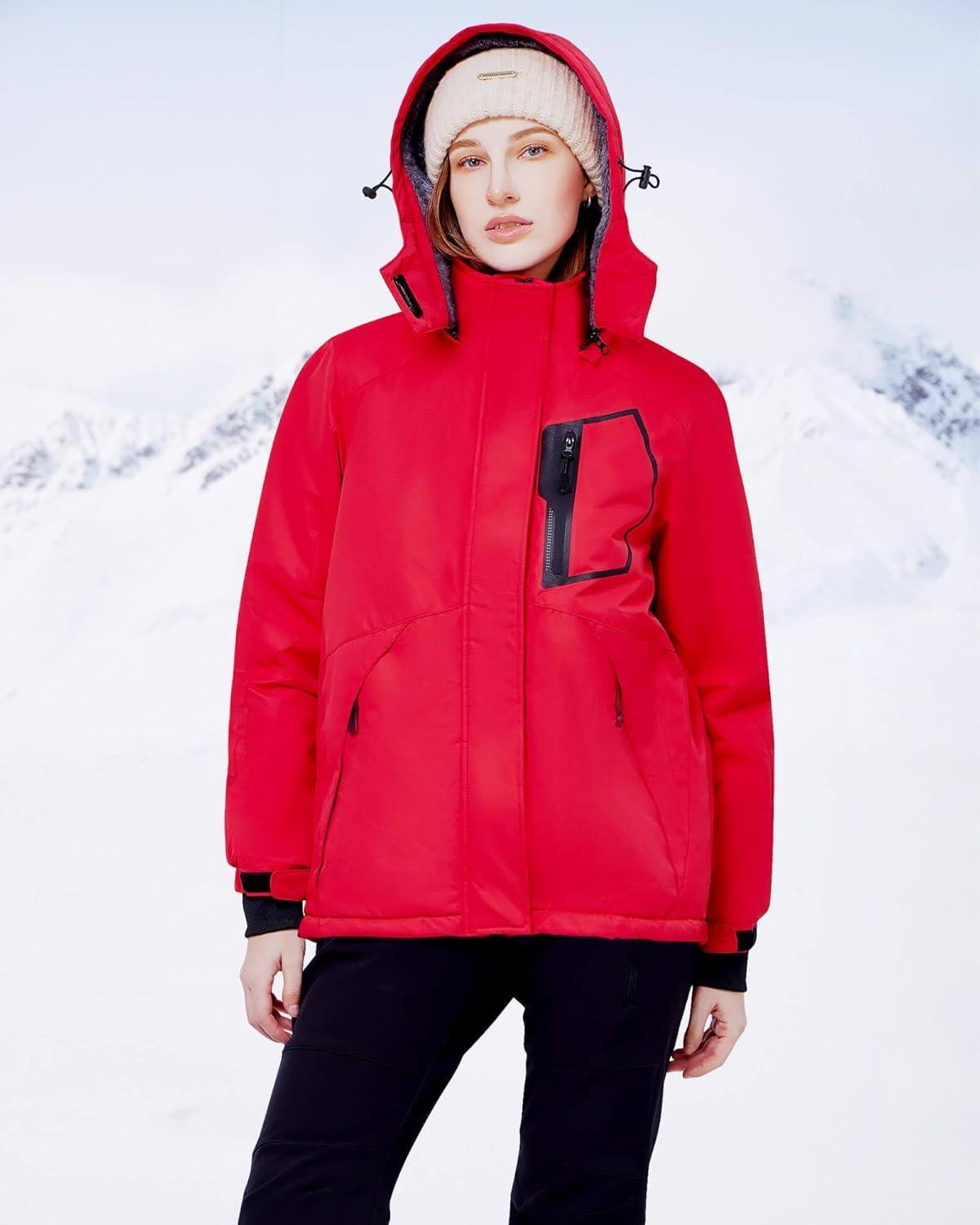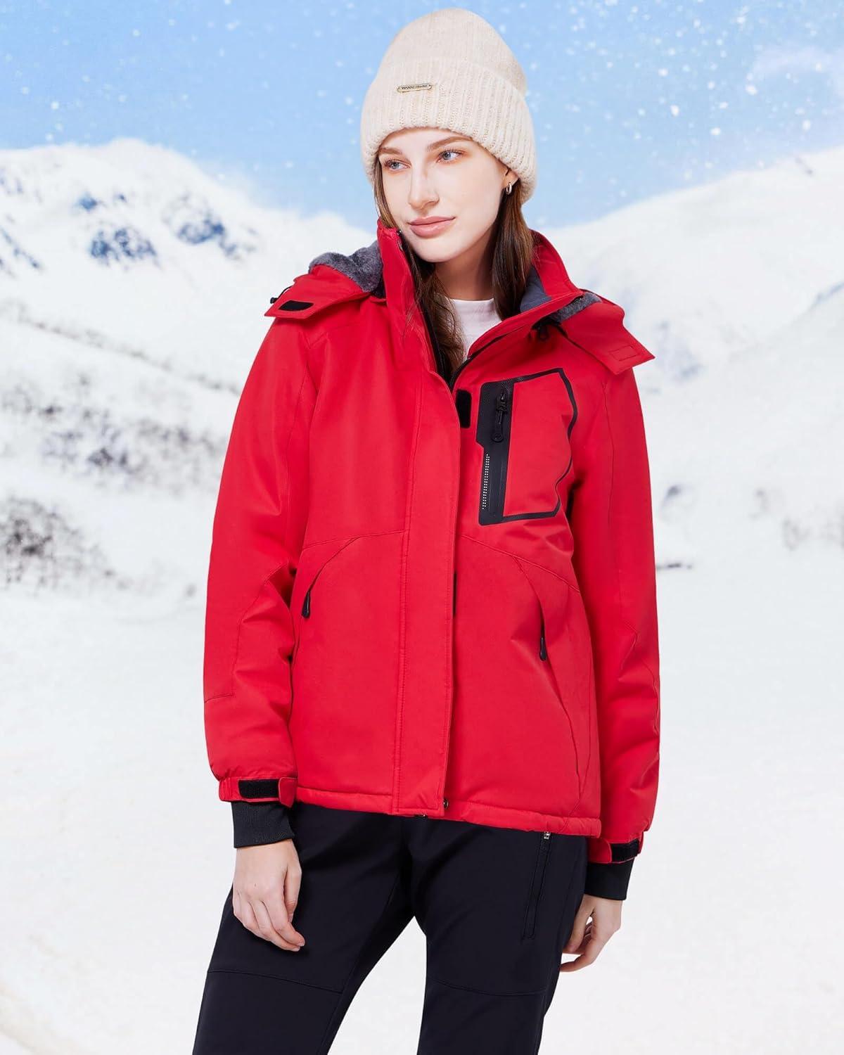 WULFUL Women’s Waterproof Ski Jacket Warm Winter Coats Windproof Winter Jackets for Women Fleece Lined Windbreaker with Hood(Red)