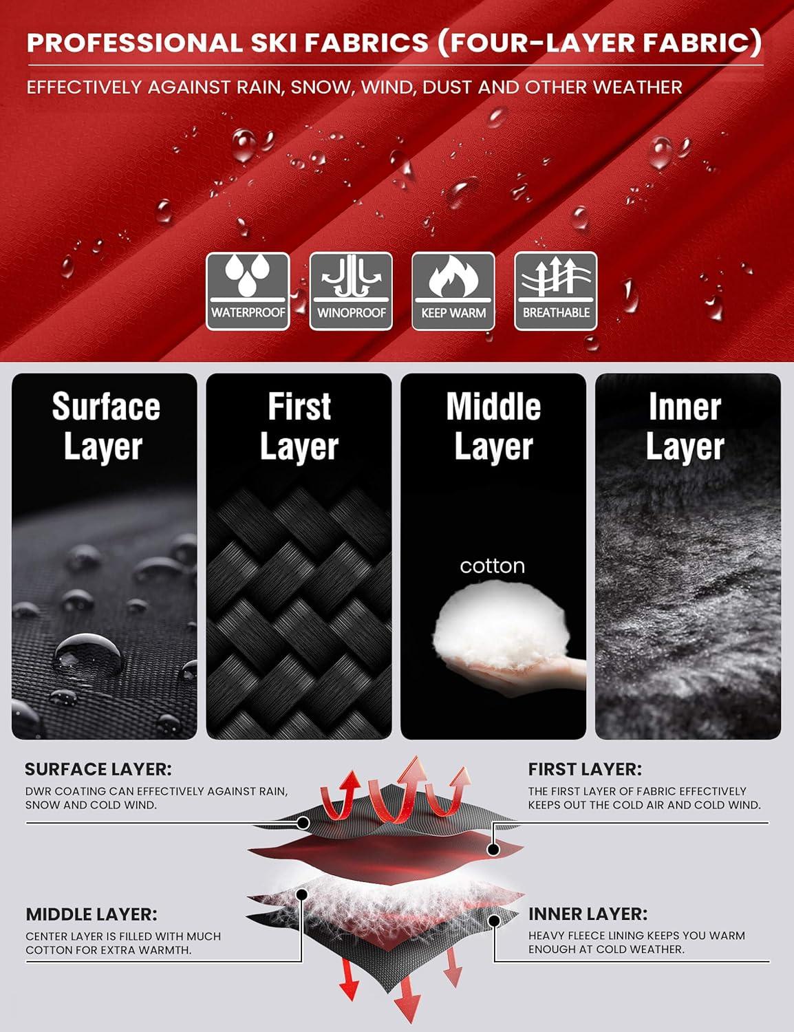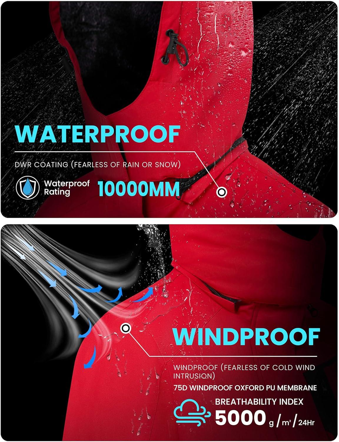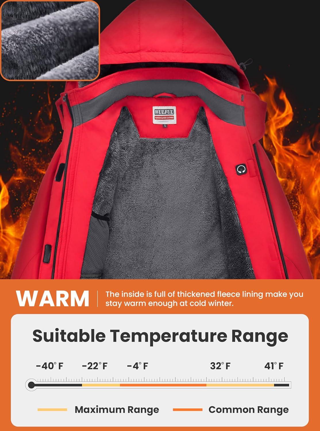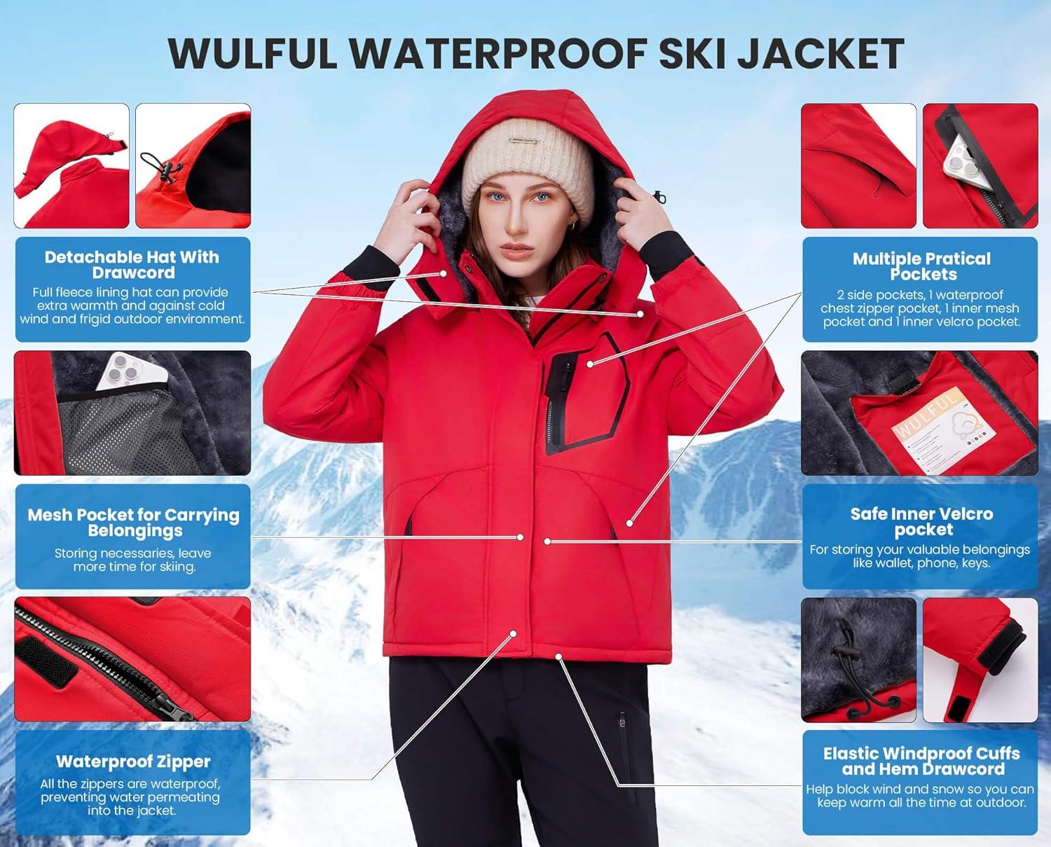 WULFUL Women’s Waterproof Ski Jacket Warm Winter Coats Windproof Winter Jackets for Women Fleece Lined Windbreaker with Hood(Red)