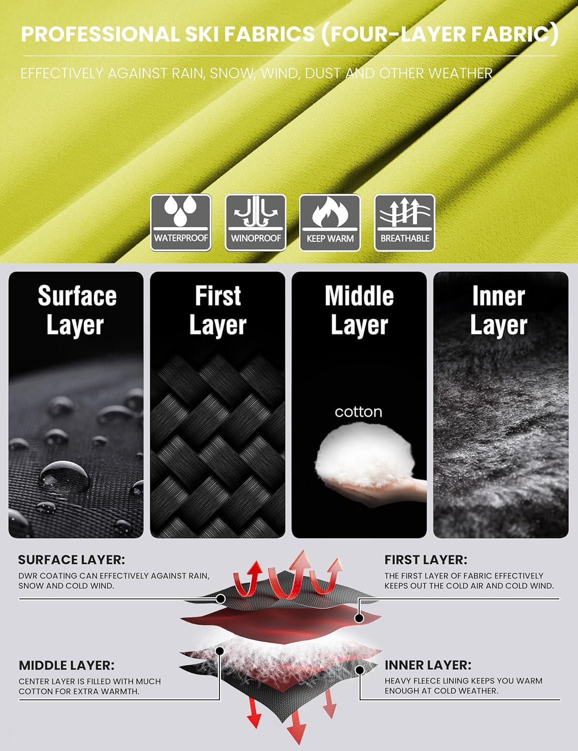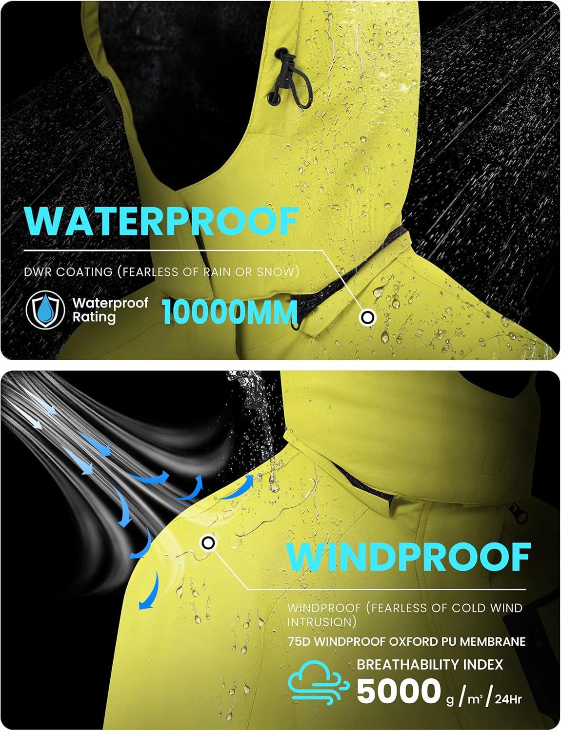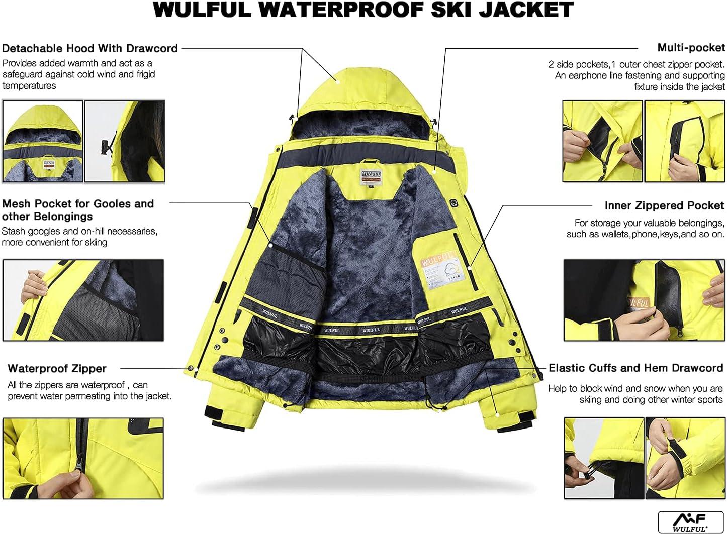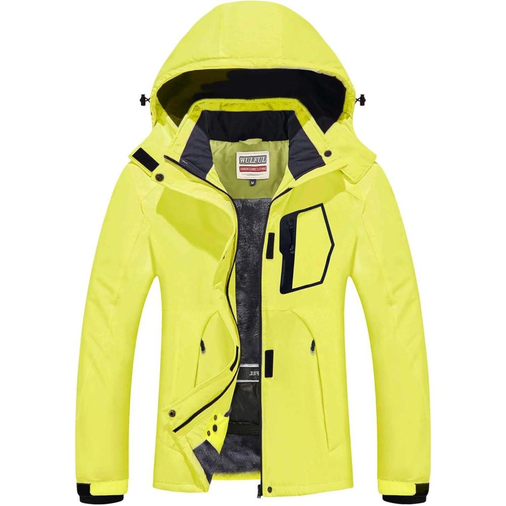 WULFUL Women’s Waterproof Ski Jacket Warm Winter Coats Windproof Winter Jackets for Women Fleece Lined Windbreaker with Hood(Yellow)