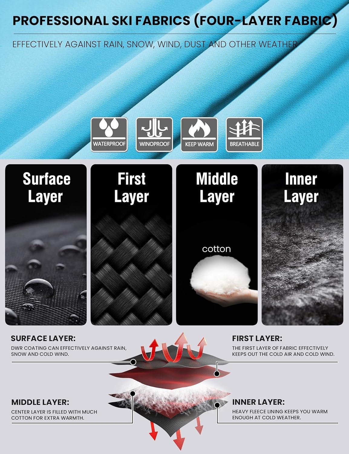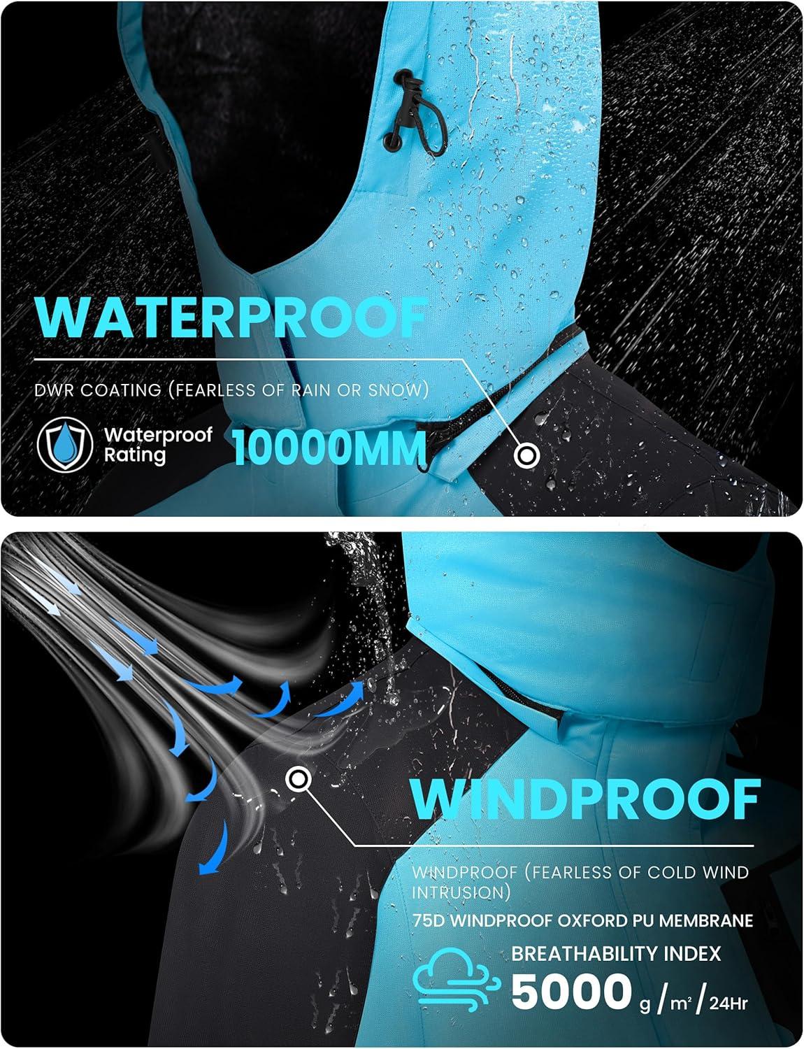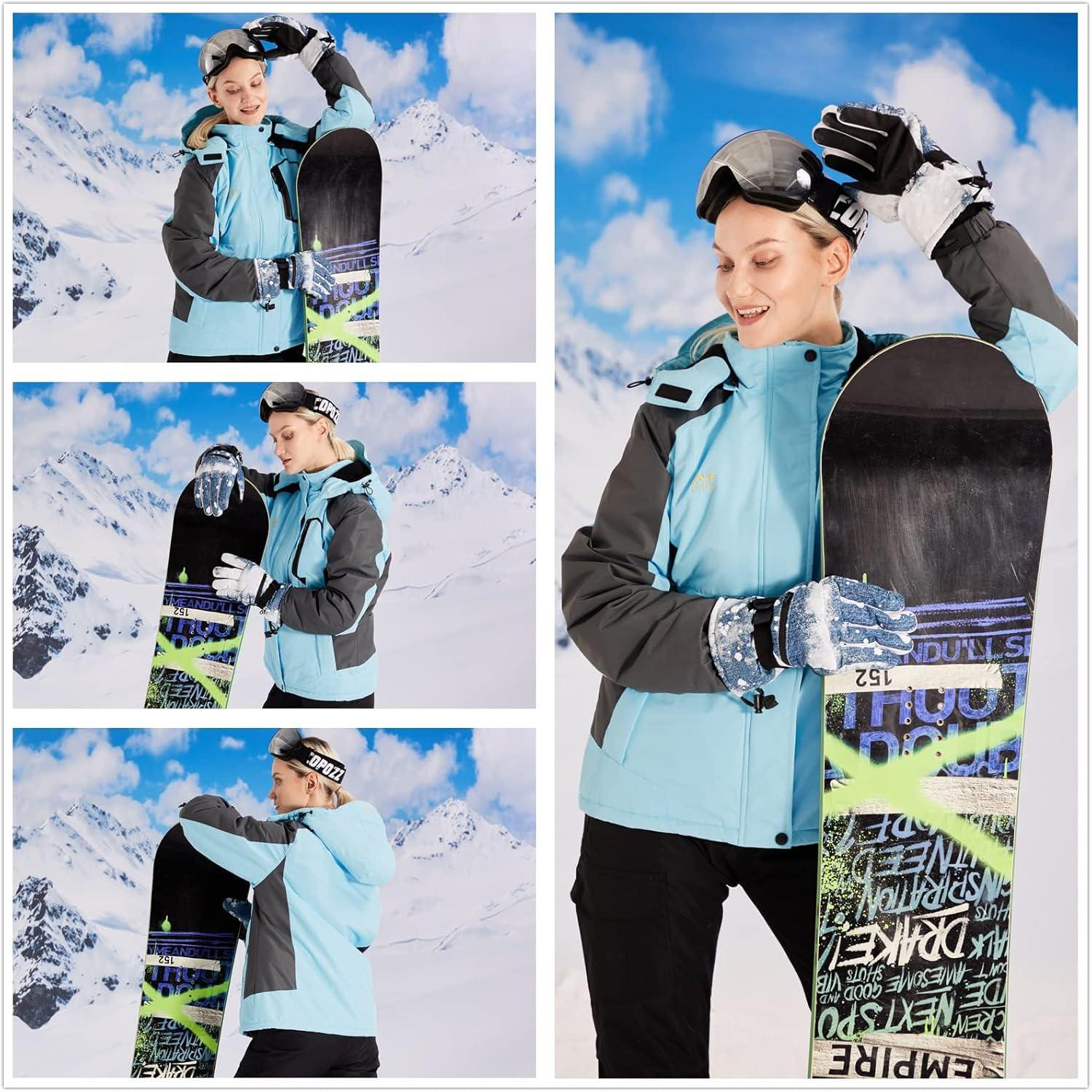 WULFUL Women’s Waterproof Snow Ski Jacket Mountain Windproof Winter Coat with Detachable Hood(Blue&black)