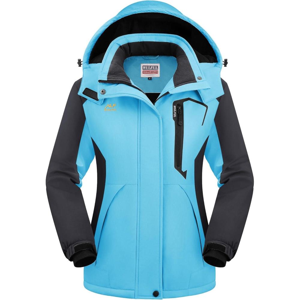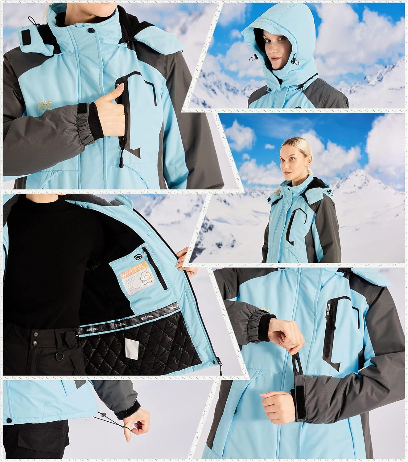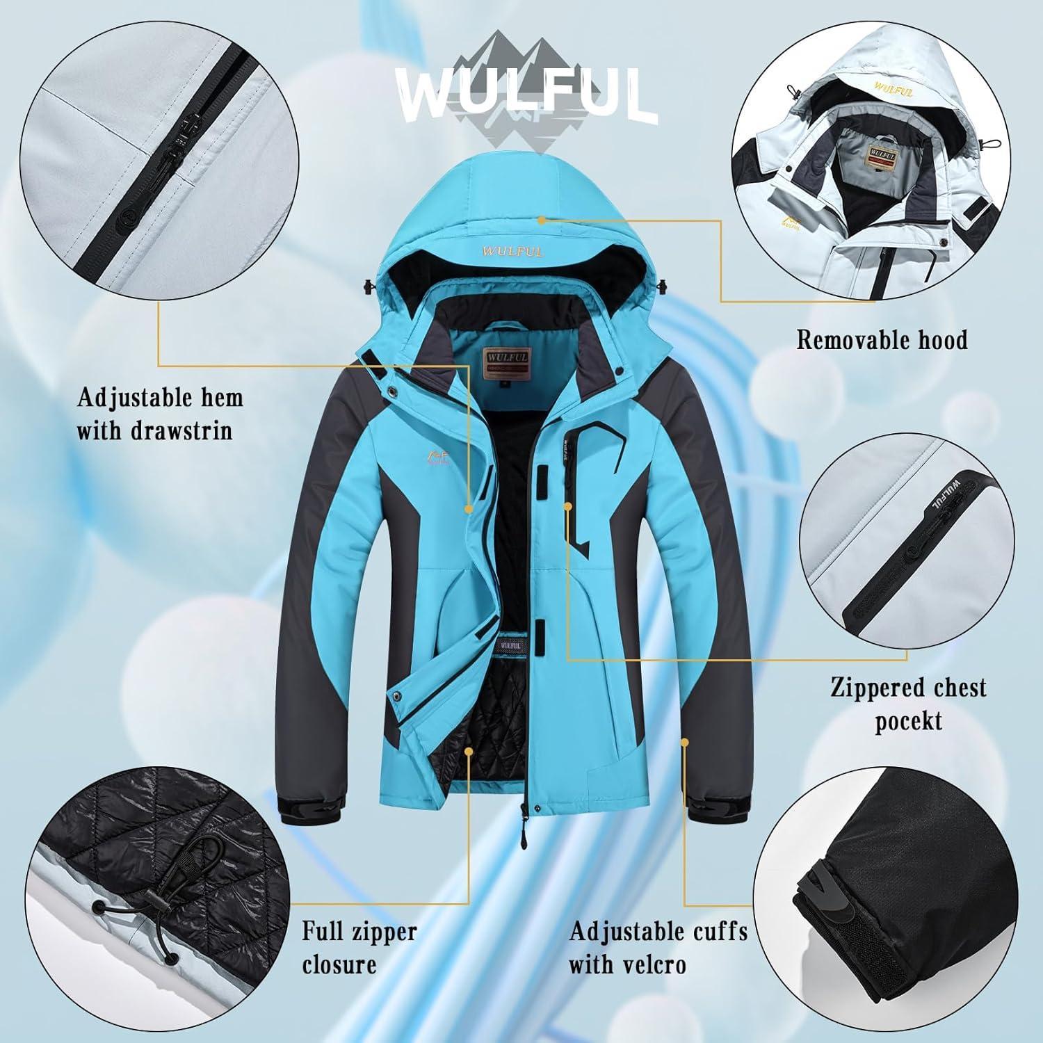 imageWULFUL Womens Waterproof Snow Ski Jacket Mountain Windproof Winter Coat with Detachable HoodBlueblack