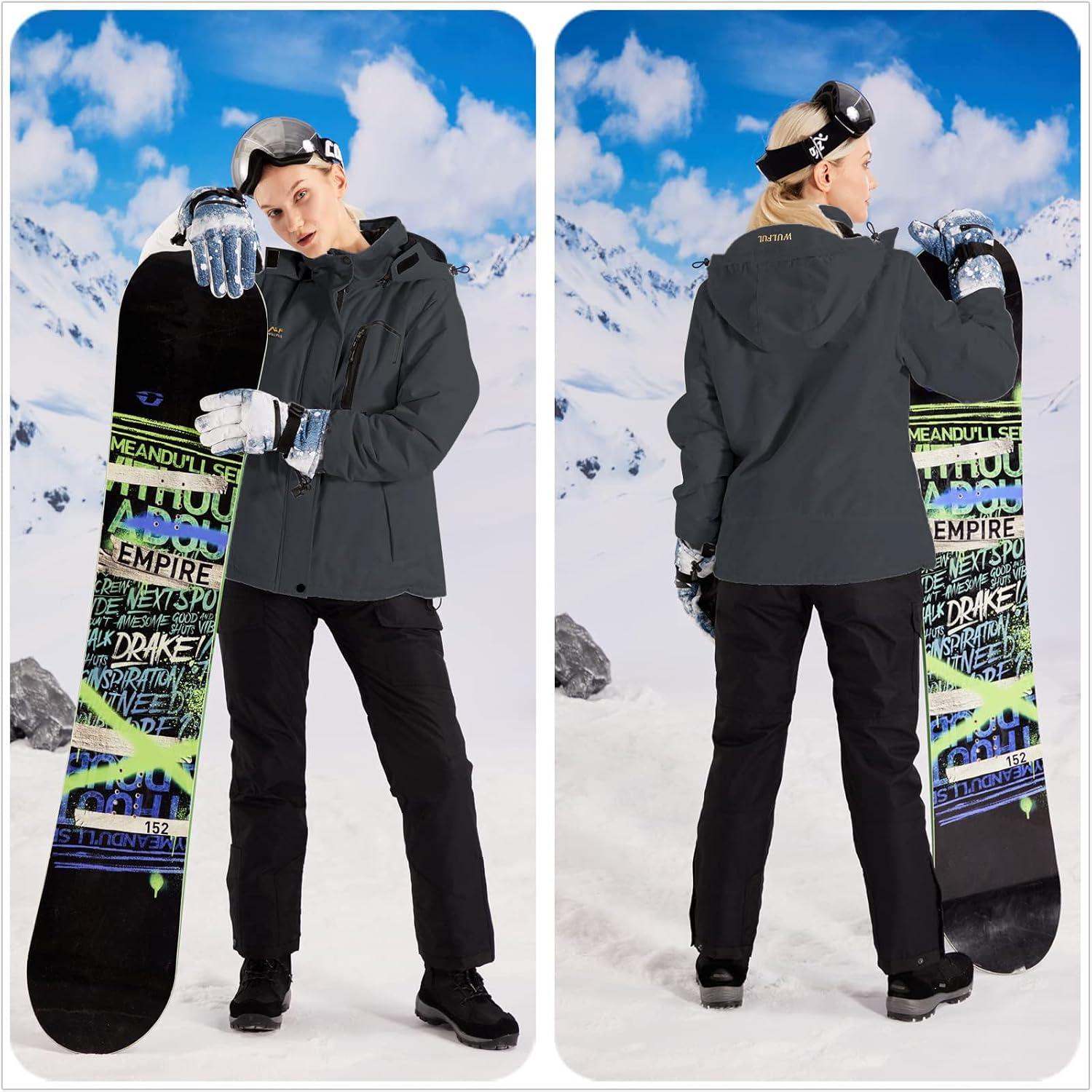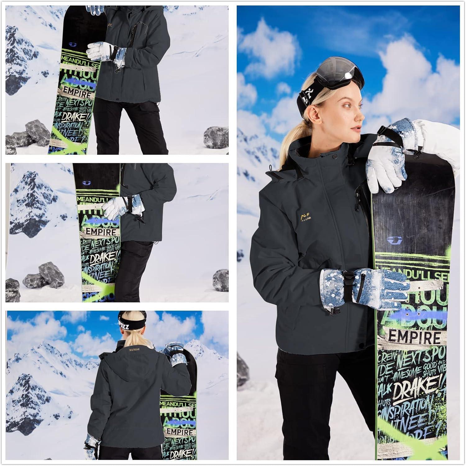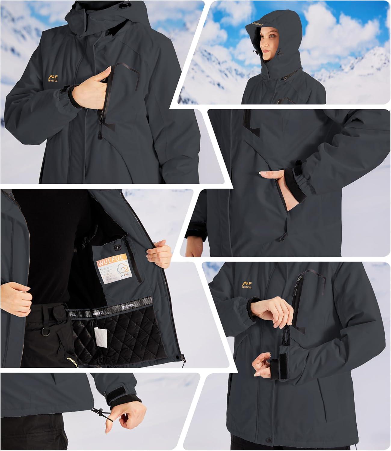 WULFUL Women’s Waterproof Snow Ski Jacket Mountain Windproof Winter Coat with Detachable Hood(Dark Grey)